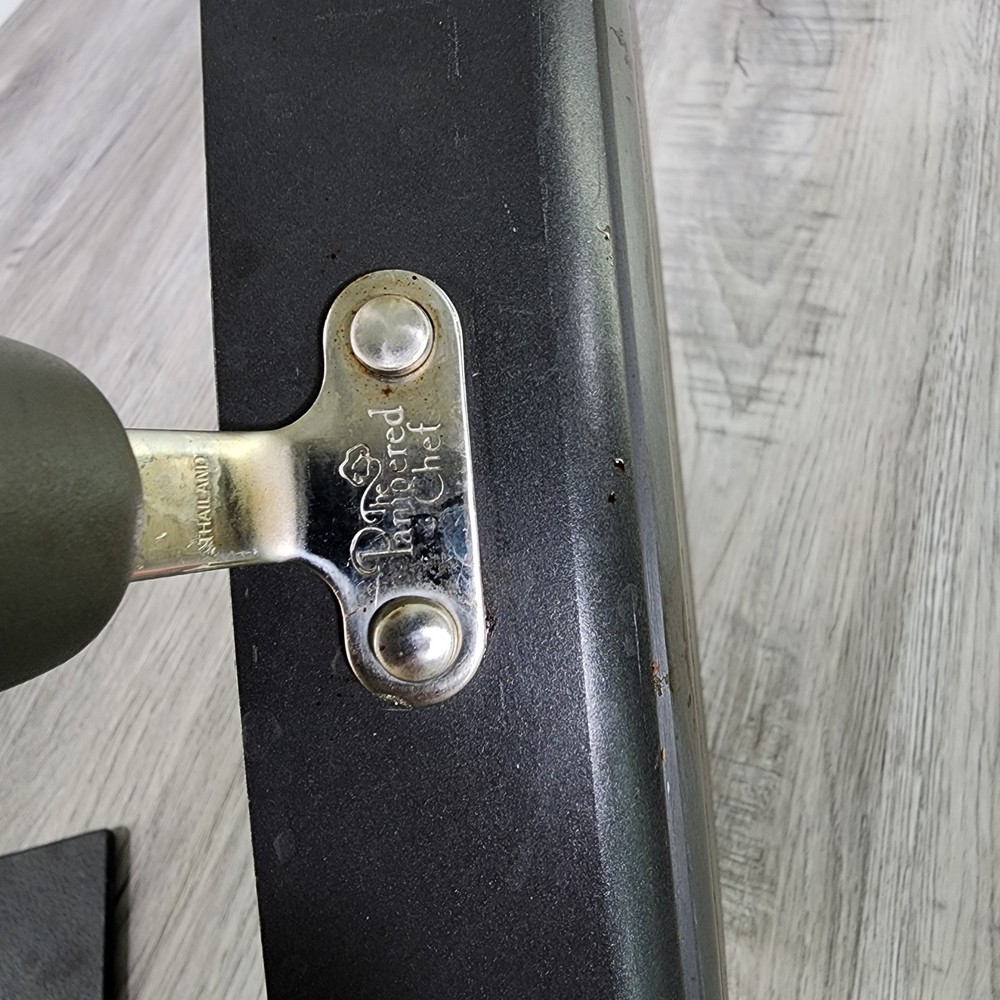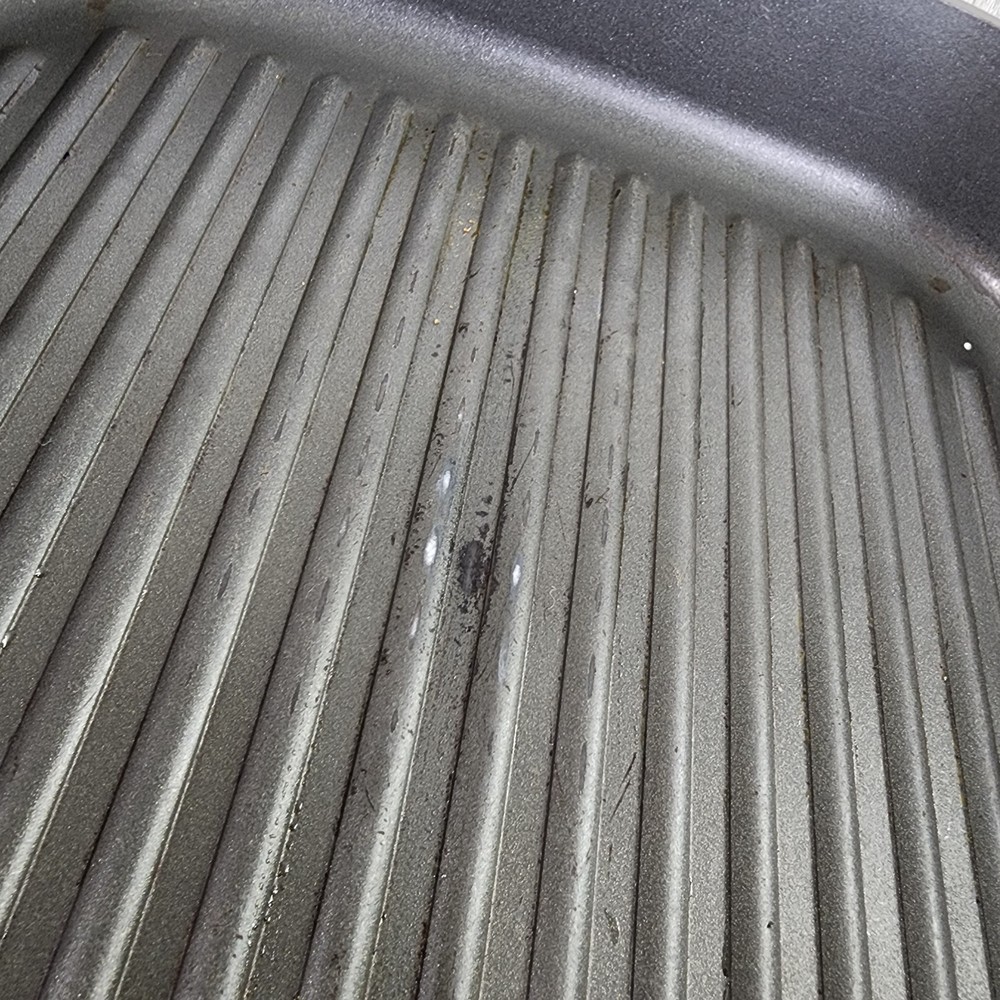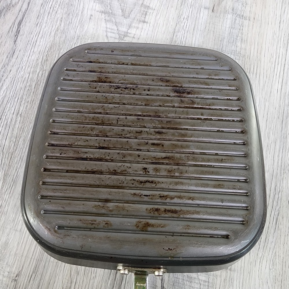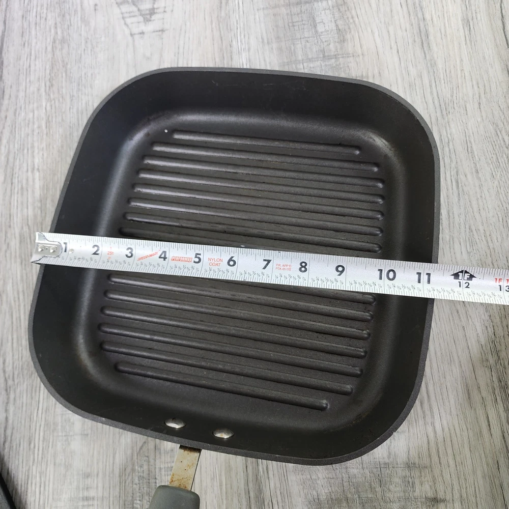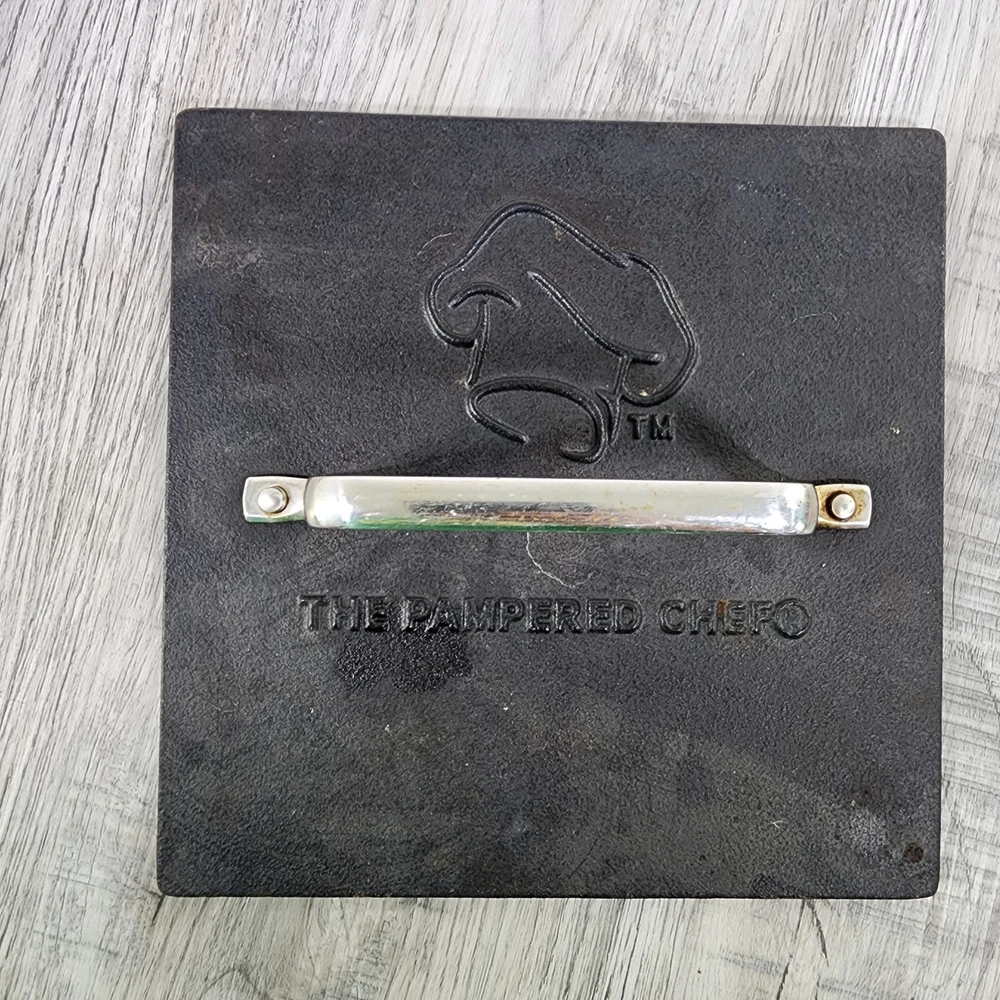 Retired Pampered Chef 11" Non-Stick Square Grill Pan & Press Griddle Panini. In used condition please see pictures for details.