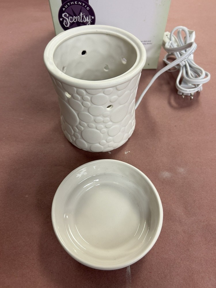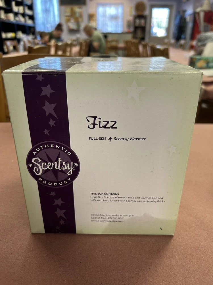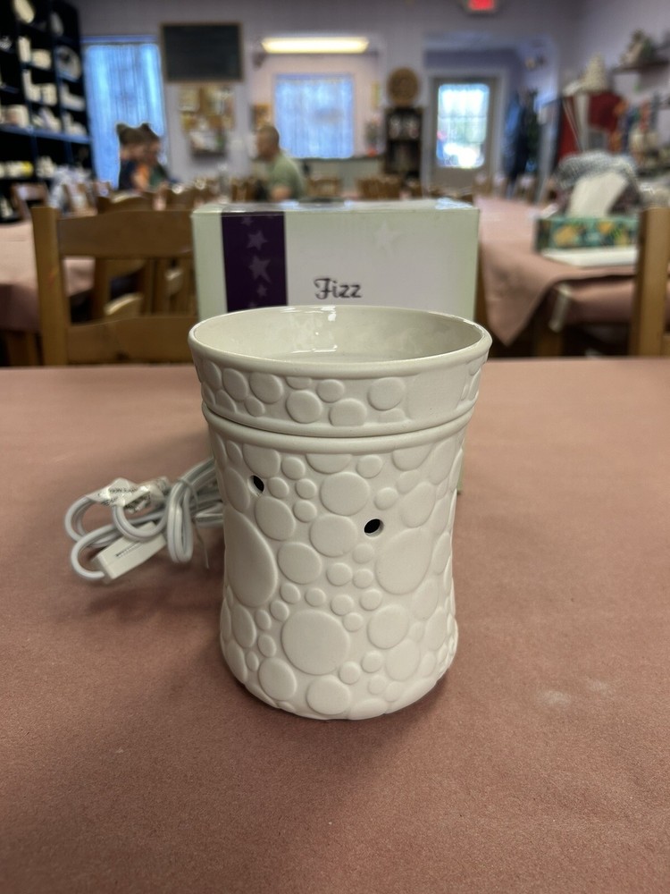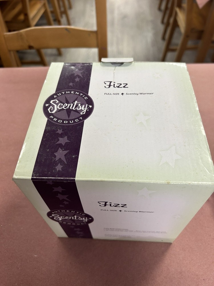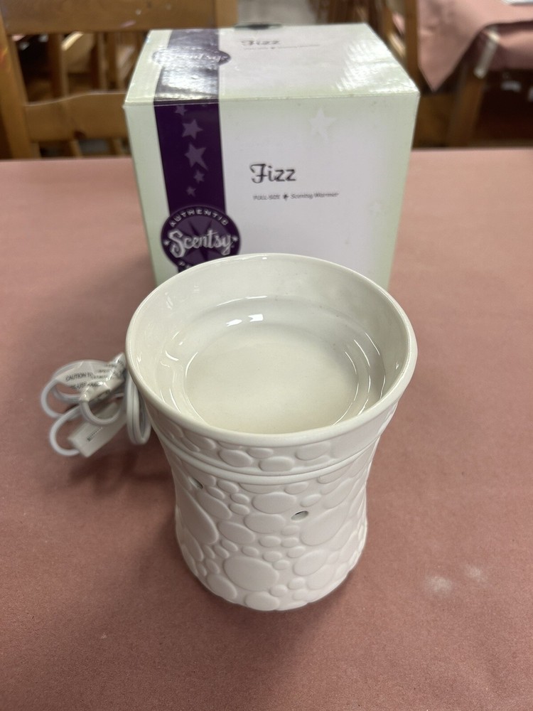 Introducing the Scentsy Full Size Fizz Warmer, the perfect addition to your home decor. This elegant piece is designed to hold your favorite candle scents and create a warm and inviting atmosphere. Crafted with exquisite attention to detail, the Fizz Warmer is the ideal accessory for any candle lover. Its unique design adds a touch of sophistication to any room and is perfect for creating a relaxing ambiance. Whether you're using it to unwind after a long day or simply enjoying the scent of your favorite candle, the Scentsy Full Size Fizz Warmer is a must-have for any home.. This is a new warmer in the box, the box isn’t in perfect condition but the item is new..