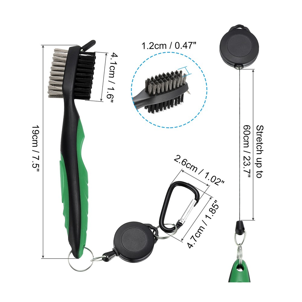 Document The retractable golf club brush is a popular accessory for golf bags, serving as a convenient tool to effectively remove dirt, grass, and debris from the club's grooves. It is an essential cleaning tool that all golf players require in order to fully enjoy their game.SpecificationColor: YellowMaterial: Metal, Nylon, PlasticOverall Length: 19 cm / 7.5 inchRetractable Zip-line: 84cm / 27.5 ftBristle Size: 4.1x1.2cm / 1.6x0.47 inch(LxH)Clip Size: 4.7x2.6cm / 1.85x1.02 inch(LxW)Package Content: 1 x Golf Club BrushAdvantageDouble sided head design, the brass wire bristles used for cleaning metals surface while the nylon bristles used for cleaning woods surface.Compact in size, with a clip for easy attachment to your golf bag, the brush allows you to have it readily available whenever you need to clean the grooves on your golf clubs.The brush can be used not only for cleaning the grooves of golf clubs but also for other golf accessories like golf shoes, golf bags, and more.The cleaning tip effectively cleans the grooves and comes with a protective cover to prevent scratching.InstructionHang it on your golf bag, the built-in retractable cord allows you to use the brush without having to take it off.NotePlease clean the golf club cleaning brush promptly after use. Golf Club Brush with 2.75 Ft Retractable Cord, Golf Club Cleaner Green The retractable golf club brush is a popular accessory for golf bags, serving as a convenient tool to effectively remove dirt, grass, and debris from the club's grooves. It is an essential cleaning tool that all golf players require in order to fully enjoy their game. Specification Color: Yellow Material: Metal, Nylon, Plastic Overall Length: 19 cm / 7.5 inch Retractable Zip-line: 84cm / 27.5 ft Bristle Size: 4.1x1.2cm / 1.6x0.47 inch(LxH) Clip Size: 4.7x2.6cm / 1.85x1.02 inch(LxW) Package Content: 1 x Golf Club Brush Advantage Double sided head design, the brass wire bristles used for cleaning metals surface while the nylon bristles used for cleaning woods surface. Compact in size, with a clip for easy attachment to your golf bag, the brush allows you to have it readily available whenever you need to clean the grooves on your golf clubs. The brush can be used not only for cleaning the grooves of golf clubs but also for other golf accessories like golf shoes, golf bags, and more. The cleaning tip effectively cleans the grooves and comes with a protective cover to prevent scratching. Instruction Hang it on your golf bag, the built-in retractable cord allows you to use the brush without having to take it off. Note Please clean the golf club cleaning brush promptly after use. Hot Item Payment 1.We accept eBay payment . 2.Payment must be received within 7 business days of auction closing. Shipping 1.We ship to your eBay or Paypal address. Please make sure your eBay and Paypal address is correct before you pay. 2.Items will be shipped within 1-3 business day when we received payment. 3.Delivery time depends on destination and other factors. Description Policy Golf Club Brush with 2.75 Ft Retractable Cord, Golf Club Cleaner Green The retractable golf club brush is a popular accessory for golf bags, serving as a convenient tool to effectively remove dirt, grass, and debris from the club's grooves. It is an essential cleaning tool that all golf players require in order to fully enjoy their game. Specification Color: Yellow Material: Metal, Nylon, Plastic Overall Length: 19 cm / 7.5 inch Retractable Zip-line: 84cm / 27.5 ft Bristle Size: 4.1x1.2cm / 1.6x0.47 inch(LxH) Clip Size: 4.7x2.6cm / 1.85x1.02 inch(LxW) Package Content: 1 x Golf Club Brush Advantage Double sided head design, the brass wire bristles used for cleaning metals surface while the nylon bristles used for cleaning woods surface. Compact in size, with a clip for easy attachment to your golf bag, the brush allows you to have it readily available whenever you need to clean the grooves on your golf clubs. The brush can be used not only for cleaning the grooves of golf clubs but also for other golf accessories like golf shoes, golf bags, and more. The cleaning tip effectively cleans the grooves and comes with a protective cover to prevent scratching. Instruction Hang it on your golf bag, the built-in retractable cord allows you to use the brush without having to take it off. Note Please clean the golf club cleaning brush promptly after use. Hot Item Payment 1.We accept eBay payment . 2.Payment must be received within 7 business days of auction closing. Shipping 1.We ship to your eBay or Paypal address. Please make sure your eBay and Paypal address is correct before you pay. 2.Items will be shipped within 1-3 business day when we received payment. 3.Delivery time depends on destination and other factors.