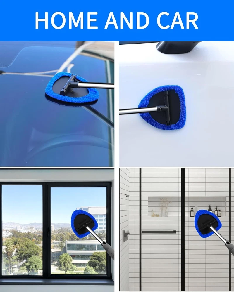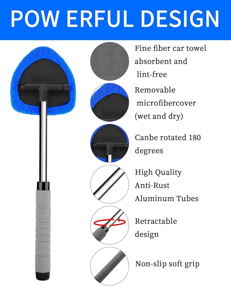 Superior Cleaning Efficiency:Our Car Windshield and Window Cleaning Tool is engineered for peak performance, making car window cleaning effortless and efficient. Whether you're a car owner, detailer, or someone with a keen eye for detail, this tool is a game-changer. Its microfiber cloth cover is detachable, allowing for easy washing and reuse. Paired with the included microfiber towel, it ensures streak-free results every time. Ideal for removing morning glare and condensation. USER-FRIENDLY DESIGN: Designed with user convenience in mind, this tool totals 19 in. with a non-slip handle, making it ideal for users of all heights, including shorter users. The ergonomic grip ensures comfort during use and reduces hand fatigue. The tool's compact design allows it to be conveniently stored in the car so you can use it anywhere. It is an essential tool for regular car maintenance and window cleaning, providing professional-grade cleaning results without the hassle. Versatile Application: Our cleaning tool isn't just for cars; it excels at home too. Use it on windows, glass tables, bathroom mirrors, and more. The microfiber cover is versatile and durable, designed to handle various cleaning tasks around the house without shedding or fading. Whether used wet or dry, it delivers spotless, swirl-free results. Its dual-purpose nature makes it a valuable addition to any cleaning arsenal, saving you time and effort in maintaining a pristine environment. Ideal for Gifting: This cleaning tool makes an excellent gift for car enthusiasts and meticulous cleaners. Its practical design and high-quality construction ensure it will be appreciated by anyone who receives it. Perfect for special occasions or as a thoughtful gesture, it's a gift that combines functionality with style. The extendable handle and effective cleaning power make it a standout present that friends and family will love using. Please feel free to contact us if you have any questions Complete Cleaning Kit: Included in the package is a premium microfiber towel, enhancing the cleaning experience. This complementary towel is perfect for wiping down surfaces and polishing to a brilliant shine. Use the tool with your favorite window cleaner for optimal results. It’s designed for dual use—both wet and dry—so you can tackle any cleaning job with ease. From car windows to home mirrors, our tool ensures a thorough clean without leaving behind streaks or residue. Product Description