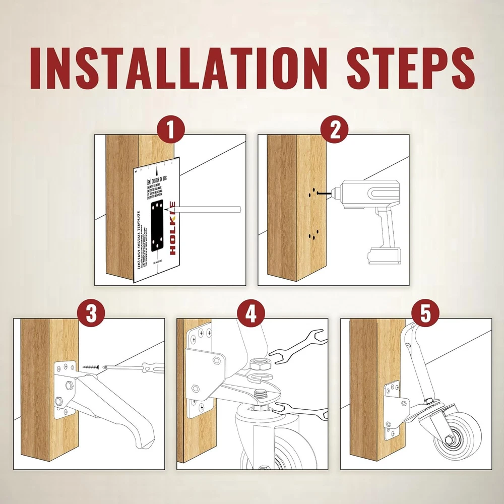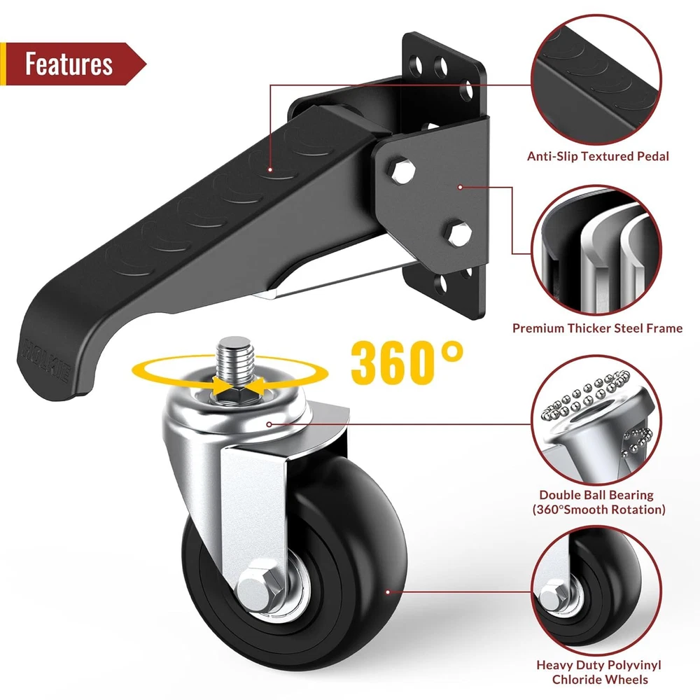 Retractable Casters Heavy Duty Casters with Lifting and Lowering Function EASY TO OPERATE: The retractable caster is different from ordinary casters in that it is side-mounted. It is very easy to use, just put your foot on the pedal and step down to lift it while operating, then if you lower the workbench, you just need to lift the pedal. The item comes with instructions and installation template. IMPROVED MATERIALS: Workbench casters are constructed of durable solid steel and high quality PVC casters. Brackets have thicker steel and stronger screws. Maximum load capacity is 700LBS (4 casters) MOBILITY and STABILITY: Retractable casters provide both mobility and stability. They can easily move workbench or equipment when needed, and then lower it to lock it firmly for stability, making it a versatile castor for a variety of applications. VERSATILE APPLICATIONS: These casters are used in a wide range of applications, including furniture, workbenches and other equipment, where the ability to switch between mobility and stability is essential. Shipping We offer FREE shipping on all orders! We ship within Three business days of payment, usually sooner. We use a selection of shipping services such as UPS, FedEx, USPS etc. We only ship to the lower 48 states, no APO/FPO addresses or PO Boxes allowed. Local pickups and combined shipping options are not provided at this time. Return You can return a product for up to 30 days from the date you purchased it. Any product you return must be in the same condition you received it and in the original packaging. Please keep the receipt. Payment We accept payment by any of the following methods: PayPal Please pay as soon as possible after winning an auction, as that will allow us to post your item to you sooner! Feedback Customer satisfaction is very important to us. If you have any problem with your order, please contact us and we will do our best to make you satisfied. Contact Us If you have any queries, please contact us via ebay. We usually respond within 24 hours on weekdays. Please visit our eBay store to check out other items for sale! Thank you for shopping at our store.