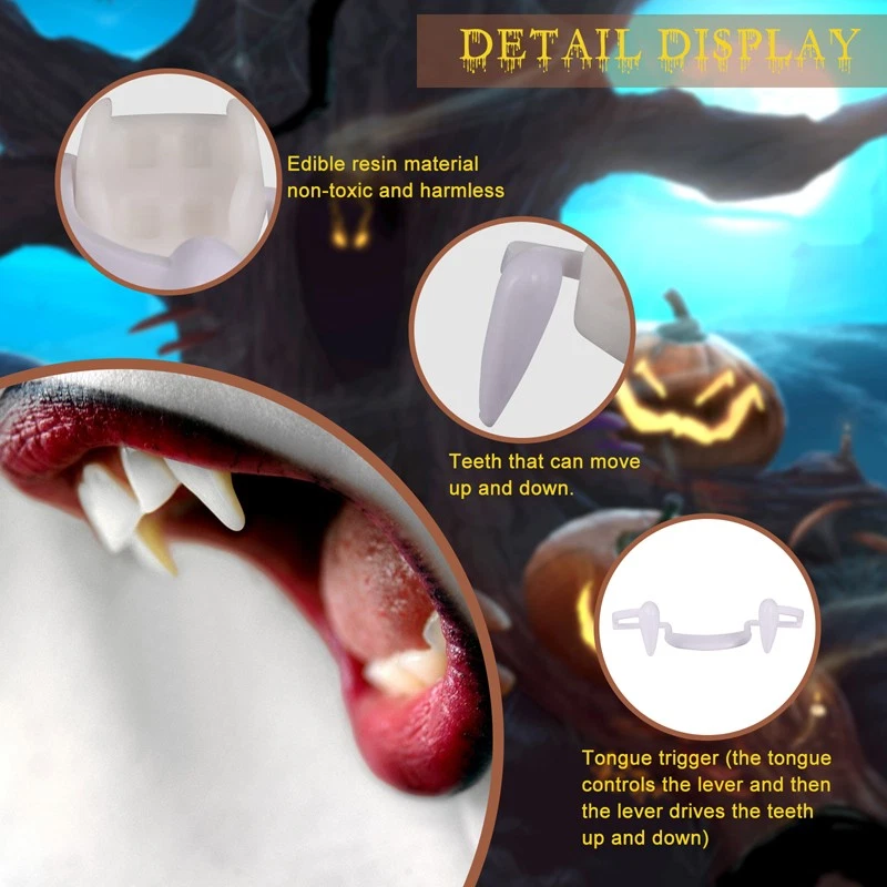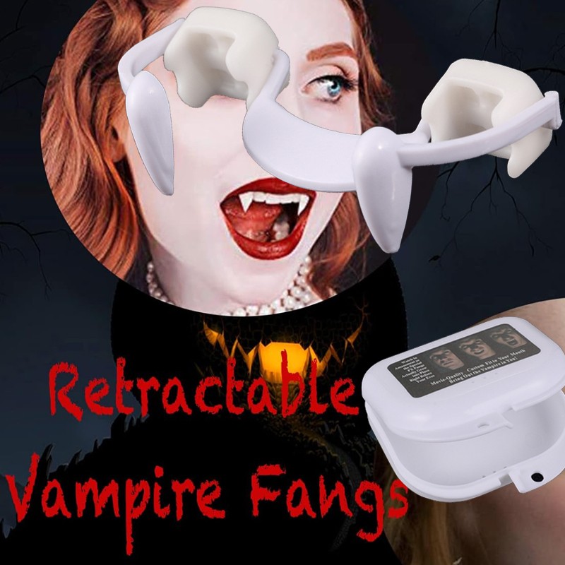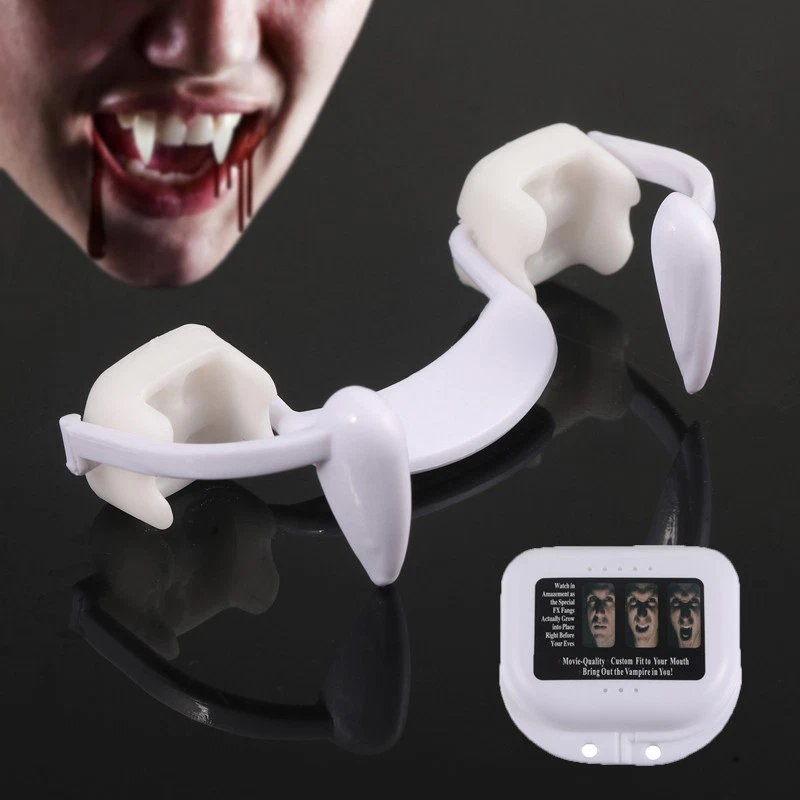 Retractable Vampire Teeth Fangs Halloween Cosplay Makeup Zombie Dentures Teeth Feature: -Realistic look:Fit your teeth very well. -Easy storage:Come with a separate box .The fake teeth can be reused. -Good quality:Made of tough polymer resin , non toxic, safe , tasteless and environmentally friendly.And the surface is smooth which is friendly to your teeth. - Use for:For Halloween vampire or werewolf role-playing parties, all kinds carnival parties, How to use: Step 1:It is recommended to rinse with warm water before use. Step 2:Take it out and install it directly on the teeth without gel. Step 3:You can create a vampire look when you show your teeth. Specification: Color: white Material: plastic and silicone Size:6*1.8cm/2.36*0.7inch Box size:7.5*7.5*2.5cm/3*3*2.5inch Package including: 1*Fake Vampire Teeth 1*Storage box Payment Delivery details Terms of sales About us Contact us Payment Payments: Paypal, Google Pay, Visa, Master Card, Amerian Express, Discover. Delivery details All items are shipped from US warehouse. 😉😉 😉 We have 2 wharehouse in US, one is in NJ and the other is in CA. 😉😉 😉 We will ship from the warehouse closest to the buyer's delivery address. Don't hesitate make orders ! We ship to your eBay or Paypal address. Please make sure your eBay or Paypal address is correct before you pay. Terms of sales Free return About us Pls contact our customer service firstly if have any problems , we will help to solve the issue, and could offer free return service for full refund or free replacement after confirming. You can buy from us with confidence Contact us If have any problems, please feel free to contact us.