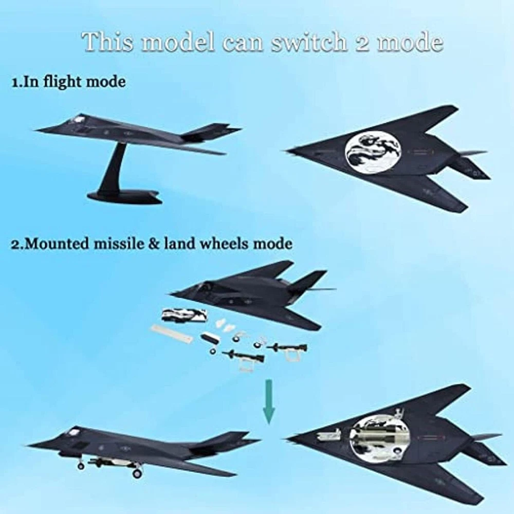 You may also like 24cm Plastic 1:1500 China Shandong Ship Aircraft Carrier Assembly Ship Model 13.49 USD 3.69 USD 1/1250 HMT OLYMPIC Ocean Boat Diecast Cruise Ship Model Craft Souvenir Scene 33.99 USD White Air France Concorde Plane Model Toy Diecast Collection Scale 1:400 10.99 USD 3.69 USD 24.5cm Diecast 1/1000 WWII USS Enterprise CV-6 Aircraft Carrier Model Display 79.99 USD 3.69 USD 6pcs 1/18 Plastic Special Force Action Figures 10cm Army Men Soldier Playset 10.99 USD 11.9cm Diecast Alloy 1/200 Scale USA Air Force B-17G Fighter Model with Stand 33.99 USD 3.69 USD Product Description 1/72 Scale F117 Attack Military Aircraft Nighthawk Metal Model Diecast Plane Aircraft Airplane Model Collection Ornaments Display Toys Specifications: Product Name: High Simulation 1:72 Alloy aircraft Model Color: Black Material: Alloy+ABS Plastic Recommend Age: 12+y,18+ Model Size: 29x23.4x10cm Features: Brand new and high quality plane model. Aircraft model meet your passion for aviation collectibles with beautiful design. An accurate scale model plane for collectors and enthusiasts. Plane model can be placed in the living room, bar, company, Coffee hall as home decoration , retro and elegant, noble fashion. Package Includes: 1* 1/72 Scale F117 Attack Military Aircraft Nighthawk Metal Model 1* Display Stand Note: Color might be slightly different due to the color calibration of each individual monitor. Please allow slightly measuring deviation due to manual measurement. About Us Payment Shipping Returns Contact Us Welcome to our store! Our aim is to offer our clients items with high quality and fast delivery, also our price will be reasonable. We supply many products including video game, health & beauty, phone accessories, computers accessories, camera & camcorder,car accessories, games, toys & hobbies, jewelry, antique & craftwork. Excellent customer service and a reliable credit standing is our tenet. We accept all verified payments from ebay. Orders will be shipped after receiving cleared payment. We ship most of our orders within 24 hours, and may up to 48 hours. If you want faster shipping way. Please contact us before making payment. Sometimes due to problems with our transportation company system, your shipping information may be delayed to update. We recommend that you try again after 3-4 days. If you still haven't checked the shipping information, you can contact us by ebay message. Always believe we can figure things out with communication, if it comes to return, the pacakge must be intact and the same as you receive. If you have any questions, please feel free to email our service specialists 24 Hours a Day, 7 Days a Week. We will reply you ASAP. Return/refund is accepted within 30 days after the buyer receives the item. NO exchange will be accepted after 30 days from the date when the item is received. Please contact us first before returning your product!!! If you have any questions, our Customer Service staffs welcome you to email us. We strive to answer all questions and resolve any problems as quickly as possible. We care about our valued customers, and will always try to help you. So if you have any problems, You can contact us 7*24, we will reply at the first time. About Us Welcome to our store! Our aim is to offer our clients items with high quality and fast delivery, also our price will be reasonable. We supply many products including video game, health & beauty, phone accessories, computers accessories, camera & camcorder,car accessories, games, toys & hobbies, jewelry, antique & craftwork. Excellent customer service and a reliable credit standing is our tenet. Payment We accept all verified payments from ebay. Orders will be shipped after receiving cleared payment. Shipping We ship most of our orders within 24 hours, and may up to 48 hours. If you want faster shipping way. Please contact us before making payment. Sometimes due to problems with our transportation company system, your shipping information may be delayed to update. We recommend that you try again after 3-4 days. If you still haven't checked the shipping information, you can contact us by ebay message. Returns Always believe we can figure things out with communication, if it comes to return, the pacakge must be intact and the same as you receive. If you have any questions, please feel free to email our service specialists 24 Hours a Day, 7 Days a Week. We will reply you ASAP. Return/refund is accepted within 30 days after the buyer receives the item. NO exchange will be accepted after 30 days from the date when the item is received. Please contact us first before returning your product!!! Contact Us If you have any questions, our Customer Service staffs welcome you to email us. We strive to answer all questions and resolve any problems as quickly as possible. We care about our valued customers, and will always try to help you. So if you have any problems, You can contact us 7*24, we will reply at the first time. 1/43 Scale SUV Coast Guard Police Fire Truck Off-road Vehicle Alloy Model Toy 17.99 USD 1/300 20cm France B777 Model Plane Alloy Diecast Airplane Model Kits Collection 21.99 USD B-29 SuperFortress Bomber Paper Military Aircraft Plane Model Unassembled 1/47 21.99 USD 1/100 3D Metal Lifeboat Model Military Ship Collection Display Unassembled Kit 21.99 USD 1/400 15cm Aircraft Indonesia Citilink A320 Alloy Plane Model Simulation Display 15.99 USD 16cm Air Force One Plane Model Aircraft Aviation Collection Gift For Boeing 747 15.99 USD 1:35 WWI British Mark.I Male Tank Paper Model Souvenir DIY Unassembled Kit 15.99 USD 1:100 WWII UK Hurricane MKII Airplane Fighter Alloy Military Aircraft Model Gift 21.99 USD 1:100 Chinese Dongfeng 5B Missile Vehicle Alloy Simulation Collection Model 19.99 USD 1/400 16cm British F-BVFB Concorde Model Alloy Diecast Plane Aircraft Collection 15.69 USD 1/100 Galeon Golden Hind Sail Battleship Paper Model Sailboat Craft Unassembled 16.99 USD 1/400 British Titanic Cruise Paper Model Ship