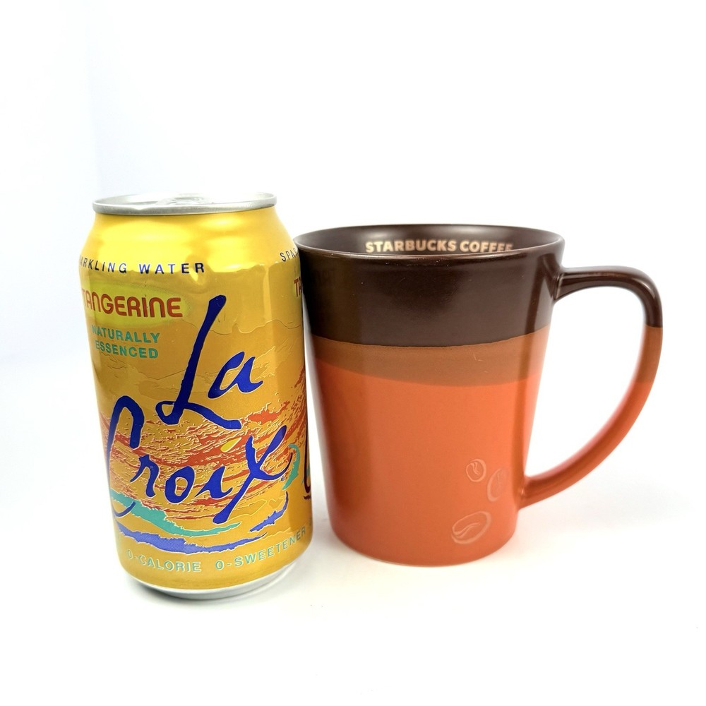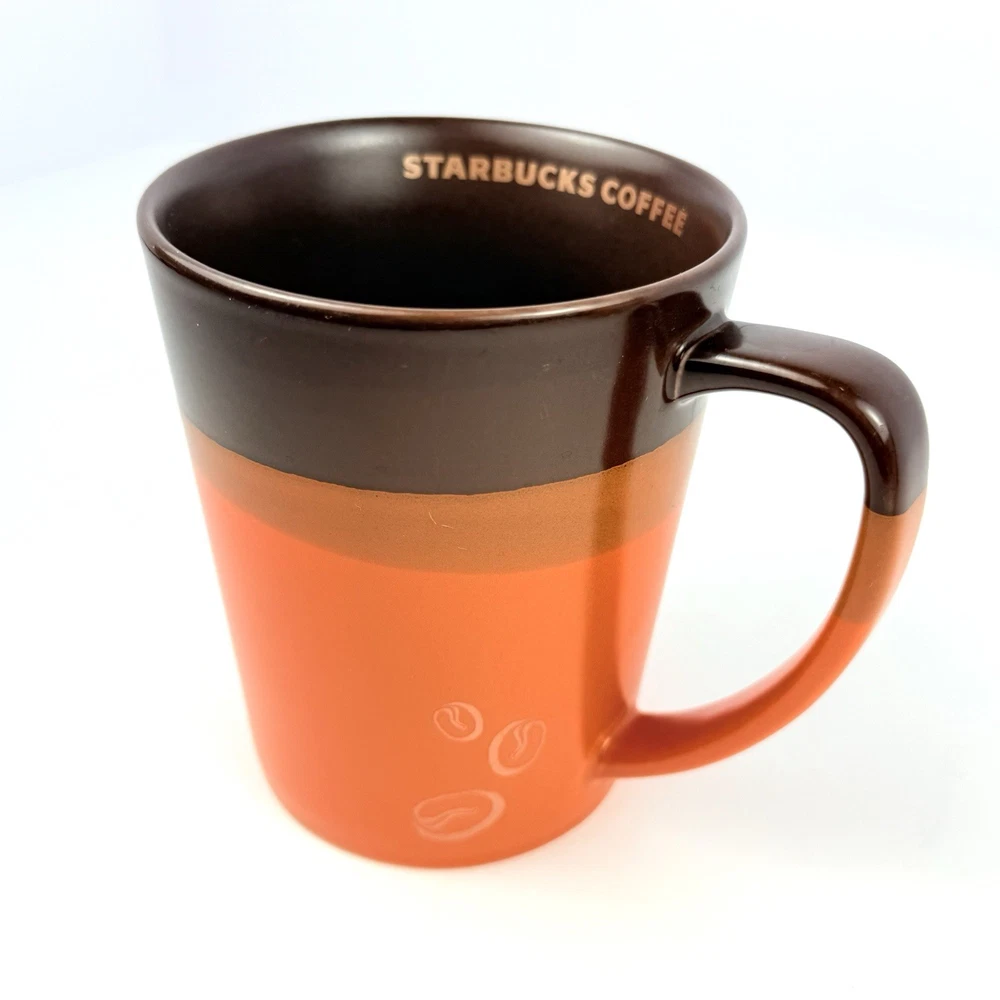 12oz like new coffee mug. Brown and orange with Starbucks written on the inside and coffee beans on the outside. Rare mug. Let me know if you have any questions. Blessings to you! 🤎🧡💛💛🧡🤎