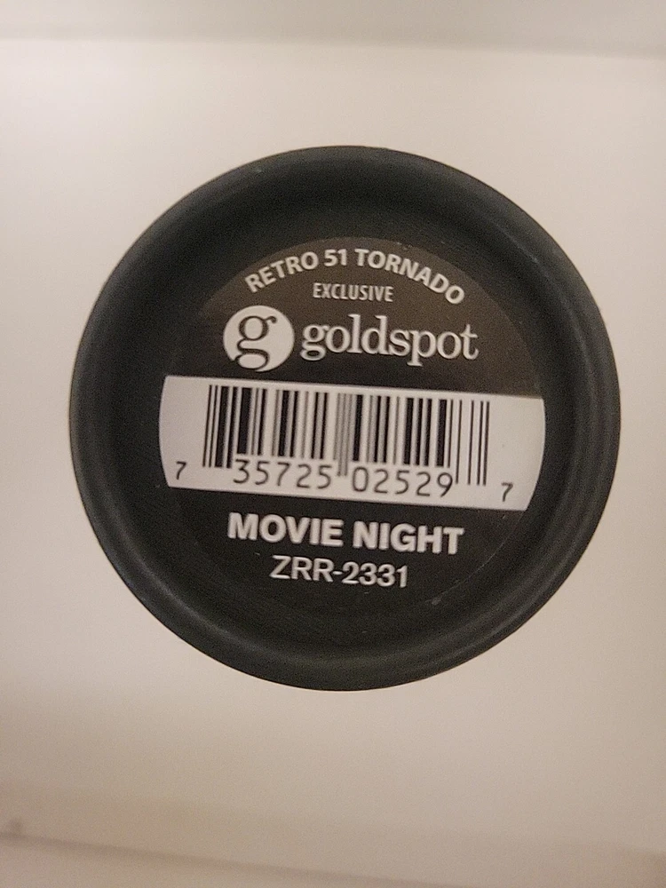 Sealed, new in box. Numbered: #177 Pictures are from the goldspot website and actual item for sale. From a collectors inventory. No marks or blemishes. Goldspot description: Goldspot - Movie Night Rollerball SKU ZRR-2331 It’s Movie Night! Walk the red carpet with Retro51 and Goldspot to celebrate the premiere of this new pen. Whether you watch in the movie theatre or stream movies at home, this new Goldspot Design Your Own Tornado Art Contest winner by Alice Manners will be the star of your collection. With a talented cast highlighted by the leading performer, the acid-etched popcorn, and the colors serving as support, this ensemble brings a new flavor to your collection. Buttery, salty, or cheesy this rollerball brings the magic of the silver screen to your writing experience. Curl up with a blanket, popcorn, drink, and a notebook to write you own story. Craft your acceptance speech, knowing you won’t be played off the stage, with this new movie themed pen.