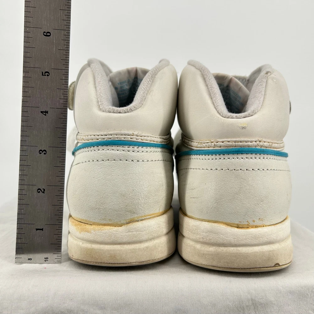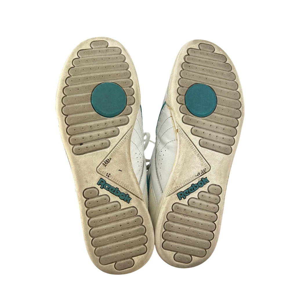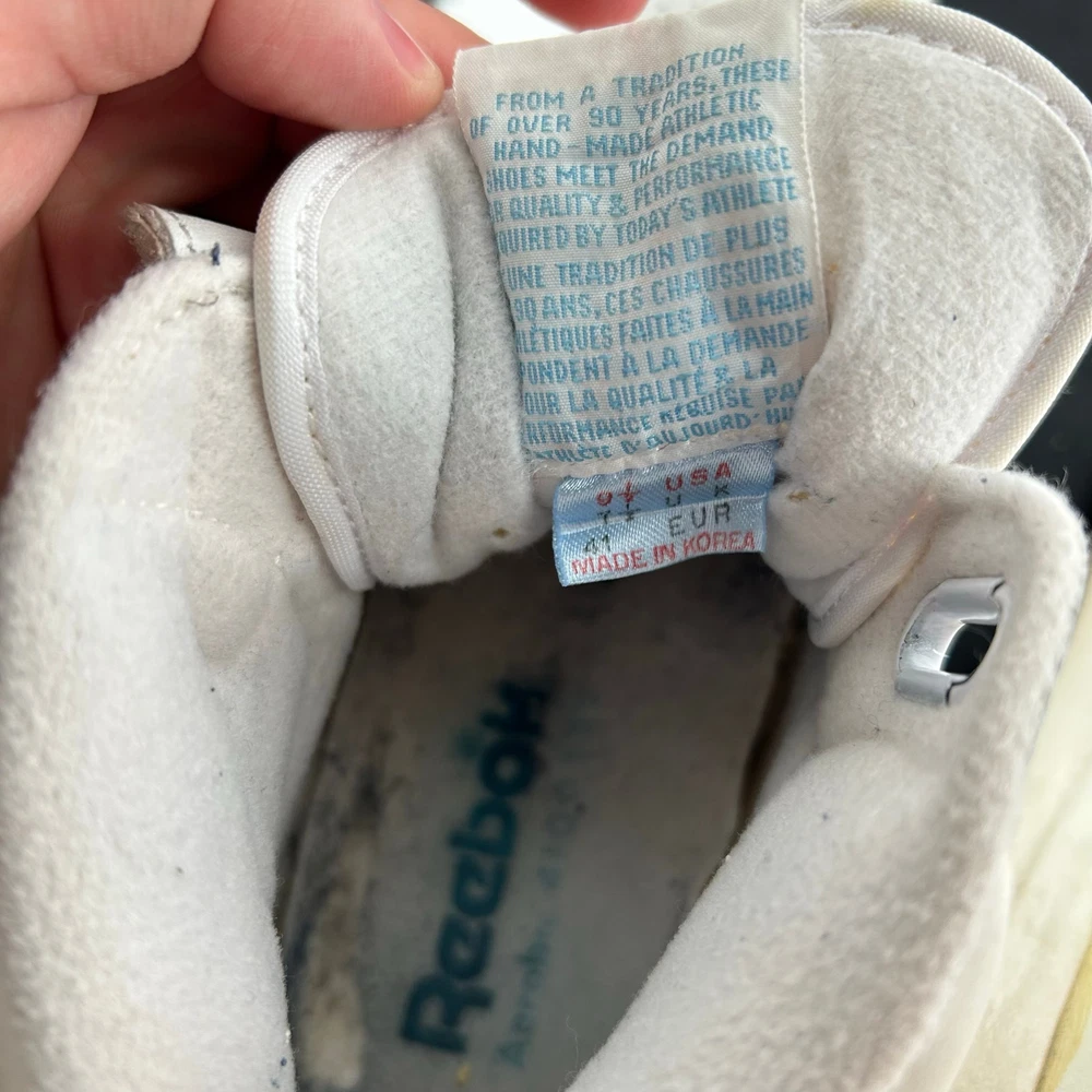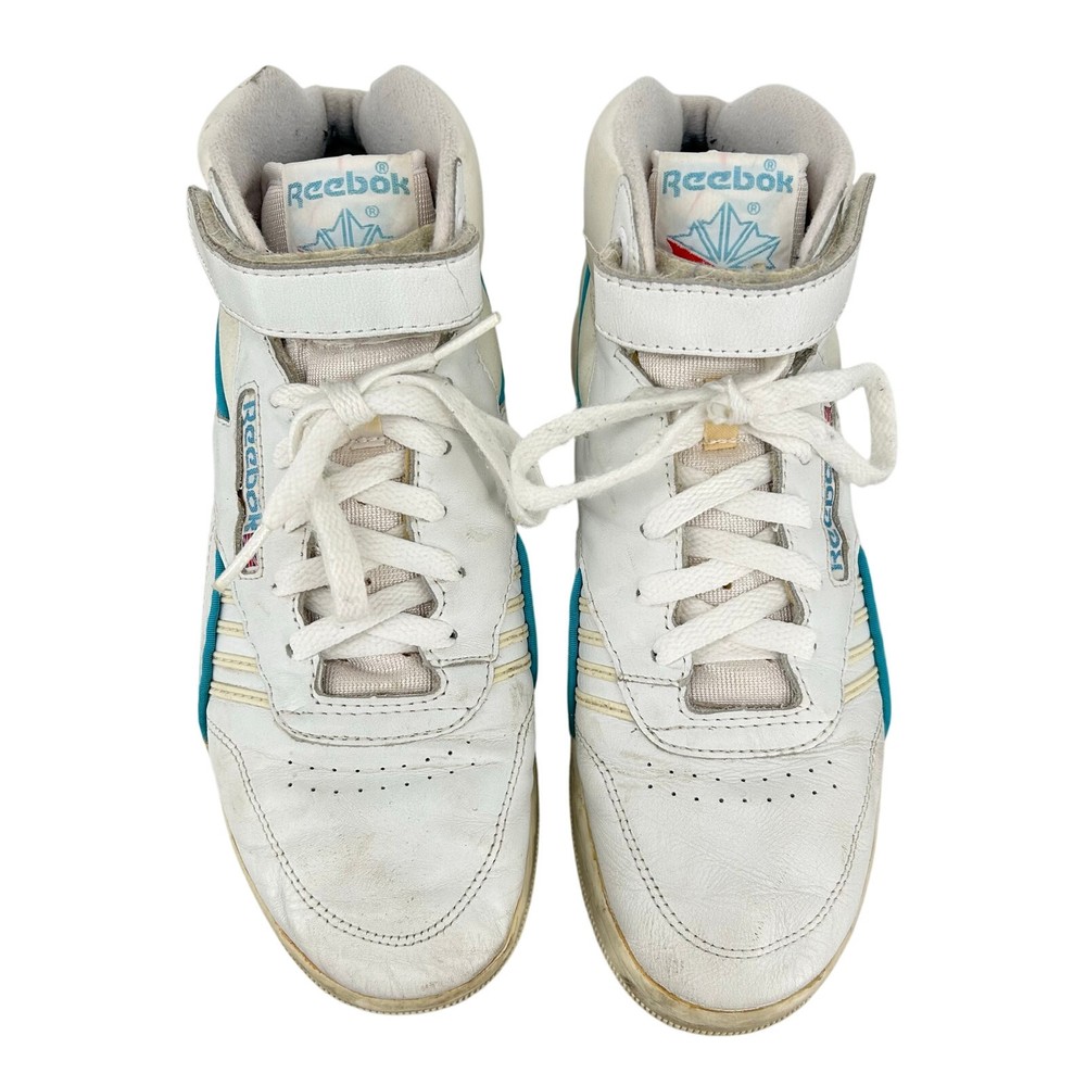 Vintage 80s Retro Women's White Blue Reebok High Top Aerobic 4100 ERS Sneaker Shoes Size 9.5 Size: USA men's 9.5 In fair condition. These are almost 40 years old, so there is staining, creasing, yellowing, etc. Please see photos. Cross listed on several platforms. Feel free to ask any questions!