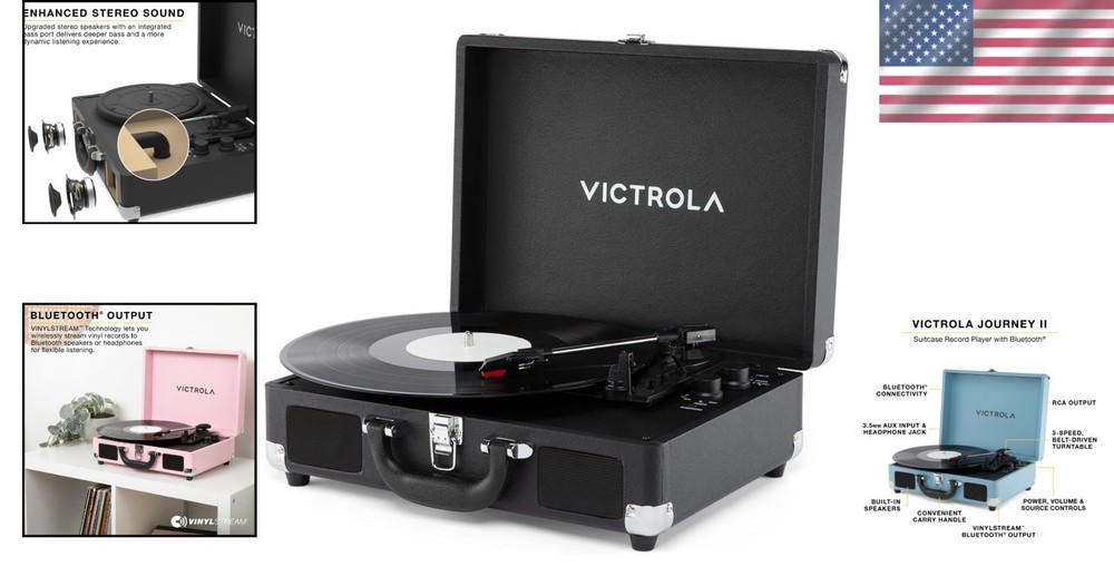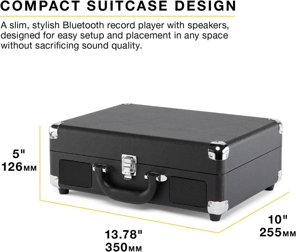 Retro Bluetooth Suitcase Record Player - Dynamic Sound & Easy Setup | Journey II ‹ › ‹ › ‹ › ‹ › ‹ › ‹ › ‹ › ‹ › ‹ › ‹ › Discover the Retro Bluetooth Suitcase Record Player - Journey II Unleash the magic of your vinyl collection with Journey II, the latest evolution of the iconic portable suitcase record player. Perfectly designed for music lovers who crave dynamic sound and effortless setup, this charming unit combines modern features with timeless elegance. Features: Sharpened Sound: Experience an unparalleled sound quality with upgraded stereo speakers and an integrated bass port that delivers deeper bass and enhanced audio performance. Bluetooth Output: Enjoy the flexibility of streaming your vinyl records to Bluetooth speakers or headphones with VINYLSTREAM™ technology, offering you new listening experiences. Wireless Streaming: Effortlessly stream music from your Bluetooth device directly to the built-in speakers for a clutter-free listening experience. Versatile Connectivity: Features a line input to connect external devices, RCA output for connecting to external speakers, and a headphone jack for private listening. Easy to Use: Designed for quick and simple setup, allowing you to enjoy your favorite records in minutes without any extra gear required. Supports Multiple RPMs: Compatible with 33 1/3, 45, and 78 RPM records, featuring a convenient auto-stop function for your ease. Benefits: Compact and portable design, perfect for any lifestyle. Rich, dynamic sound quality that enhances your listening experience. Backed by over 115 of heritage, ensuring reliability and quality. One of dedicated after-sales support and US-based customer service for your peace of mind. Why Choose Journey II? For vinyl enthusiasts and newcomers alike, Journey II offers a perfect blend of nostalgia and modern technology. Its retro aesthetic and innovative features allow you to enjoy music in new ways, from the comfort of your home to your weekend adventures. With exceptional sound, versatile connectivity, and effortless portability, this suitcase record player becomes your go-to companion for musical journeys. Don’t miss the chance to elevate your vinyl listening experience. Order the Retro Bluetooth Suitcase Record Player - Journey II today and let the music move you! Shipping Free & Fast Shipping - We offer free shipping to most of the USA with a normal delivery time of 3-7 days. However, due to the current situation, additional delivery time (up to 3 weeks) may be required for some items. Alternative Carriers - We may use alternative carriers (e.g. USPS, FedEx, UPS, etc.) to ensure your package arrives safely and on time. Due to the use of multiple carriers, we are unable to provide a tracking number automatically. Handling Time - Orders are processed and shipped within 1-2 business days of receiving cleared payment. Shipping Restrictions - Shipping to Alaska, Hawaii, Puerto Rico, Guam, and other US territories may incur shipping charges or delivery restrictions. Please contact us before ordering, or your order can be refunded/cancelled. State Restrictions - There may be restrictions based on your state of purchase. For example, certain items may not be shipped to California due to state regulations. Contact for Tracking Updates - If you require tracking updates or have any concerns about the delivery of your order, please feel free to contact us, and we will be happy to assist you. Return 30-Day Hassle-Free Returns - We want you to be completely satisfied with your purchase. If you are not, you can return the item within 30 days of receiving it for a full refund or exchange. Easy Return Process - To start a return, simply contact us and we will provide you with a prepaid return shipping label and detailed instructions. Restocking Fee - There are no restocking fees for returns. However, the buyer is responsible for return shipping costs if the return is not due to a seller's error. Refund Processing Time - Refunds will be processed within 5 business days of receiving the returned item in its condition. Payment We accept all major credit cards, PayPal, and Apple Pay for your convenience. Your payment information is secure and encrypted to ensure a safe and seamless transaction. Please complete your payment within 3 days of purchase to avoid any delays in shipping. Feedback Your feedback is extremely important to us. We strive to provide the best products and customer service possible. If you are satisfied with your purchase, please take a moment to leave us a positive review. If you have any concerns or issues with your order, please contact us before leaving negative feedback. We are committed to resolving any problems and ensuring your satisfaction. Contact Us If you have any questions or concerns, please feel free to out to our customer support team. You can contact us through the eBay messaging system. We are available Monday to Friday, 9:00 am to 5:00 pm EST, and we will do our best to respond to your inquiry within 24 hours. Buy it now and enjoy a pleasant shopping experience! Unit Quantity: 1 Item Weight: Not Specified Features: Bluetooth,Built-in Stereo Speakers,Enhanced Bass,3-Speed Turntable,Bluetooth Input,Bluetooth Output,RCA Outputs,Headphone Outputs,Line Input,Auto-Stop Function Connectivity: Bluetooth,RCA Speed Settings: 33.3RPM,45RPM,78RPM Audio Outputs: Headphone Jack,RCA Outputs Model: Bluetooth Record Player Color: Black Type: Record Player Unit Type: Unit Generation: 2025 Model