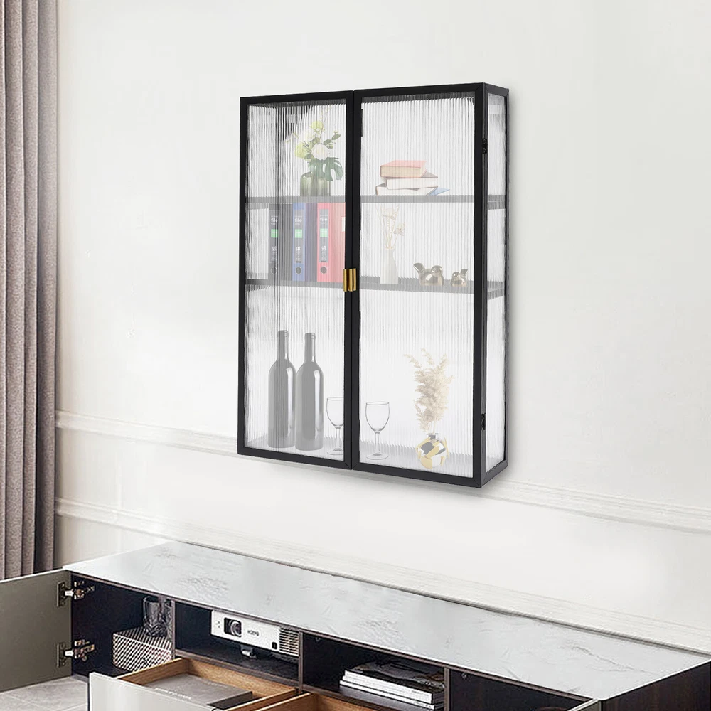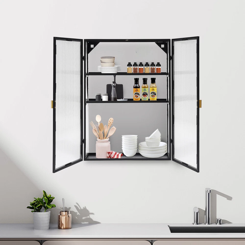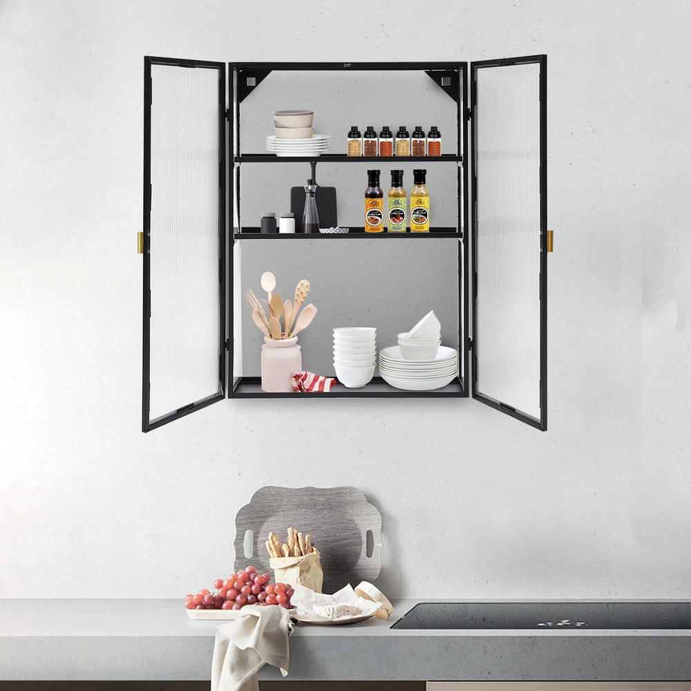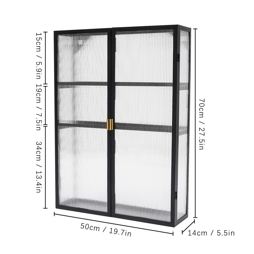 Shape: Rectangular Product Dimensions: 50*14*70cm/19.7*5.5*27.5in Item Length: 50cm gtin13: Does not apply Color: Black Top-tier Height: 15cm/5.5in Number of Tiers: 3 Door Panel Material: PC UPC: Does not apply Assembly Required: Yes Middle-tier Height: 19cm/7.5in Material: Carbon Steel Brand: TBvechi Number of Doors: 2 Mounting: Wall Mounted Item Height: 70cm Type: Wall Cabinet Item Width: 14cm Mount Type: Wall Mount Bottom-tier Height: 34cm/13.4in Surface Treatment: Polishing Style: Modern