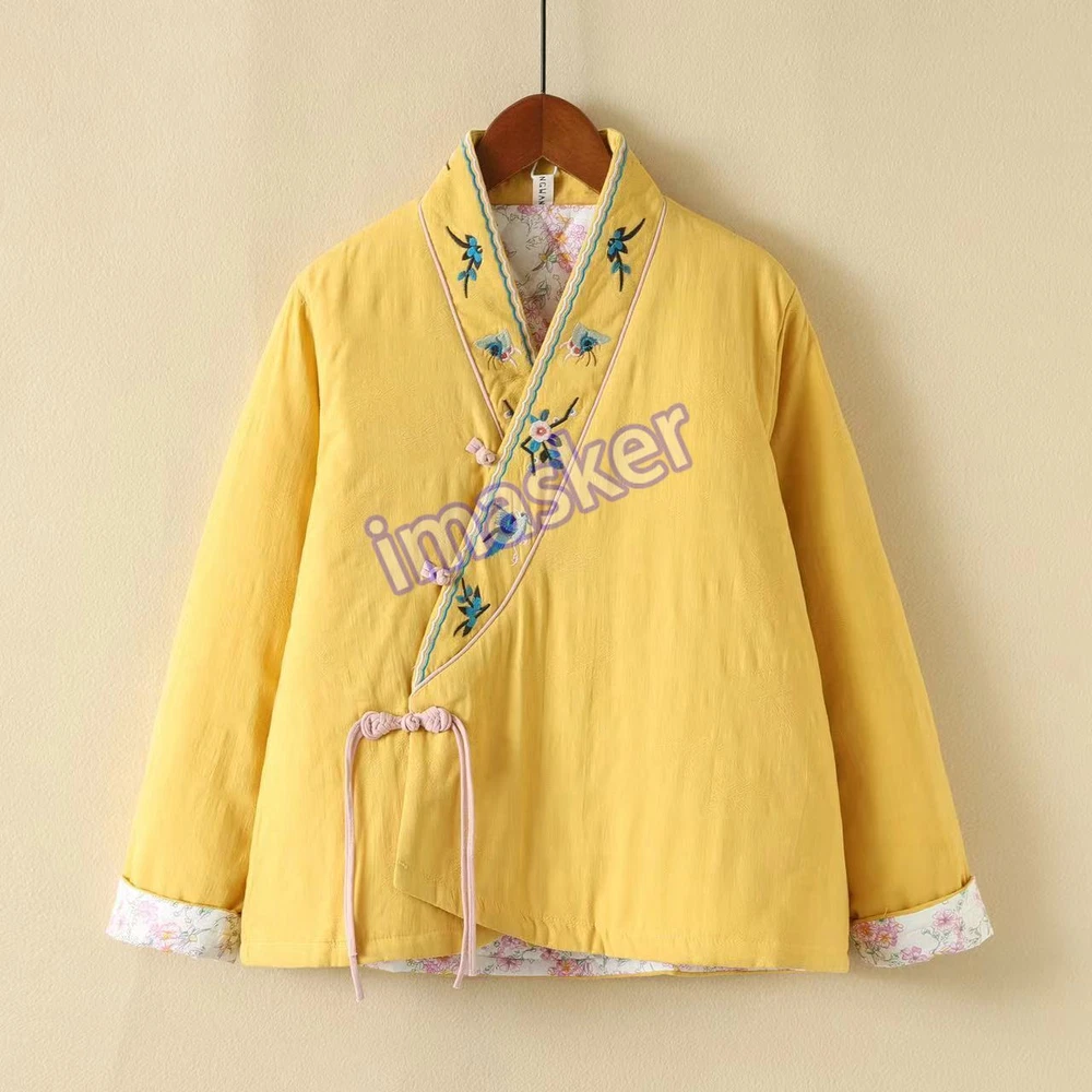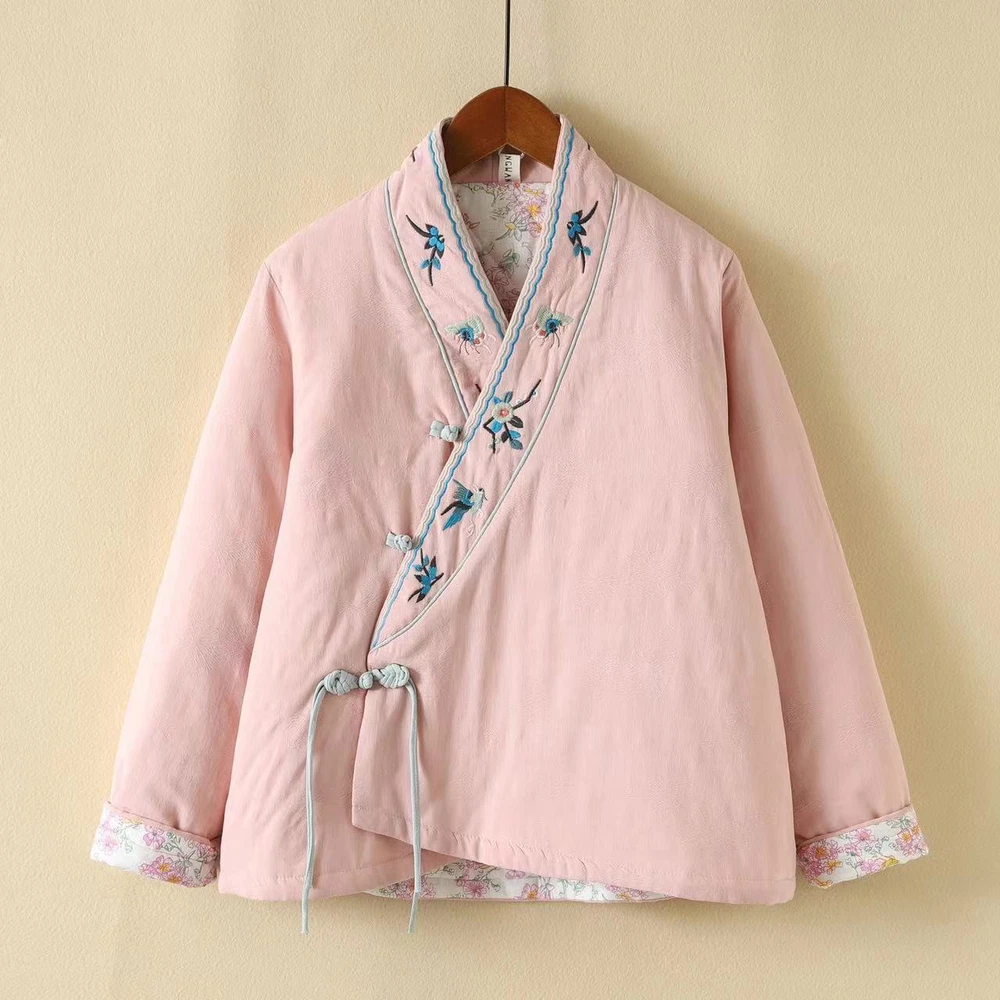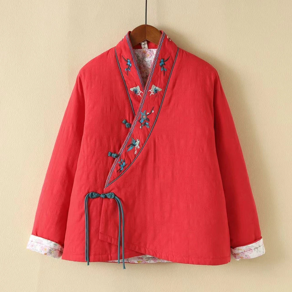 Retro Cotton Linen Embroidery Chinese Style Jacket Women Loose Winter Thick Coat