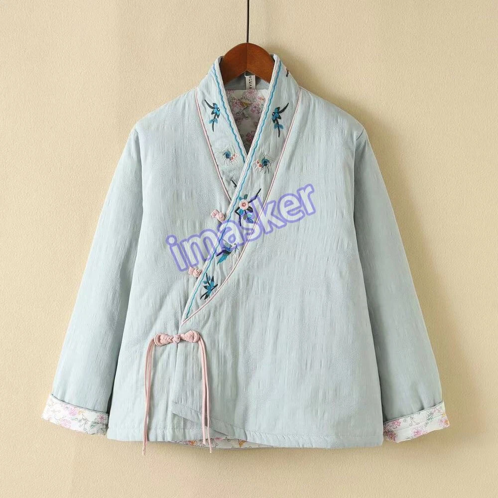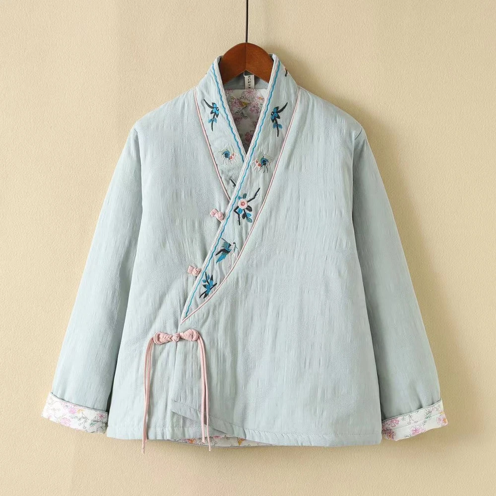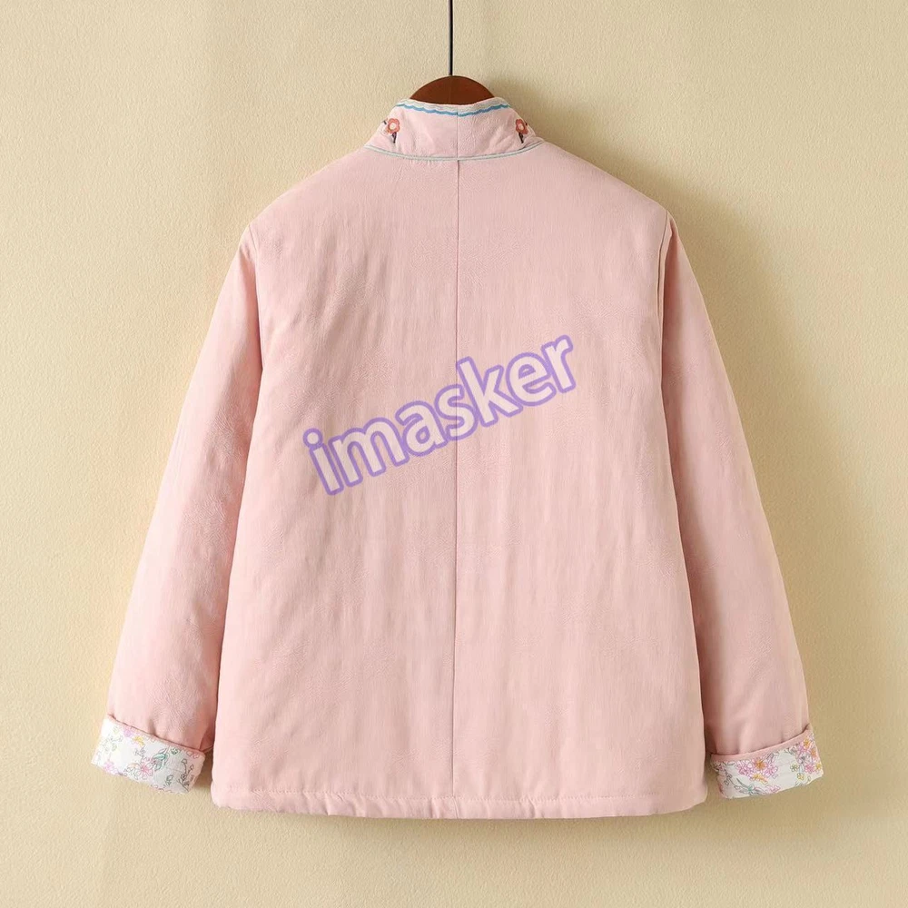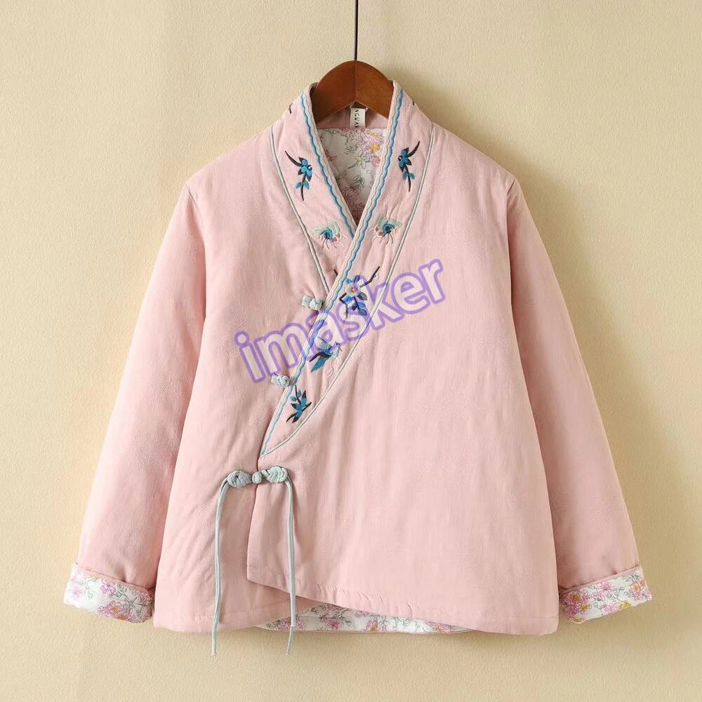Retro Cotton Linen Embroidery Chinese Style Jacket Women Loose Winter Thick Coat
