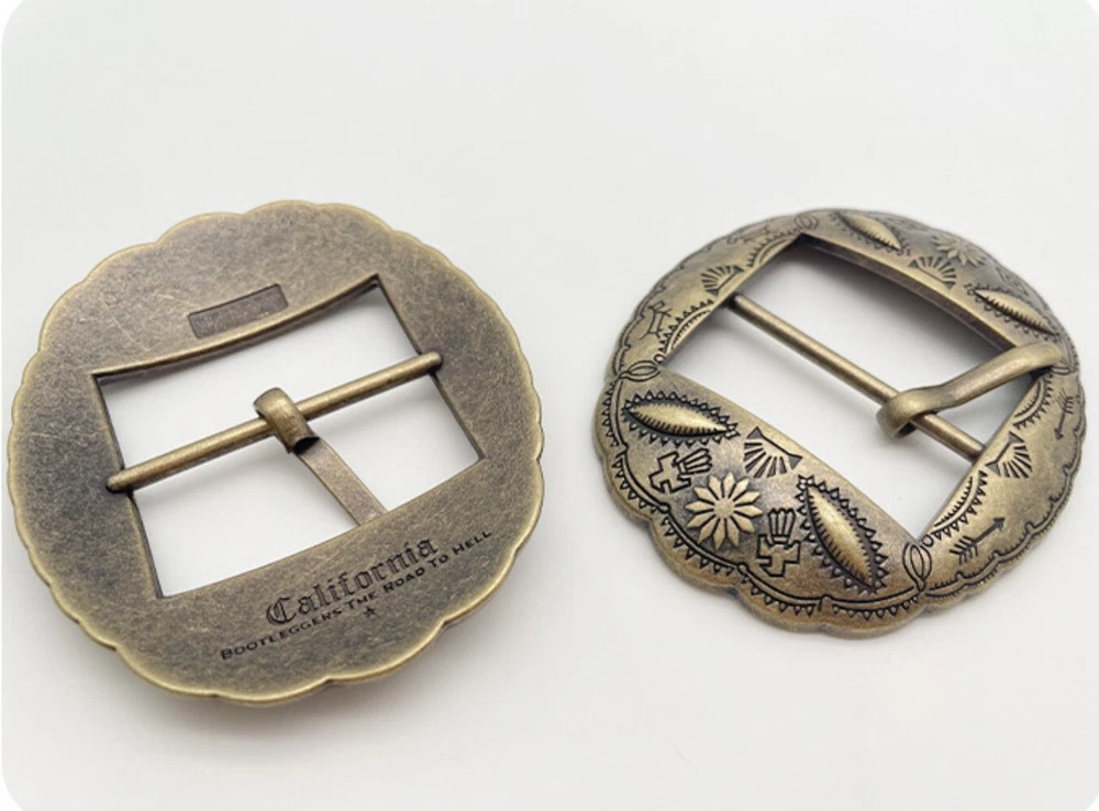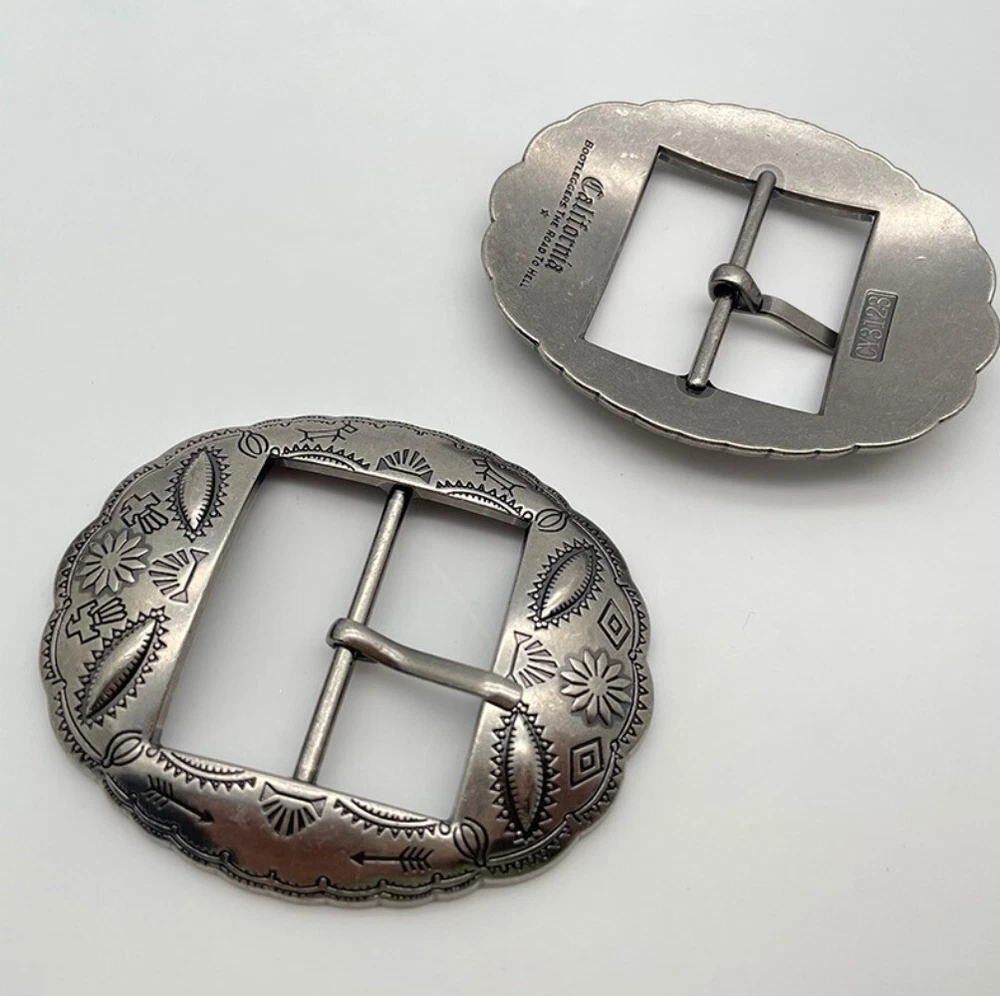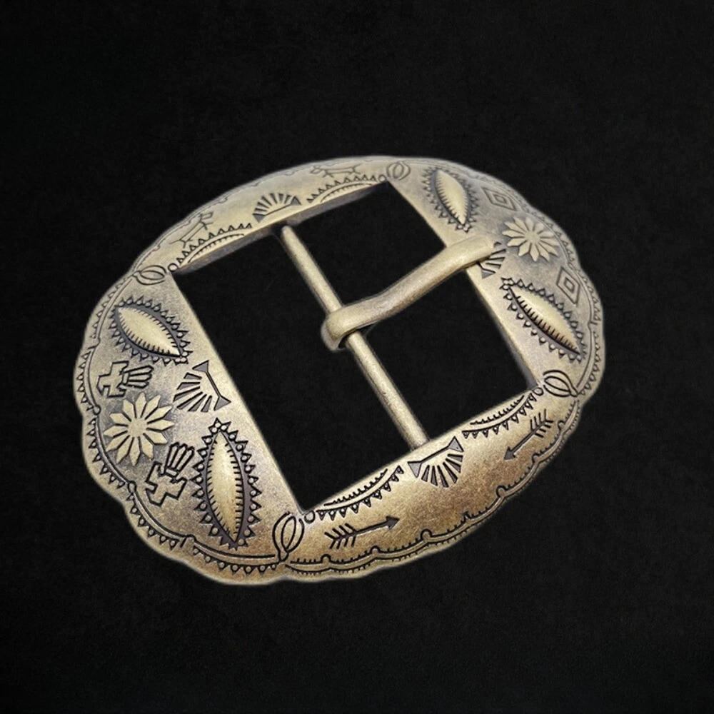 Retro Floral Pattern Belt Buckle Fits 1.5in Belts, Antique Brass / Silver Color