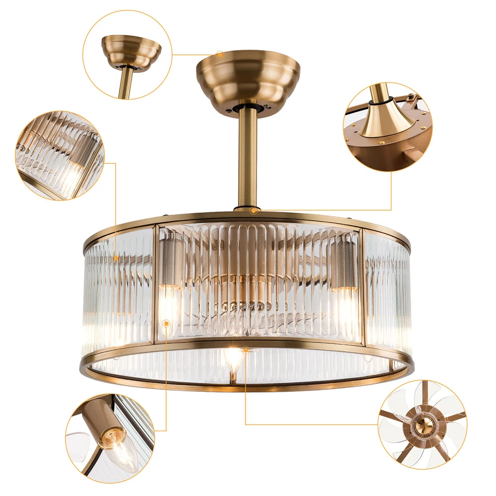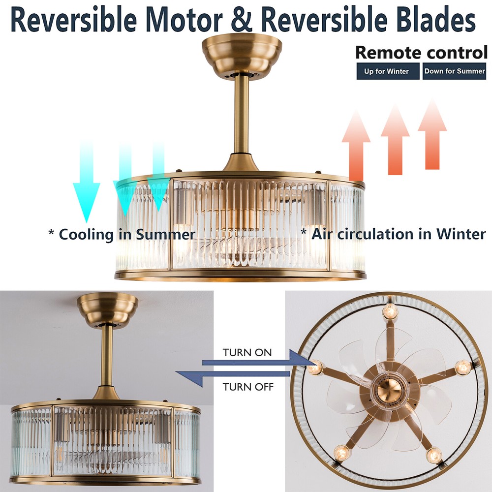 Absolutely love this retro gold ceiling fan! The copper motor runs smooth and quiet, and the six-speed remote makes adjusting breeze a breeze. The caged design adds vintage charm while tempered glass gives it a premium feel—perfect for living rooms. Super easy to install, energy-efficient, and the reversible function is great for any season. Just stunning!