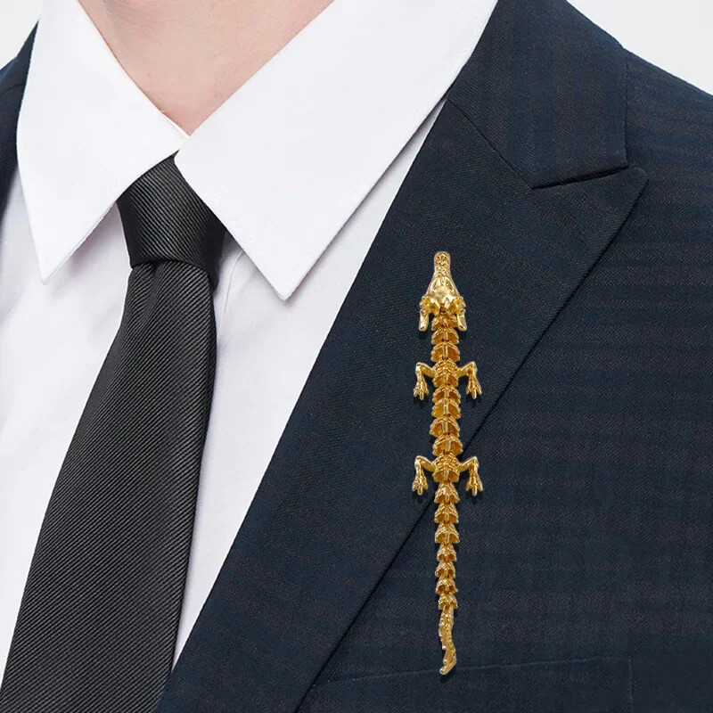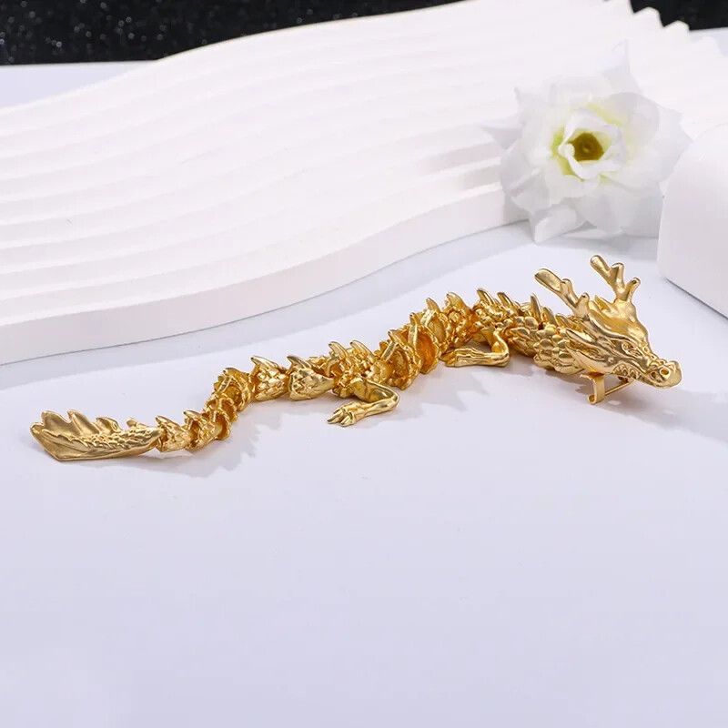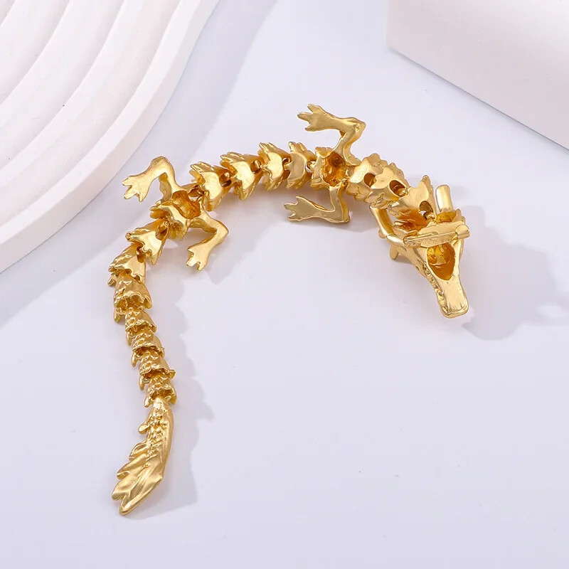 Retro Gold Zodiac Dragon Brooch Movable Joint Pin Accessory