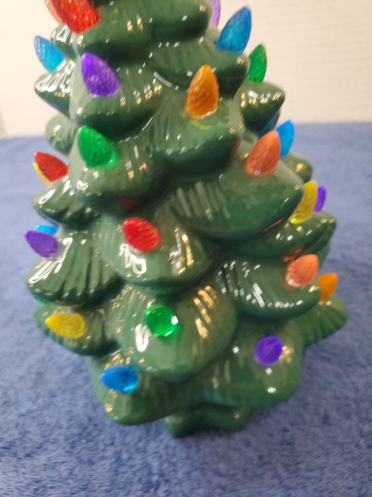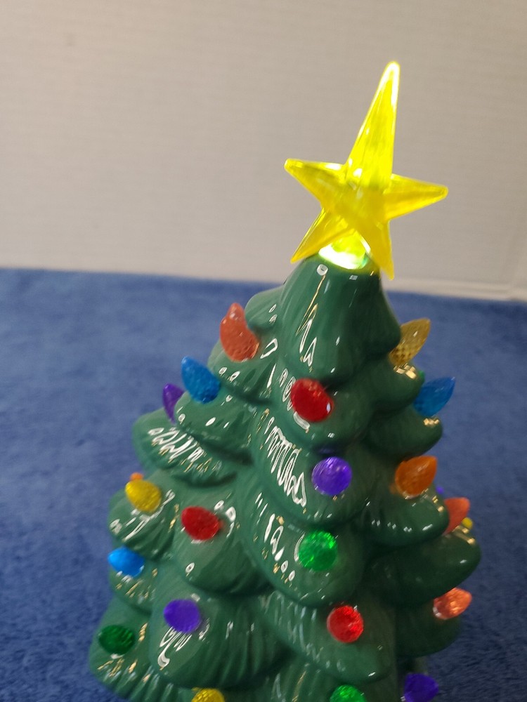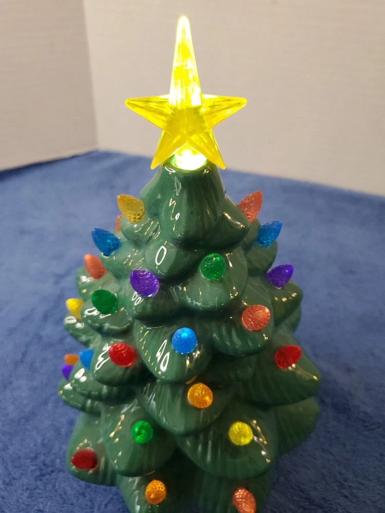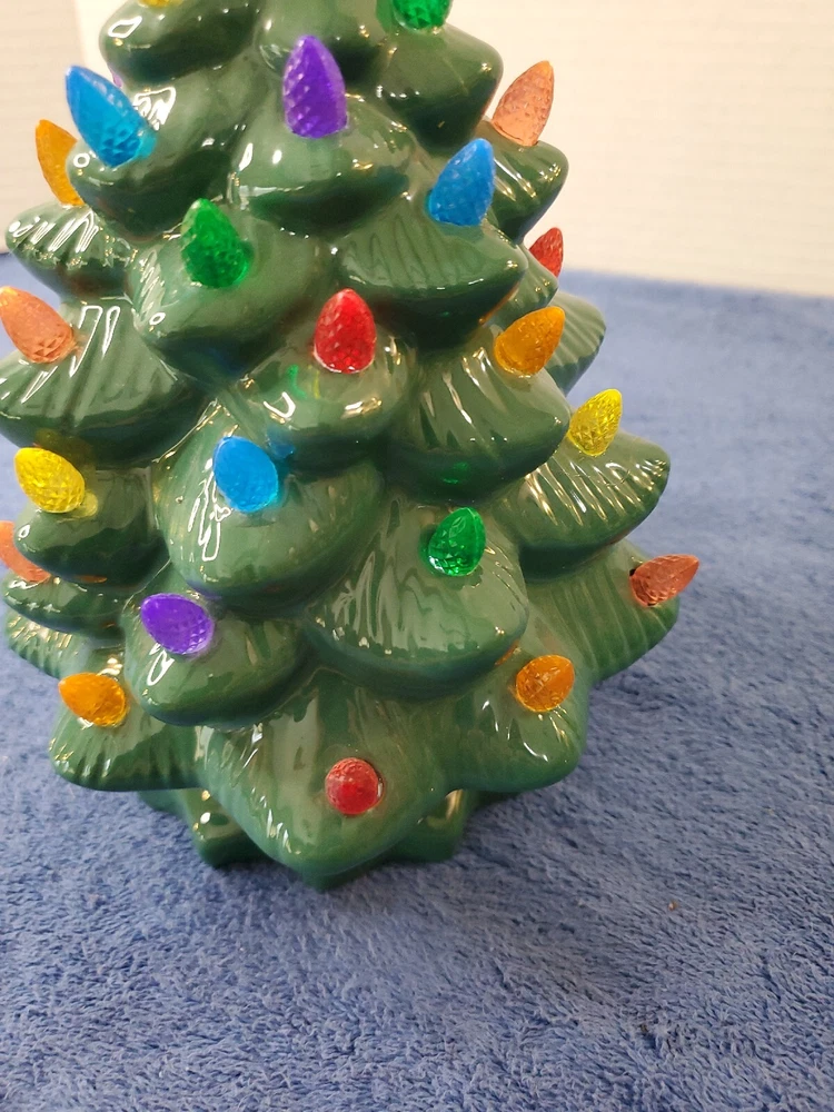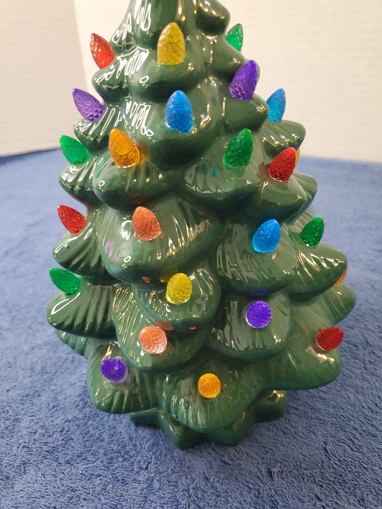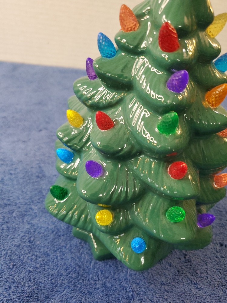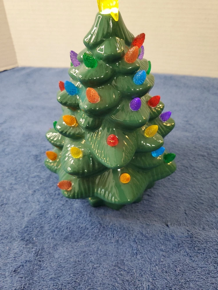 Mr. Christmas Ceramic Retro Nostalgic Tree 10" Green Lighted. Excellent condition. All bulbs and star are intact. Approximately 10" tall. WILL SHIP IN A STURDY BOX. WE WILL COMBINE SHIPPING ON MULTIPLE ITEMS IF POSSIBLE. PLEASE CHECK OUT OUR OTHER ITEMS. THANKS FOR LOOKING.