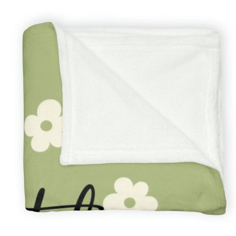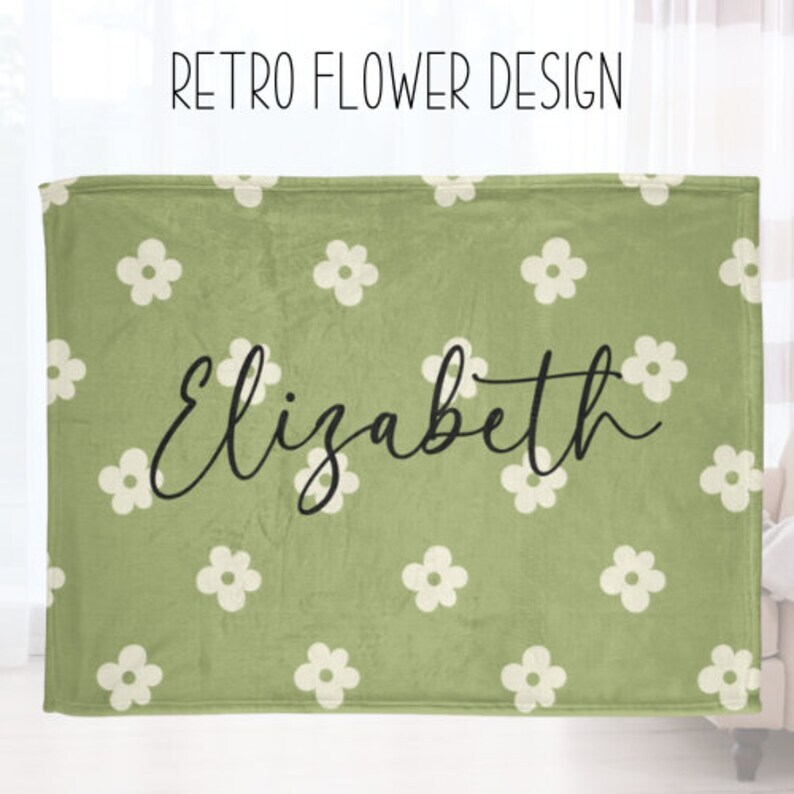 Retro Green Personalized Flower Fleece Blanket for Cozy Reading Nook Decor