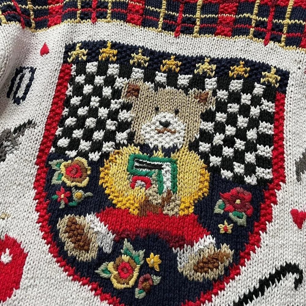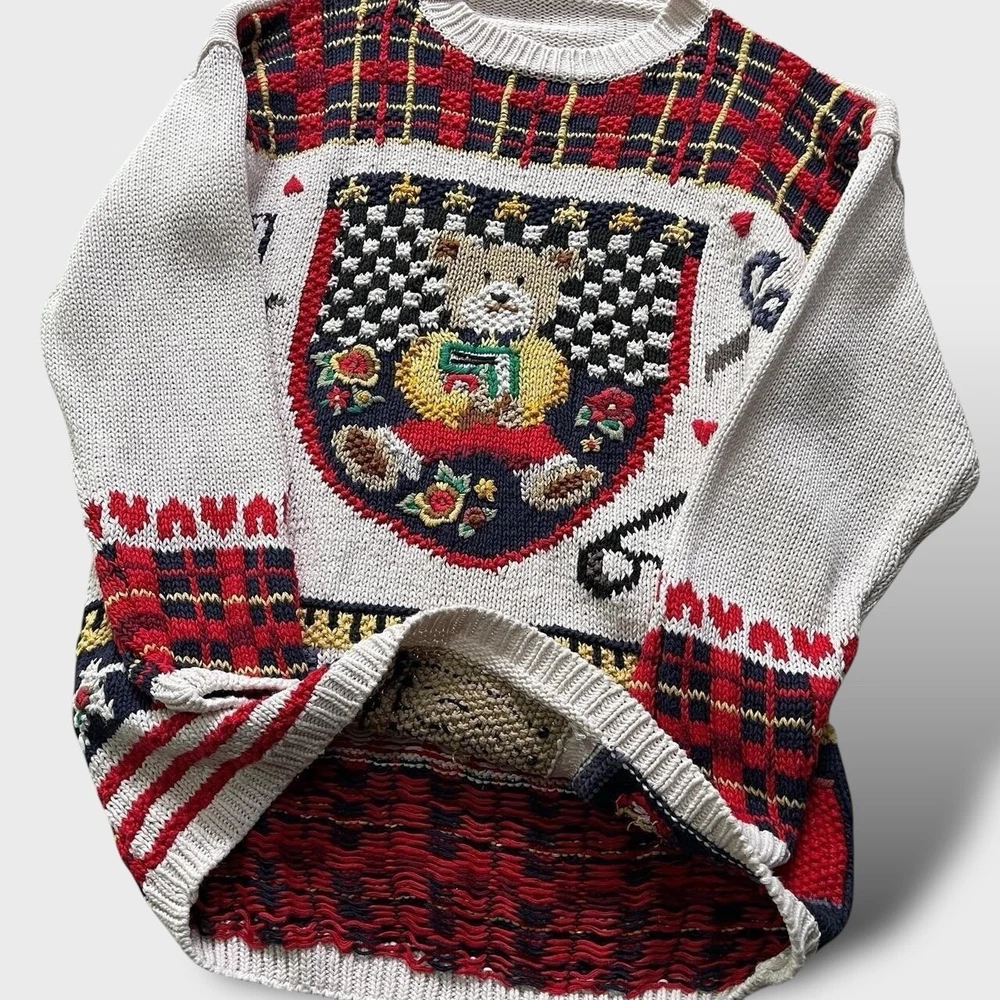 Brand: Sur La Cote Department: Women Fabric Type: Knit Size: M Neckline: Crew Neck Type: Jumper Material: Cotton, Ramie Style: Pullover Size Type: Regular Theme: Designer, School, USA, Los Angeles, Woman, Teddy Bear, Unique, Unusual, Knitted, Ramie Sleeve Length: Long Sleeve Colour: Multicoloured Character: Teddy Bear