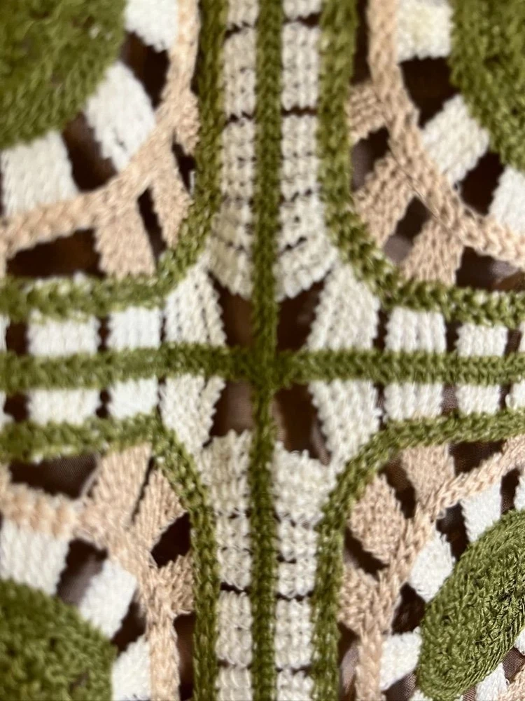 This jacket must be one of a kind. Everything is absolutely beautiful about this colorful crochet jacket. An attention getter when wearing it. It arrived well packaged for the postal process. All as described. Great value and customer service. I must mention "appreciation" for the low shipping cost. There was NO overpricing. 5 STARS all the way. Thank you.