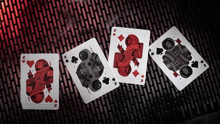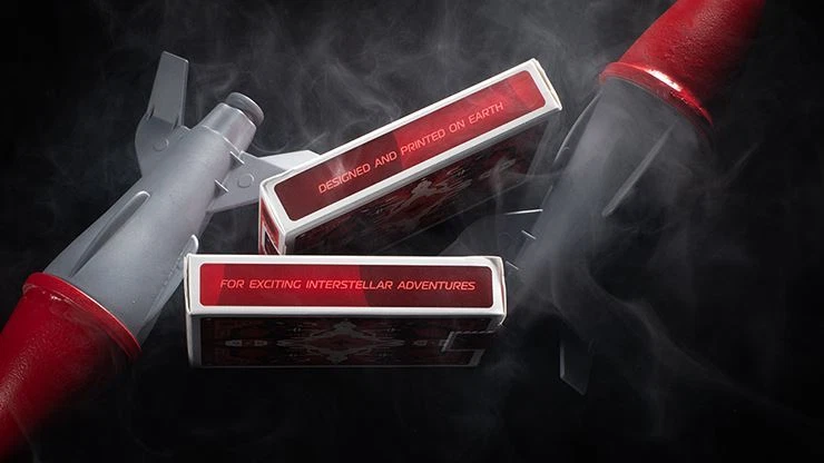 Please note: We only sell genuine playing cards from bonafide manufacturers. Buckle up for a blast from the past with Bicycle Retro Rocket Playing Cards ! These cards celebrate a time when space travel was the stuff of dreams - zipping off to worlds unknown to create vast floating cities in the skies. Designed by Douglas Fuchs, the Retro Rockets are covered in fully custom artwork. The backs have rockets blasting off from a Martian metropolis, and rockets are featured on the Jokers as well. The court cards are all astronauts, while the number cards feature custom suit pips. Printed on Penguin's signature elite thin-crushed stock with an air-cushion "magic" finish, these traditionally-cut cards are a dream to handle whether you're playing on Earth or in outer space! The Retro Rockets are printed by the United States Playing Card Company. The cards are printed using vegetable-based inks and starch-based laminates on FSC-certified paper sourced from sustainable forests. This means the cards not only shuffle, fan, and spread perfectly for all of your favorite games & tricks, they're made with the planet in mind! 100% custom artwork Designed by Douglas Fuchs Printed by the US Playing Card Co Thin-crushed elite stock with air-cushion "magic" finish Traditionally cut Custom tuck box with custom sticker seal 2 gaff cards included Limited print run of 2,500 decks ____________________________________________________________________________________________ Are you ready to elevate your poker game with original playing cards? Visit our store today to browse our selection of authentic decks and start playing like a pro. Remember, when it comes to poker and other card games, we only sell original cards from genuine sources. Experience the difference for yourself and take your gameplay to new heights with premium quality playing cards.