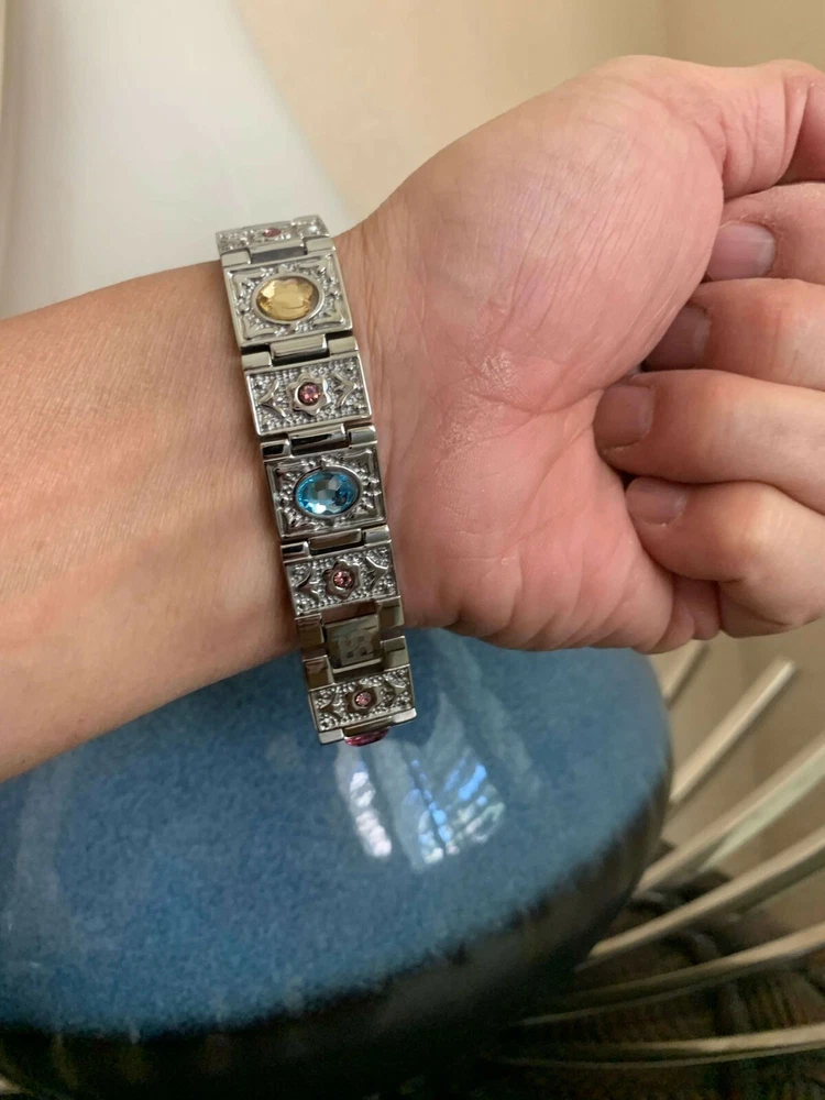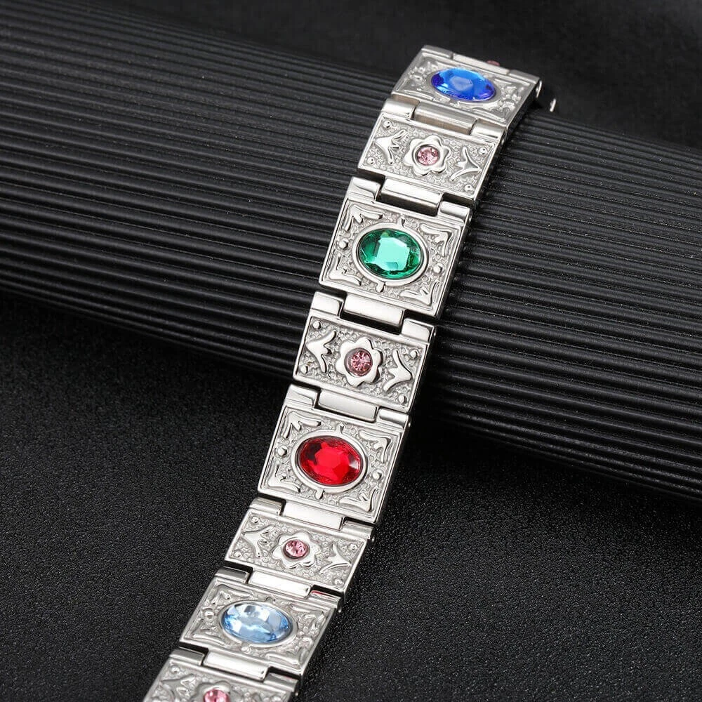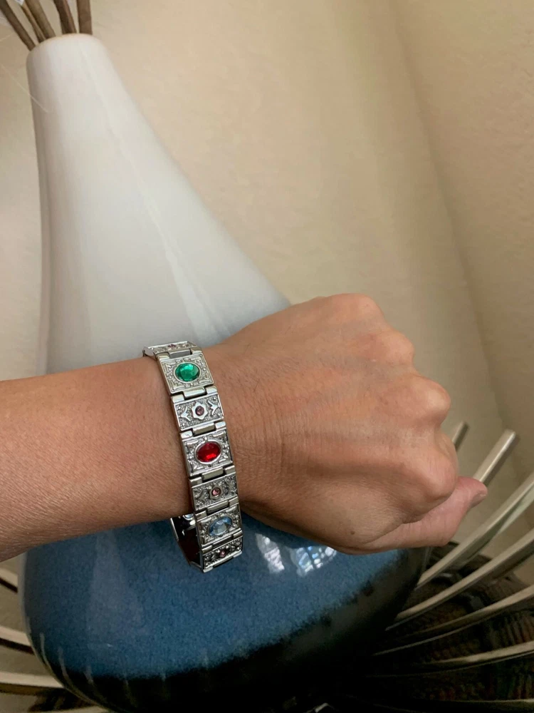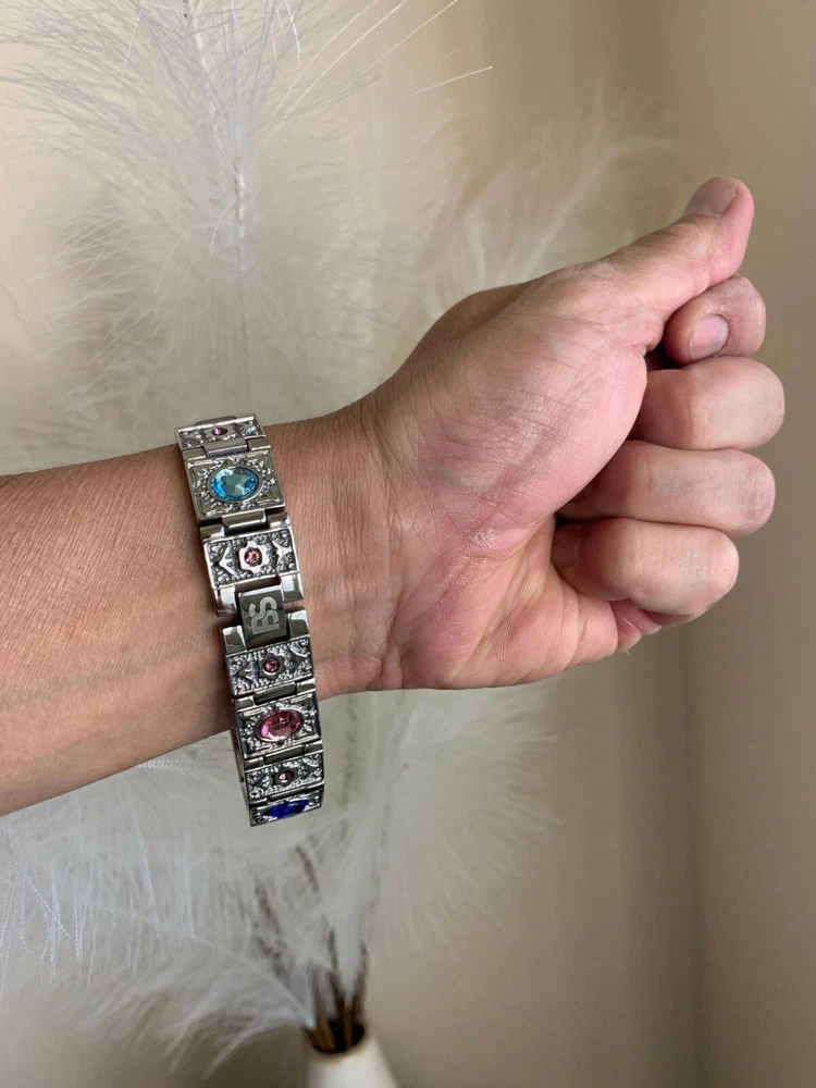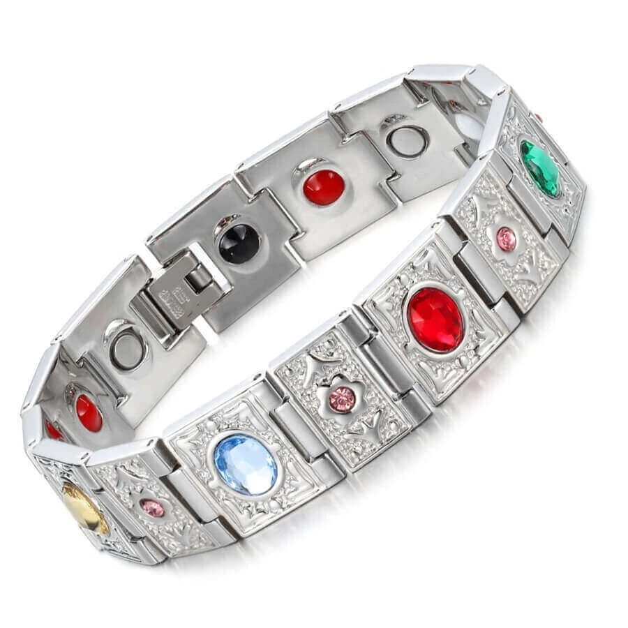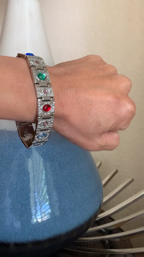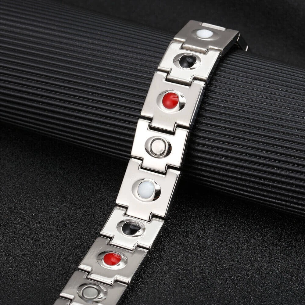 Gorgeous Surgical Steel Magnetic Therapy Bracelet Key to Good Health Begins with Good Circulation - It's like Acupuncture without needles... Size: 7.7 in., adjustable, Free Custom Sizing on request Perfect Christmas Gift ! It’s like Acupuncture without the needles, increases circulation Best Looking, Stylish Modern American Design and Precision Hand-crafted Bracelet. Just wear it, it looks great and its therapeutic - what more could you ask for? * Pure Surgical-Steel magnetic therapy bracelet with 14 Neodymium magnets, germanium, negative ion and Far Infrared * 5,000 Gauss each (70,000 Gauss Total) for maximum strength and results * Relieves Aches and Pain, Helps Arthritis Pain, Therapy Bracelet * Helps with Stress and Anxiety, Makes you feel better * Size: 7.7 in. - Adjustable with included tool, Same Day Shipping Great uplifting Gift for Yourself and Your Loved Ones. Try it, Love or 30 days Money Back.