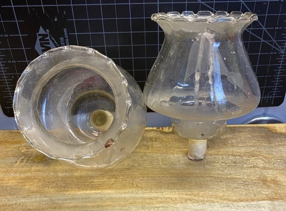 Elevate the ambiance of any room with this set of two vintage-inspired votive candle holders. Their retro floral pattern design adds a touch of timeless elegance, making them suitable for all occasions. Each piece measures 5 1/4" in length and features a glossy finish that enhances the delicate glassware. Crafted for those who appreciate the charm of unbranded, original pieces, these candle holders are a testament to understated beauty. They're ideal for anyone looking to create a warm and inviting atmosphere in their space, and their versatile style ensures they fit seamlessly into any room or décor. Please refer the photos for further description