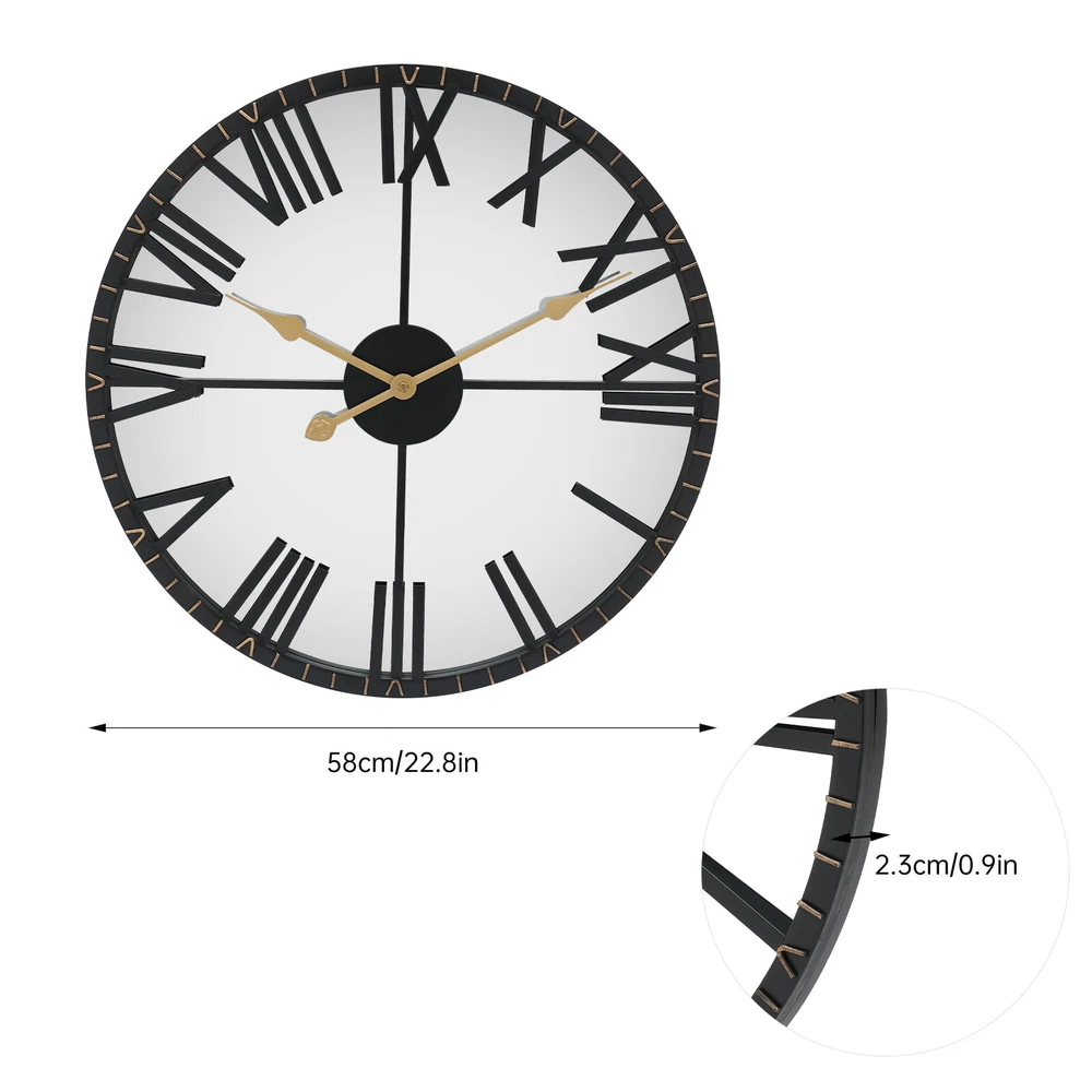 Description Are You Frustrated with the Old Wall Clock at Home That Keeps Ticking? Do You Want a Quiet, Stylish, and Durable Wall Clock? Then You Cannot Miss This Wall Clock. the Fashionable Appearance and the Clear Clock Numbers on the Dial Record the Warm Moments of Family and Love. It Will Be a Great Addition to Your House. Package Included 1* Wall Clock 1* English Manual Specification Color: Black Material: Iron, Acrylic, Aluminum Shape: Round Style: Antique Surface Treatment: Polished Process, Welding Process Power Source: 1* Aa Battery (Not Included) Mounting: Wall Mount Net Weight: 3kg/6.6lbs Gross Weight: 3.2kg/7lbs Package Size: 63*62*5.5cm/24.8*24.4*2inch Product Diameter: 58cm/22.8inch Product Thickness: 2.3cm/0.9inch Have a nice day~ Description Are You Frustrated with the Old Wall Clock at Home That Keeps Ticking? Do You Want a Quiet, Stylish, and Durable Wall Clock? Then You Cannot Miss This Wall Clock. the Fashionable Appearance and the Clear Clock Numbers on the Dial Record the Warm Moments of Family and Love. It Will Be a Great Addition to Your House. Package Included 1* Wall Clock 1* English Manual Key Features Silent Operation: the Silent Movement Doesn't Produce an Annoying Ticking Sound, Providing a Quiet Working and Living Environment. Excellent Readability: the Second Sweep Movement Guarantees Accurate Time. Meanwhile, the Large Dial with a Diameter of 22.8inch and Clear Black Numbers on the Dial Make This Product Easy to Read. Time Witness: the Wall Clock Records Every Second of the Warm Moments You Spend with Your Family. It Is the Witness of Your Good Memories. High-quality Materials : the Iron Frame Is Welded Manually to Resist Wear and Corrosion. the Acrylic Dial Is Glossy and Can Resist Shock and Deformation, Allowing This Clock to Be Used for a Long Time. the Dial Can Also Provide Clear Vision While Isolating Dust. Antique Style: the Exquisite Metal Frame with Numerals, Glossy Acrylic Mirror Dial, and Slim Design (0.9inch) Complement Each Other to Create an Antique but Stylish Appearance, Making It a Good Decorative Piece to Decorate the Wall. Easy to Clean: It Is Finely Polished to Have a Very Smooth Surface, Allowing You to Wipe It with a Dry Cloth. An Ideal Gift: the Exceptional Design and Good Practicability Make It a Great Gift. You Can Present It to Your Friends or Family Members at Special Festivals. Protective Packaging: This Product Comes in a Custom Foam That Resists Compression and Falls to Prevent Product Damage in Transit. Guaranteed Customer Service: We Aim to Provide Quality Products and Services. If You Have Problems, Please Feel Free to Contact Us. We Will Reply and Solve the Problem for You As Soon As Possible. Specification Color: Black Material: Iron, Acrylic, Aluminum Shape: Round Style: Antique Surface Treatment: Polished Process, Welding Process Power Source: 1* Aa Battery (Not Included) Mounting: Wall Mount Net Weight: 3kg/6.6lbs Gross Weight: 3.2kg/7lbs Package Size: 63*62*5.5cm/24.8*24.4*2inch Product Diameter: 58cm/22.8inch Product Thickness: 2.3cm/0.9inch Details Aluminum Pointers: Aluminum Pointers with High Strength Can Resist Wear and Corrosion, Which Can Extend the Service Life of the Clock. Gourd Hole: the Gourd Hole on the Back Makes the Product Easy to Install on the Wall and Not Easy to Fall off. Application This Creative Wall Clock Is Suitable for Kid Bedrooms, Offices, Classrooms, Restaurants, Hotels, Bathrooms, Living Rooms, Hallways, Bedrooms, and Other Places. It Is Not Only a Wall Clock but Also a Good Decoration. Installation 1. Choose a Suitable Location on the Wall. 2. Tap the Non-marking Nail (Not Included) with a Hammer Until the Nail Is Completely into the Wall. 3. Putting a Aa Battery in the Clock. 4. Turn the Gear on the Movement to Adjust the Time. 5. Hang the Clock on the Non-marking Nail. 6. Complete the Installation. Notes This Product Does Not Include Batteries. Please Prepare an Aa Battery in Advance. Please Avoid Using It in Rotten Wood and Where the Wall Is Peeling off. You Need to Turn the Gear Behind to Adjust the Time, Please Do Not Use Your Hands to Fiddle with the Clock Pointers. Tile Walls, Marble Walls, and Glass Walls Can Choose Traceless Nails. When Selecting the Wall-mounting Method, Please Evaluate the Safety First. It Is Recommended to Select the Screw Hole Installation to Avoid Falling off to Cause Unnecessary Property Damage. Please Read the Manual Completely Before Installation and Use. Please Allow the Slight Color Difference Caused by the Shooting Light and the 1-3cm Error Due to Manual Measurement. Please Make Sure You Do Not Mind Before You Order. Payment Delivery details Terms of sales About us Contact us Payment We accept ebay payment 。 Fees such as import duties, taxes are not included in the item price or shipping costs. These charges are the buyer's responsibility. Delivery details Shipping: 2-9 working days to: USA Terms of sales We maintain high standards of excellence and strive for hundred percent customer satisfaction. Feedback is very important to us. We hope that you contact us immediately before you give neutral or negative feedback, so that we can address your concerns. It is impossible to address issues if we do not know about them! About us Your satis faction is our ultimate goal. We work hard to earn your trust and future business. Our certified technicians have tested each item before shipping. The unit comes with 1 year limited warranty on all manufacturing defects. a) If you receive a defective item, you may return it or ask for a discount. Please contact us within 14 days after you receive the package. b) What you returned must be intact and in its original packaging as re? u. Customer is responsible for shipping costs of the returned item. c) We will cover the cost of shipping back t with the shipping rate indicated in the registration page. We will send you a new unit or refund the full payment you paid. Thank you. Contact us Business Hour Business Hour: Mon