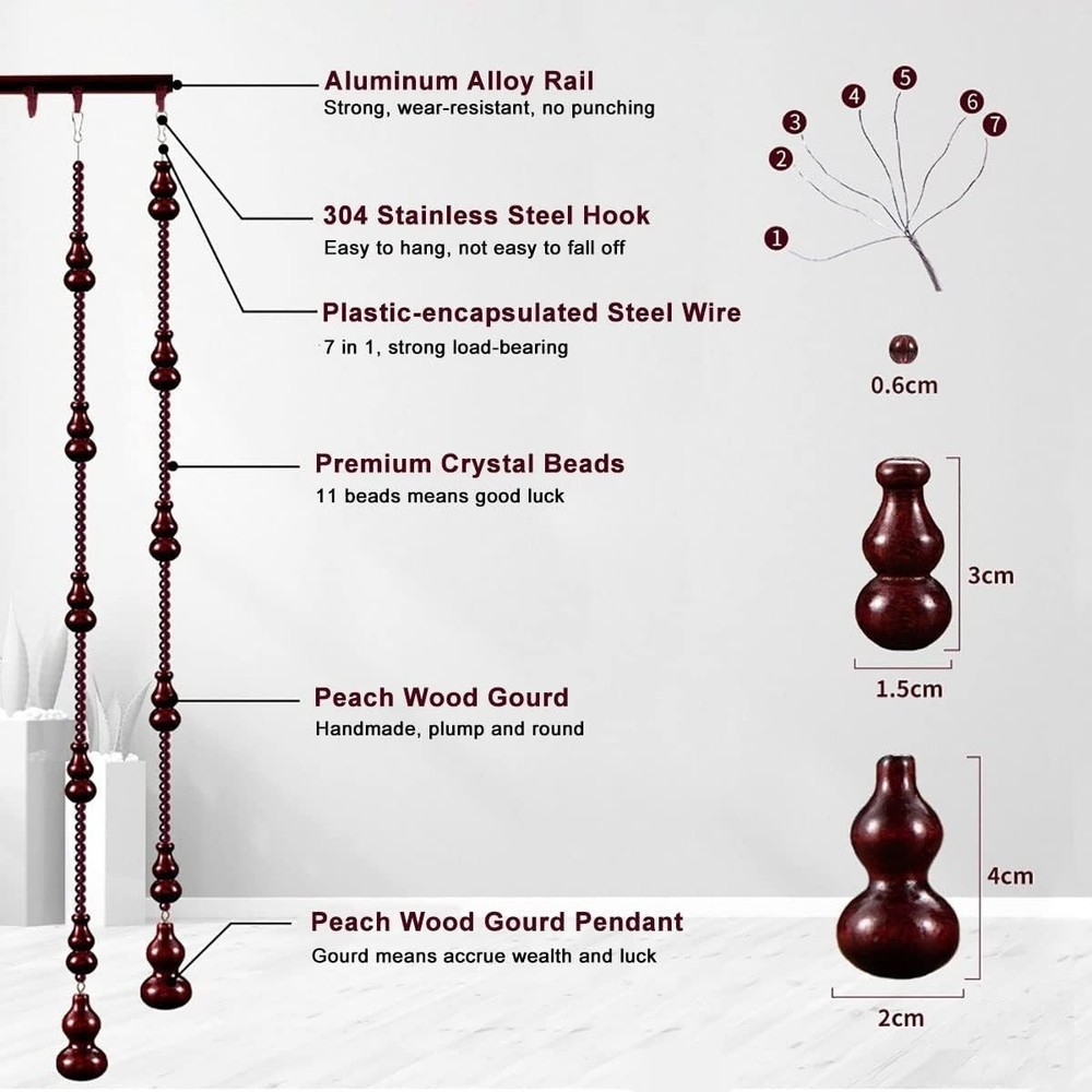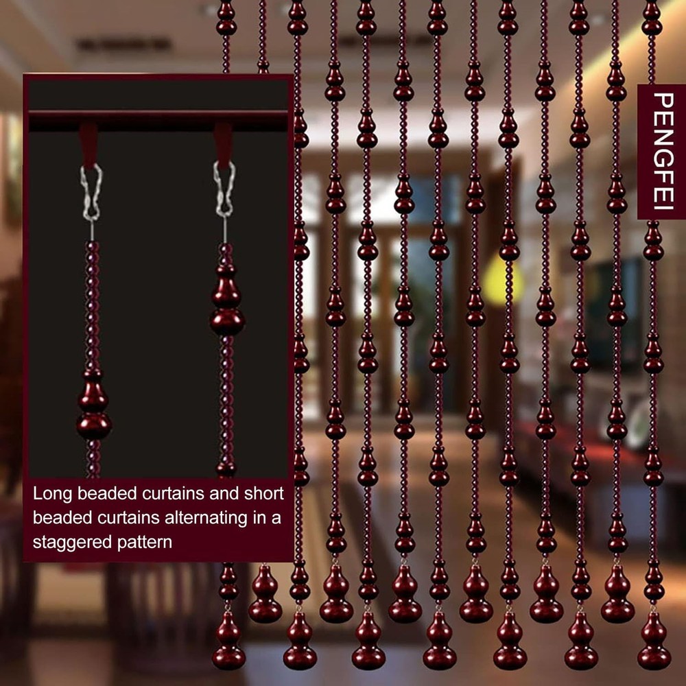 Natural Soild Wood: Beaded Curtains are made of peach wood. High-quality natural solid wood, the particle size is uniform, bright color, varnish wrapped, non-cracking, non-aging, non-fading, long service life. Bead Curtain Size: Each wood beaded curtain is 35.5" x 78" (90x198cm) with 29 string attached to a Aluminum alloy rail.The higher density of the rope is 3.6cm, Generally, the interval of 2-3cm bead curtains is more beautiful. Perfect Decoration: Used as door beads curtain, doorway curtain, closet curtain, room divider, wall decoration, window treatment,Can be used for the family’s restaurant, living room, bedroom, bathroom, kitchen. Privacy Protection: Bead curtain partition is a soft partition commonly used in modern times, which can maintain good air circulation, while protecting privacy and effectiveness Block sight, providing you with a comfortable indoor environment. Easy to Install:Very easy to install, The product contains all the hanging hardware needed for installation, We have detailed installation instructions that you can install in minutes.