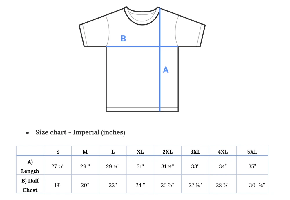Return Of The Living Trump 2024 T-shirt K12991 1. PRODUCT INFORMATION Classic Unisex Crewneck T-shirt A classic unisex t-shirt that works well with any outfit. Made of a heavier cotton with a double-stitched neckline and sleeves. - Rolled-forward shoulders for a better fit - Stylish fitted sleeve - Seamless double-needle collar - Taped neck and shoulders for durability - Tubular fit for minimal torque Material - Solid colors are 100% ring-spun cotton - Heather colors are 65% polyester, 35% ring-spung cotton - Fiber content may vary by color Please note: - Keep in mind that colors may differ depending on computer settings - We WON'T take any responsibility for INCORRECT address, so please check your address carefully before checkout. 2. SIZE GUIDE Size chart - Imperial (inches) S M L XL 2XL 3XL 4XL 5XL A) Length 27 ⅞ '' 29 '' 29 ⅞ '' 31'' 31 ⅞ '' 33'' 34’’ 35’’ B) Half Chest 18'' 20'' 22'' 24 '' 25 ⅞ '' 27 ⅞ '' 28 ⅞ '' 30 ⅞ '' A) Length Place the end of the tape beside the collar at the top of the shirt (Highest Point Shoulder). Pull the tape measure to the bottom of the shirt. B) Half Chest Lay the garment down on a flat surface and measure it from left to right across the chest, about 2cm below the arms. Measurements are provided by suppliers and garments may run smaller or larger with a difference of +/- 2.5cm (1 in). 3. CARE INSTRUCTIONS - Machine wash: warm (max 40C or 105F) - Non-chlorine: bleach as needed - Tumble dry: Low - Do not iron - Do not dryclean. 4. SHIPPING AND HANDLING - Print and ship from USA - Domestic shipping: 3 – 7 Business days - International shipping: 10 – 20 Business days Please be patient when awaiting shipment (When tracking is AVAILABLE) 5. RETURN Exchange or refund items are unacceptable since we create each shirt to your specifications unless an item you received has a major problem in below: - Design errors/wrong order: Completely wrong design compared to information provided by customers on Ebay. - Bad quality: blurry image/print. - Significantly different from the description. - Defective/Damaged due to the fault of our factory or the carrier - Order was sent to the wrong address Have a design, color, sizes in mind that you did not find? Message us about custom orders! We enjoy working with others and using our craft to make them happy.