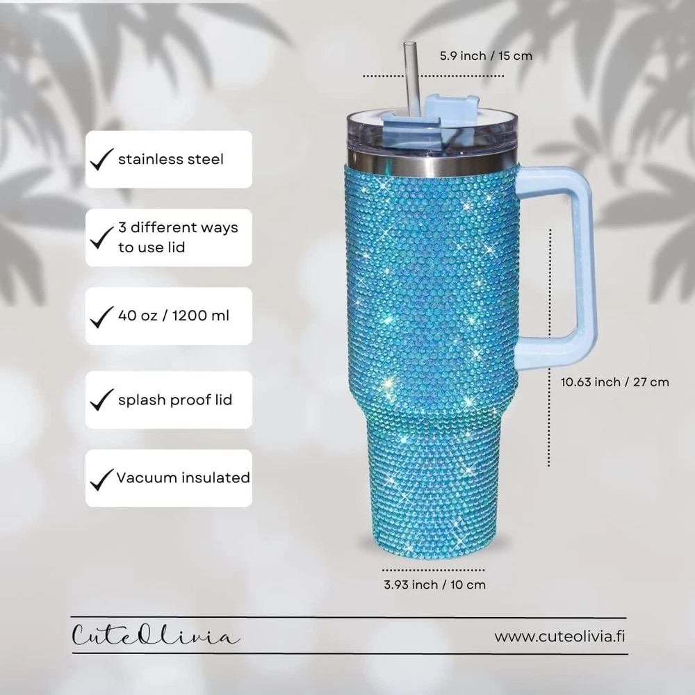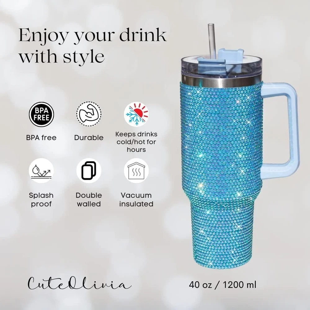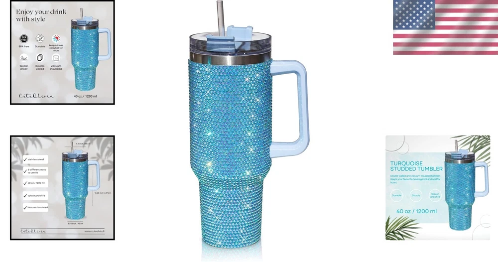 Reusable 40 Oz Stainless Steel Tumbler with Rhinestones - Travel Ready ‹ › ‹ › ‹ › ‹ › ‹ › ‹ › ‹ › ‹ › ‹ › ‹ › ‹ › Reusable 40 Oz Stainless Steel Tumbler with Rhinestones Travel Ready Set includes a luxurious 40oz studded tumbler with a lid and straw, complemented by extra rhinestones. This is not just any water bottle; it’s an eye-catching statement piece for your daily life. Features: Insulated Tumbler: Double wall and vacuum insulated, this tumbler keeps your favorite beverages hot or cold for hours. Say goodbye to stale drinks! Reusable: Reduce waste with our stunning 40oz tumbler, perfect for enjoying coffee from your favorite local café. The tight lid ensures splash-free sipping. Durable: Crafted with exquisite glass rhinestones, each one is meticulously attached using two different types of glue for utmost durability. Ideal for those on-the-go. Perfect Gift: The ultimate gift for women! Whether for birthdays or other special occasions, this stylish tumbler is a hit among teenage girls and women alike. A cute tumbler for women can never go wrong! Why Choose Our 40 Oz Tumbler? Elevate your beverage experience with our stunning Reusable 40 Oz Stainless Steel Tumbler, designed for durability and style. Enjoy the versatility of a tumbler that not only keeps your drinks at the perfect temperature but also dazzles with its rhinestone embellishments. Imagine the compliments you’ll receive! Perfect for daily use or as a thoughtful gift, it's a blend of functionality and glamour. Order yours today and take a sip of luxury wherever you go! Shipping Free & Fast Shipping - We offer free shipping to most of the USA with a normal delivery time of 3-7 days. However, due to the current situation, additional delivery time (up to 3 weeks) may be required for some items. Alternative Carriers - We may use alternative carriers (e.g. USPS, FedEx, UPS, etc.) to ensure your package arrives safely and on time. Due to the use of multiple carriers, we are unable to provide a tracking number automatically. Handling Time - Orders are processed and shipped within 1-2 business days of receiving cleared payment. Shipping Restrictions - Shipping to Alaska, Hawaii, Puerto Rico, Guam, and other US territories may incur shipping charges or delivery restrictions. Please contact us before ordering, or your order can be refunded/cancelled. State Restrictions - There may be restrictions based on your state of purchase. For example, certain items may not be shipped to California due to state regulations. Contact for Tracking Updates - If you require tracking updates or have any concerns about the delivery of your order, please feel free to contact us, and we will be happy to assist you. Return 30-Day Hassle-Free Returns - We want you to be completely satisfied with your purchase. If you are not, you can return the item within 30 days of receiving it for a full refund or exchange. Easy Return Process - To start a return, simply contact us and we will provide you with a prepaid return shipping label and detailed instructions. Restocking Fee - There are no restocking fees for returns. However, the buyer is responsible for return shipping costs if the return is not due to a seller's error. Refund Processing Time - Refunds will be processed within 5 business days of receiving the returned item in its original condition. Payment We accept all major credit cards, PayPal, and Apple Pay for your convenience. Your payment information is secure and encrypted to ensure a safe and seamless transaction. Please complete your payment within 3 days of purchase to avoid any delays in shipping. Feedback Your feedback is extremely important to us. We strive to provide the best products and customer service possible. If you are satisfied with your purchase, please take a moment to leave us a positive review. If you have any concerns or issues with your order, please contact us before leaving negative feedback. We are committed to resolving any problems and ensuring your satisfaction. Contact Us If you have any questions or concerns, please feel free to reach out to our customer support team. You can contact us through the eBay messaging system. We are available Monday to Friday, 9:00 am to 5:00 pm EST, and we will do our best to respond to your inquiry within 24 hours. Buy it now and enjoy a pleasant shopping experience! UPC: Not Set Unit Quantity: 40 Oz Theme: Holiday Material: Stainless Steel,Glitter,Rhinestones Features: Insulated,With Handle,Splash Proof,Reusable Character: Not Set Department: Adults,Women Type: Tumbler Brand: Unbranded Color: Turqoise Character Family: Not Set Beverage Type: Hot or Cold Pattern: Solid Capacity: 40 fl oz Country/Region of Manufacture: Not Set MPN: Not Set Lid Type: Drink Through Number of Items in Set: Five-Piece Keeps Cold For: 12 hrs Keeps Hot For: 12 hrs Item Height: Not Set Item Weight: 1.3 oz Item Width: Not Set Manufacturer Warranty: Not Set Model: Not Set Unit Type: fl oz Care Instructions: Hand Wash Only Personalize: Not Set