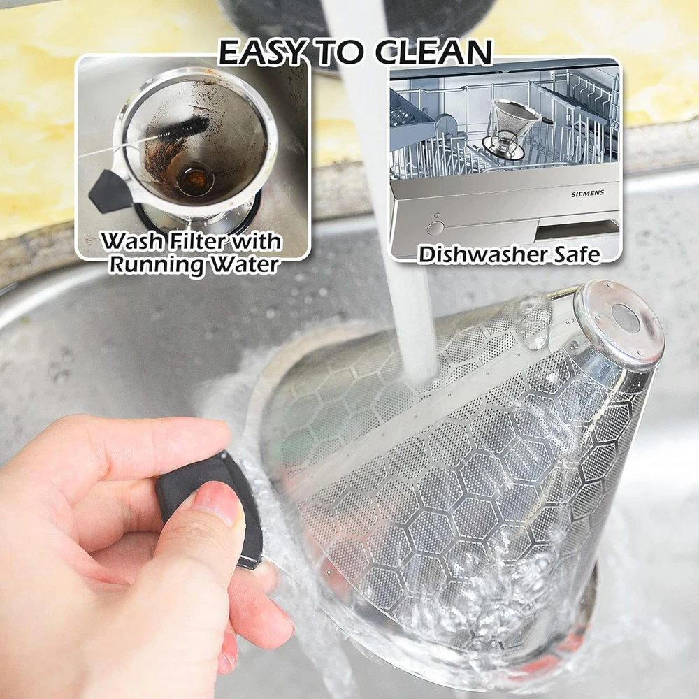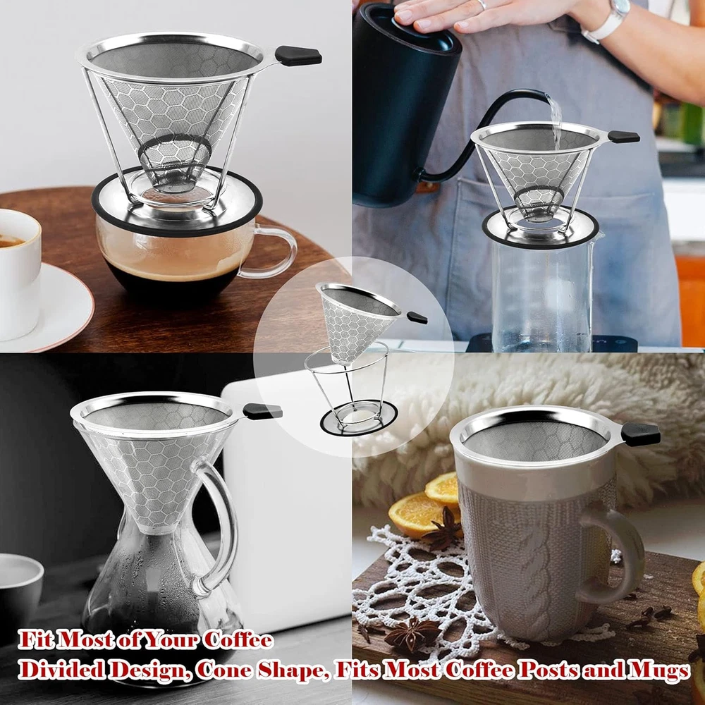 Store New Arrivals Add to Favorite View Feedback Contact Reusable Coffee Filter Professional Manual Stainless Steel Coffee Dripper Cone Coffee Strainer Paperless Coffee Maker for 2-4 People with Removable Cup Stand, Cleaning Brush, Coffee Scoop Description Item model number KD015 Unit Count 1 Count Material Stainless Steel Item Weight 9.2 ounces Shape Cone Number of Pieces 3 Package Dimensions 5.35 x 5.28 x 4.25 inches Size Removable Cup(For 1-3 People) Enhance Your Coffee’s Flavor: Our coffee filters are designed in double layers with high quality food grade 304 stainless steel without using paper filters. Super fine 800 mesh ensure no grounds end up in your cup. Fits Most and Safety Design: Divided design fits on most coffee pots and mugs. Silicone handle to resistance heat. Wide Anti-slip base to keep the filter steady for safety use. Easy to Use: No more paper filters needed. Just add coffee grounds in resuable coffee maker, slowly pour in the hot water, let the coffee drip out the water through the fine pour over filter, and remove the coffee dripper when done. Ready to enjoy your coffee. Easy to Clean: Just rinse the coffee filter with running water as soon as possible after enjoying the coffee. It is dishwasher safe. Take it Anywhere: Compact and lightweight, the coffee dripper works great at home or work or while traveling or camping. One cleaning brush and one 2 in 1 coffee Scoop with clips in this pour over set help you make coffee more convenient. Product Description Start A New Day With Easy Brewing a Coffee Are you tired of waiting in a long queue at the coffee shop for an expensive cup of coffee or worried about mess or filter from collapsing by making coffee yourself. Now, you can brew a cup of coffee in minutes anytime and anywhere by using LIGICKY Stainless Steel Pover Over Coffee Filter Set. Package Includes: 1 x Resuable Coffe Filter with Removable Cup Stand 1 x 2 in 1 Coffee Spoon 1 x Cleaning Brush LIGICKY Reusable Pover Over Coffee Filter Stainless Steel Coffee Dripper Metal Cone with Removable Cup Stand, Cleaning Brush, Coffee Scoop Enhance Your Coffee’s Flavor: Our coffee filters are designed in double layers with high quality food grade 304 stainless steel without using paper filters. Super fine 800 mesh ensure no grounds end up in your cup. Enviroment-Friendly and Budget-Friendly: A Enviroment-Friendly choice that eliminates the need for disposable paper filters that are expensive and wasteful. Tips: We recommend every 2-3 weeks to descale the pour over filter by soaking it in a solution of distilled vinegar and warm water Product Details: High Quality and Double Layers Design Our coffee filters are designed in double layers which is extra fine mesh with high quality food grade 304 stainless steel. Insulated Handle Design Silicone handle to resistance heat. Wide Anti-slip Base Design Wide Anti-slip base to keep the filter steady for safety use. Fit Most Design Divided design fits on most coffee pots and mugs Zero Waste and Reusable The filter is reusable , so it's a good for coffee filter papers, let's saving the trees and the Earth by skipping paper filters that leave waste. Easy to Brew Just heat up the water to your desired temp, add in your coffee grounds to the manual coffee maker and slowly pour in the hot water. Easy to Clean Rinse your tone coffee filter under warm running water. It is also dishwasher safe Travel-friendly Conveniently portable for your coffee needs anywhere, anytime! ABOUT US We offer the best prices around on high quality products. Our E-store includes media such as books, movies, music and games while offering electronics, toys, sporting apparel, clothing, tools, general home, garden items and more. SHIPPING We are always working hard to ensure your package arrives as soon as possible. Please understand that some factors like weather, high postal traffic, and the performance of shipping companies are outside of our control. We offer free shipping to the lower 48 states and ship within 2 business days of payment, usually sooner. We do not accept P.O. Boxes. Please provide a physical address. For shipping outside of the continental USA, we only use eBay's Global Shipping Program.The item is shipped to KY and then sent to the rest of the world. International customers are responsible for all duties and taxes. Continue to check out in order to calculate costs for shipping the item to your country. Messages regarding eBay's Global Shipping Program MUST be directed at eBay EXCLUSIVELY. RETURNS We offer a 30-Day Return Policy on items which you are not completely satisfied with. You have the option for a full-refund or an exchange of the item. No returns are available on items shipped outside of the USA. PAYMENT We accept PayPal. CONTACT US This page content is yet to come Please ad us to your favorite seller and visit again later Thank You CUSTOMER SATISFACTION We try our very best to make sure every customer is completely satisfied. If there's a problem, message us! We're happy to help. WE ACCEPT Copyright © 2021 AutoDS. | All Rights Reserved