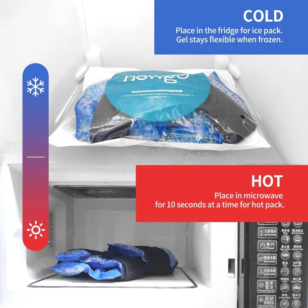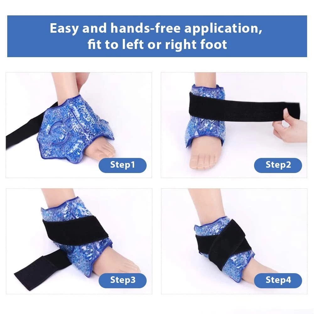 ’s reusable gel ankle ice packs provide hot & cold therapy for targeted pain relief, swelling reduction, and faster recovery. Designed for ankle sprains, plantar fasciitis, tendonitis, and post-injury rehab, these wraps combine medical-grade PVC + fabric backing for durable, comfortable support. Fast & Effective Relief - Quickly reduces pain from ankle sprains, swelling, bruises, plantar fasciitis, and tendonitis Innovative Dual-Sided Cold Therapy Technology - Our medical-grade ankle wraps feature two specialized surfaces for customized pain relief, the ultra-soft fleece backing prevents frostbite, delivers gradual, soothing cooling, perfect for sensitive skin or extended use. The PVC side provides deep-penetrating cold therapy. Stay-Flexible Technology - Remains soft when frozen to perfectly conform to your body's contours Versatile Multi-Use Design - Fits ankles, wrists, calves and other joints (1 pack for treatment, 1 for backup) Hot Cold Therapy - Cold therapy by placing the gel pack in the freezer at least 2 hours or until desired temperature is achieved. For hot therapy, heat the pack in microwave in 10-15 seconds for heat therapy.