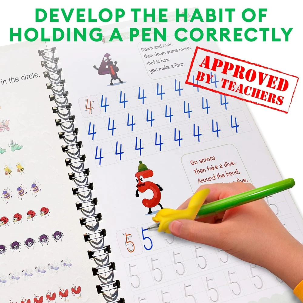 Reusable Grooved Handwriting Workbook, Magic Practice Copybook, Reusable Handwriting Practice Book for Kids Learn How to Write for Toddlers Age 5-7 Calligraphy for Preschool(4 Books with Pens) Magic Practice Copybooks are much larger than other copybooks on the market.The package includes 4 magic practice copybooks for Kids (Puzzle Games,Numbers , Alphabet, Drawing) + 2 Pens + 2 Pen Holding Aids + 10 refills The Magic Practice Copybooks has three-dimensional groove design- helps children understand the tactics of writing and improve their handwriting skills every time.The magic calligraphy paper is thick, strong, and durable, not easy to smudge and not easy to stain; the pen holder is made of silicone, which is 100% safe for children; the print is clear and clean; it is really comfortable and great for Calligraphic Letter Writing. The Reusable writing board tracing books for preschoolers and kindergarten: The set includes two bright pens and 10 refills with disappearing ink, the ink disappears after 20 minutes of writing, children love the magic and the opportunity to practice again and again. Perfect for handwriting practice! Pen Holding Aids can corrects writing skills and writing postures for children between 3 and 7 years of age, Our pen holding aids for toddlers made from silicone material which reduces hand and finger tiredness. Magic reusable calligraphy copybook set for kids is suitable for children aged 3-7 years. Printed on high quality interior stock. Cute and fun tutorials with easy to follow instructions. 7.8x5.11- the perfect size. Great for beginners or those looking to polish up their handwriting skills. Perfect Gift. Product Description Magic Reusable workbooks for Kids Reusable Writing Practice Book for Kids Best for preschoolers Magic Practice Copybook for Kids Age 3-8 The ink and paper are made with unique material, so the handwriting automatically fades out in 30 minutes after writing and the magic practice copybook for kids can be used repeatedly and like new. This is an effective way of early education Each preschool children's copybooks page contains attractive, effective, and practical exercises so that kids can get valuable eye-hand coordination and handwriting skills. Quality in every detail The small size our groove calligraphy copy book is specially designed for kids. The paper is thick, not easy to smudge, and not easy to stain. The pen holder is made of silicone, which is 100% safe for kids. Correct the Method of Holding Pen The magic tracing books have three-dimensional groove template design, convenient for kids to master writing. The kid will use this pen to follow paths and draw different shapes. Writing Instrument Form Ballpoint Pen Color Multicolor Product Dimensions 7.8 x 5.11 x 1.1 inches; 9.14 ounces Ink Color Multicolor Age Range (Description) 3-7 years old Department Unisex Child Size medium Shipping Fast shipping is very important for us. Our standard US shipping service is FREE. Your order will be shipped within 2-3 business days upon full payment received. Your order will be delivered within 2-3 business days after the handling time. We only ship to the confirmed PayPal address. We reserve the right to cancel any order for any reason at any time. We are not responsible for undeliverable addresses. Returns and payment We offer a 30 days return policy from checkout winning date. We allow only PayPal as payment method FeedBack Your feedback very important to us, after you get your package and you are satisfied with our service please leave us positive feedback If you have any problem with your order / any questions please before leave any type of feedback For any questions, using eBay contact system Please visit our eBay store to check out other items for sale! Thank you for shopping at our store.