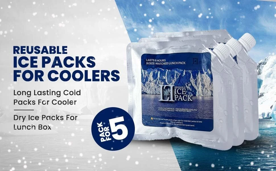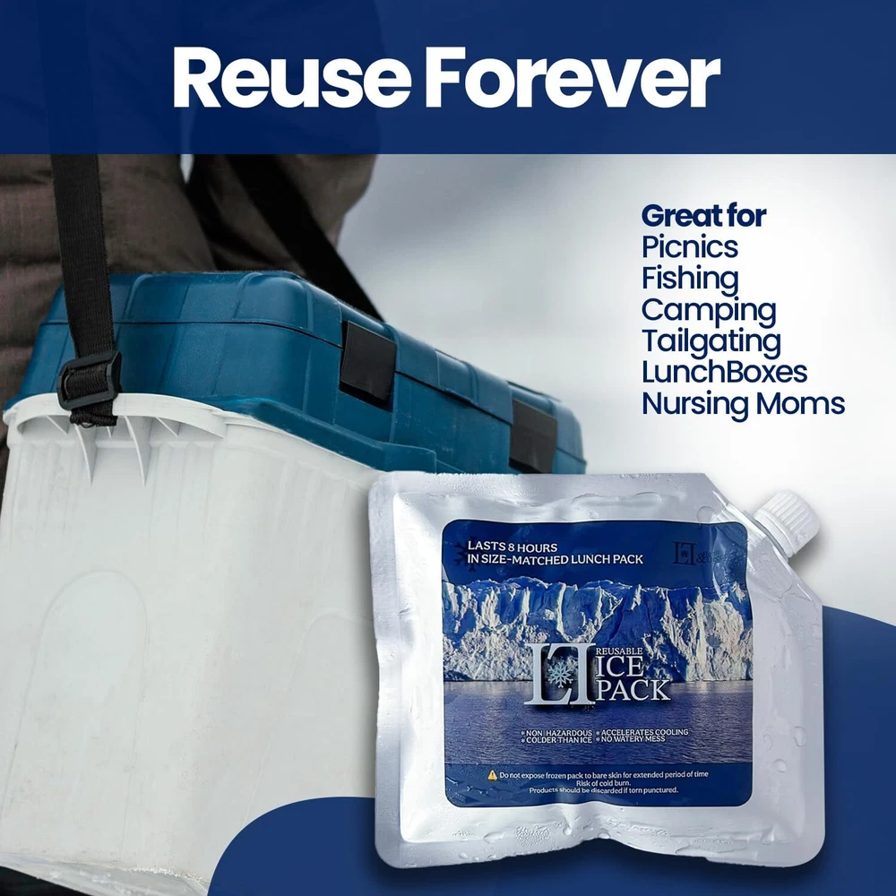 π° LEAK-RESISTANT CONSTRUCTION: Our ice packs for coolers are made from robust, 100% BPA-FREE, non-toxic materials, often the multiple layers or reinforced seams to prevent leaks and maintain the integrity of the cooling gel. This durability allows for repeated use of ice π° LONG-LASTING COOLING: The ice packs for cooler are designed for extended cooling, offering an efficient and cost-effective alternative to traditional ice. Filled with a specialized gel or liquid, they maintain low temperatures for hours, ensuring your items stay chilled during outdoor activities or emergencies. π° COMPACT AND SPACE-SAVING: Our refillable ice packs come in two (9.75 x 9.75 x 1 inches) & (6.7 x 7.9 inches). They are lightweight, making them easy to store in your freezer and pack alongside your food or items in your cooler. Their slim profile maximizes space for your essentials while still delivering effective cooling. π° EASY MAINTENANCE AND REUSABILITY: The cooler shock is simple to maintain. After use, you can wash them with mild soap and water, then return them to your freezer for the next cooling cycle. The reusability of these packs makes them a cost-effective choice in the long run, saving you money on single-use ice bags. π° MULTI-PURPOSE APPLICATIONS: Beyond coolers, freezer packs for coolers find applications in various scenarios. They can be used for first aid purposes to reduce swelling or relieve pain in injuries. They're also valuable in lunchboxes, medical transport, or even as a quick relief for minor burns or headaches, showcasing their versatility.