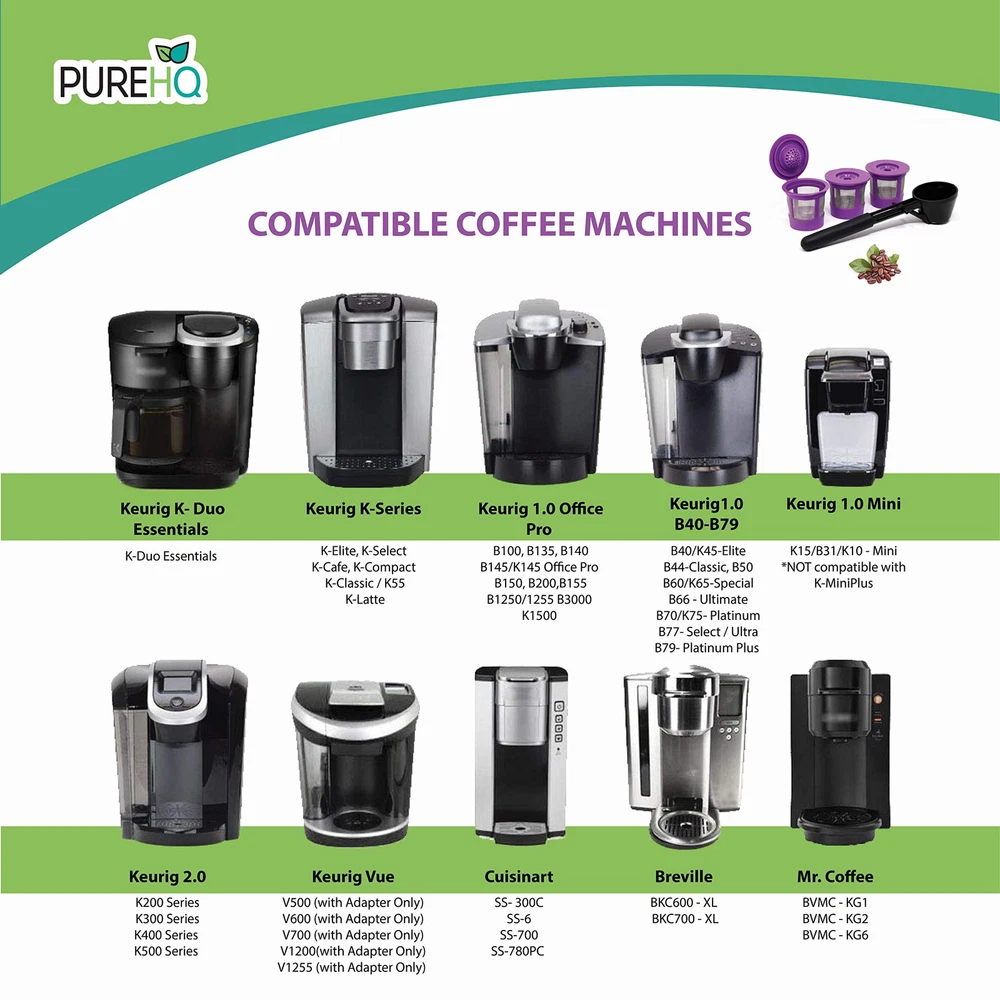 UNIVERSAL FIT - Works in most Keurig Coffee Makers Machines such as Keurig 1.0, Keurig 2.0 Single Serve Coffee Maker, K-Duo Essentials, K-Classic, K-Elite, K-Select, K-Cafe, K-Express, (K-Slim + ICED model Only) and much more. NOTE: NOT Compatible with 5 Needle Multistream Technology PREMIUM REUSABLE KCUPS - Built for durability, the reusable K Cups specially crafted with mesh stainless steel design to prevent clogs, leaks and at the same time maximize water dispersion. The refillable K-cups by will save you over 80% instead of buying many disposable Kuerig Kcup coffee pods. INCLUDES 1 Coffee Scoop Funnel to quickly fill your refillable Kcups with up to 2 tablespoons of ground coffee or tea - Exact and perfect portion needed for your K-cup pods - Easy to use Coffee Scooper - Just scoop, slide and pour with absolutely NO MESS! ECO-FRIENDLY AND BPA FREE - Made from best and safest material on the market - 100% BPA FREE - Stay healthy and enjoy K-Cup coffee pod with cleaner environment by . WE ARE HERE TO HELP - If for ANY reason you are not satisfied with your K Cup refillable, just us and we will make sure to make it right.