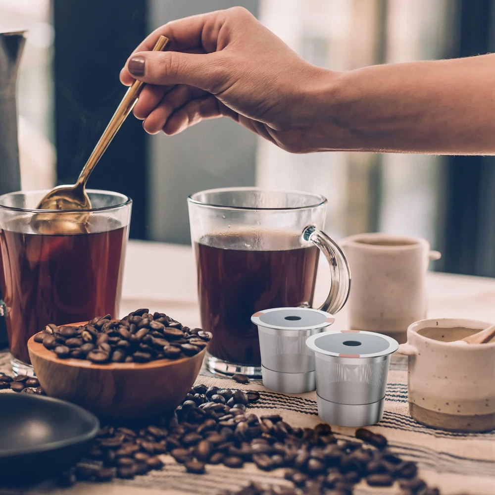 Keurig 1.0 & 2.0 : K200, K250, K300, K350, K360, K400, K450, K460, K500, K550, K560, K15, K31, K40, K44, K45, K50, K60, K66, K70, K77, K80, K100, B31, B40, B44, B50, B60, B66, B70, B77, B100, B140, B200, Keurig Elite, Keurig Select, , Keurig Ultimate, and The Keurig Platinum. Breville K CUP, Mr. Coffee K CUP, Simply fill with your favorite coffee or tea and brew.Rinse with water when finished Reusable k cup pod coffee filters Designed for budget-conscious coffee drinkers, by reusing reusable k cup filters save as much as 80% than -bought coffee pods and enjoying your favorite Coffee Refillable cups made of stainless steel and contains Non-BPA to reduce the damage to the body (plastic components decompose and absorb into the body after repeated heating is harmful to the body) Over 10+ billion one-time use coffee pods are left in the landfills every year, helping to reduce the costly environmental waste caused by single-use, pre-filled and non-recyclable plastic coffee pods Our Keurig reusable k Cup filters are made up of superior quality stainless steel micro-mesh which is engineered to ensure an optimum flow rate of water through the coffee – this helps extract maximum flavours from your coffee. Moreover, the food-grade stainless steel is non-reactive and doesn’t alter the taste or aroma of your expensive coffee in any way Reusable K CUP are very easy to use, just fill the coffee grounds you need into the reusable K CUP, after using, just dump the grounds into the trash and wash the reusable K CUP filter by water. Also these refillable single K CUP are safe for dishwasher