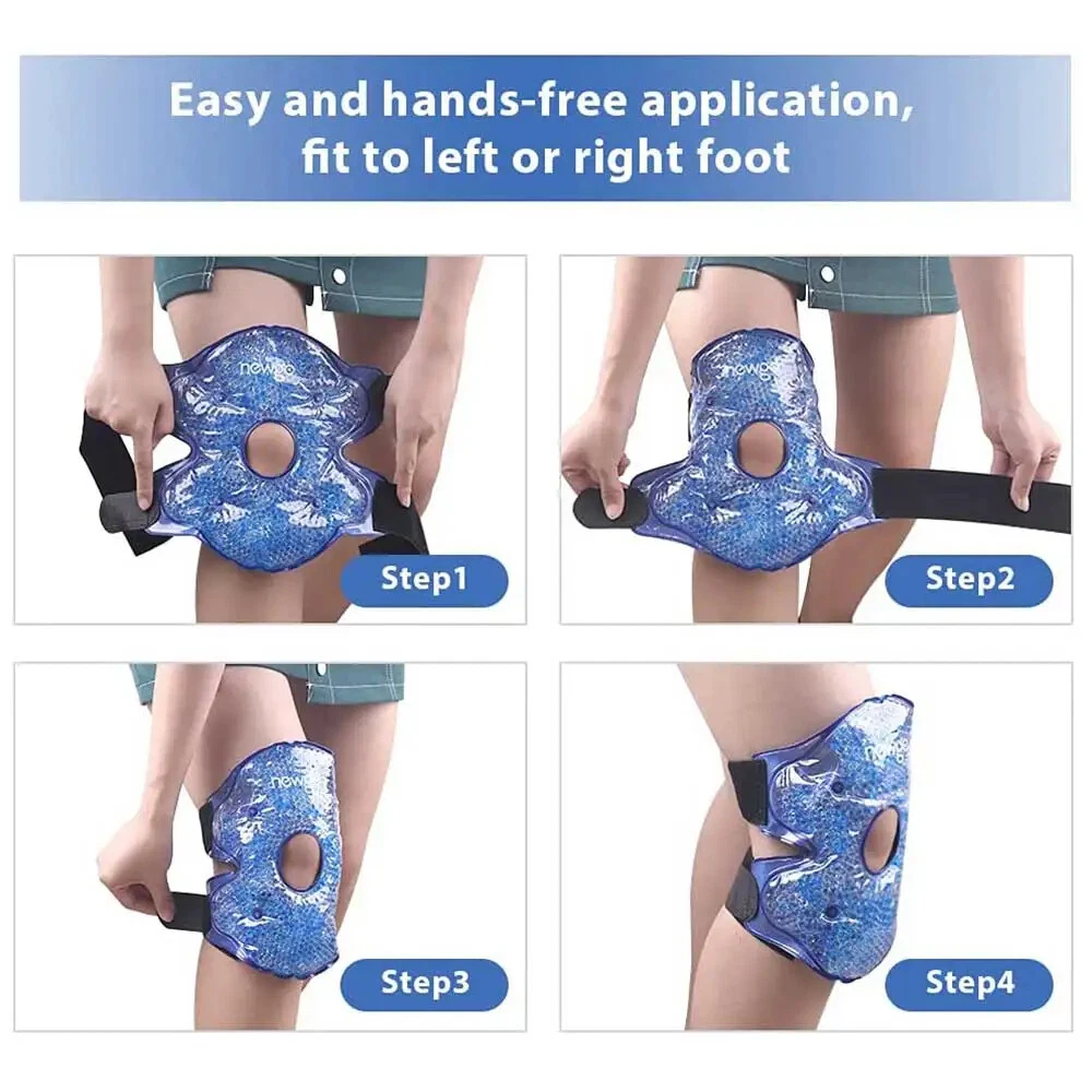 Pro Design for Knee - Contains 2 knee ice packs. Reusable knee cold pack wraps are integrated medical grade premium PVC with soft fabric backing. Perfect shape to ensure proper coverage and application of ice or heat. Adjustable strap provides size adjustment and allows for the adjustment of compression to suit your individual needs. The knee ice wrap remains flexible when frozen and stay cold for doctor recommended therapy time of 20 minutes. Fast Pain Relief - This knee cold pack is specially designed for knees and elbows and brings natural pain relief to knee sports injuries, knee soreness, sprains, strains, sprains and strains, and help to speed recovery from sports injuries, knee surgery. Hot Cold Therapy - For hot therapy, heat the pack in microwave in 10-15 seconds intervals, reducing pain and increasing circulation to promote rapid healing. For cold therapy, place the gel pack in the freezer at least 2 hours or until desired temperature is achieved. Good for muscle aches, sprains, swelling, bruises and joint pain. Soothing Relief - Whether you prefer to freeze pain away or soothe it with the help of warm therapy, this reusable knee ice wrap is the perfect choice for you! Get ready to relieve knee and joint pain and feel ready to seize the day with this high quality gel pack that delivers up to 30 minutes of soothing relief for your knees and elbows. Provides natural pain relief to knee injuries, and help to speed up recovery Whether you prefer to freeze pain away or soothe it with the help of warm therapy, this reusable knee ice wrap is the perfect choice for you! Get ready to relieve knee and joint pain and feel ready to seize the day with this high quality gel pack that delivers up to 30 minutes of soothing relief.