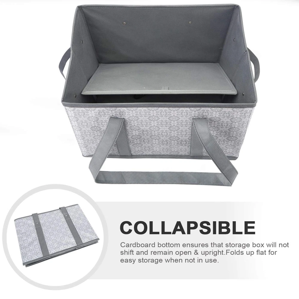 [Multi-Purpose] To organize books/CDs or to carry and organize laundry,cleaning supplies,art supplies. Also works as a reusable grocery bags to hold groceries in the car and hold picnics and snacks for the beach or camping. [COLLAPSIBLE] Folds up flat for easy storage when not in use. Cardboard bottom ensures that storage box will not shift when in use and will remain open and upright in car. [RIGID STRUCTURE] The eco reusable grocery box is made of heavy-duty non-woven floral fabric (with water resistant coating) reinforced and stiffened with long lasting recycled cardboard insert on each side offering a rigid structure when opened. [EASY TO CARRY] The shopping box bags have short side handles in addition to the shoulder straps making it easier to carry a heavy load. The shoulder strap are sewn down the side of the bag and secured with metal rivets for added strength. [REUSABLE] One reusable shopping bag is equivalent to 1000+ times of using plastic disposal bags. A great alternative to single-use plastic bags, to keep folded shopping bags in your handbag and car for emergencies or outdoor activities.
