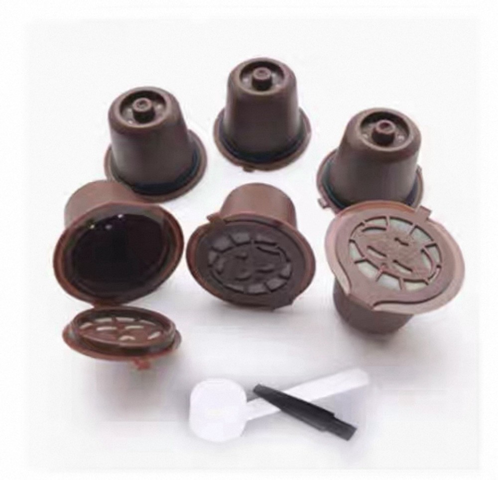 The product is a 6 pack of reusable Nespresso capsules specifically designed for the Original Line machines. These refillable pods are compatible with Nespresso machines and offer a convenient way to enjoy your favorite coffee without the waste of disposable capsules. Made by Nespresso, a trusted brand known for high-quality coffee products, these capsules are a sustainable and practical choice for coffee lovers looking to reduce their environmental impact. Perfect for those who appreciate a convenient and eco-friendly coffee brewing solution.