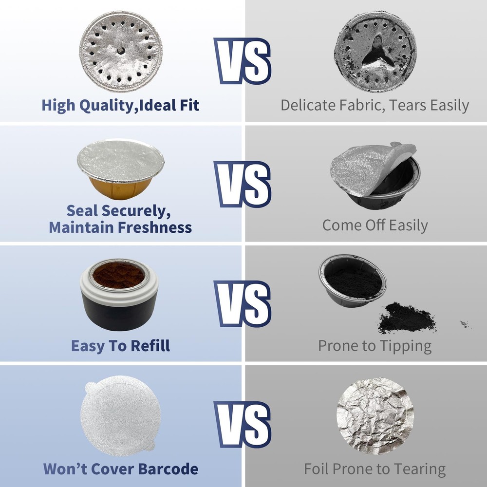 Reusable Pods Kit for Nespresso 1 Holder + 100 Lids + 1 Scoop, Black Description Features: Save money and Reduce Waste: With our Reusable Pods Kit, there's no longer any need for wasted foil tops or grounds scattered everywhere. It's a fantastic solution for saving money and cutting down on both paper and coffee waste Designed for Nespresso Vertuo Capsules: Our coffee pod covers foil lids kit is specifically designed for Nespresso Vertuo Capsules, accommodating cup sizes of 1.35oz, 2.7oz, 5.07oz, and 7.77oz. Please note that it is not compatible with Nespresso OriginalLine Capsules. Comprehensive Kit: Our reusable coffee capsule kit for nespresso comes complete with a capsule base, 100 aluminum foil seals, a cleaning brush, and a scoop (pods not included). With this kit, you can effortlessly craft high-quality, reusable coffee pods using your favorite coffee. Easy to Use: Refilling your coffee pods with our reusable pods kit is quick. simply place the emppodsty capsule into the base, add your preferred coffee, and use the foils to align along the edge of the capsule. then, press the top cover of the base to create a new capsule. Flawless Sealing for Your Nespresso Vertuo Pods: Our reusable pods for nespresso ensures a perfect seal every time, preventing any messy spills caused by unsealing capsules. Product Details: Handling We will ship all orders within 1 business day of payment. Delivery We Do Not Ship Outside of the Continental US. Return Policy All items qualify for returns within 30 days of receipt. Buyer is responsible for return shipping on any item that is not damaged. Feedback We take our reputation seriously, we buy and sell online, so we understand the value of trust. If you are unsatisfied with your order, please contact us and we will work with you to resolve it to your satisfaction.