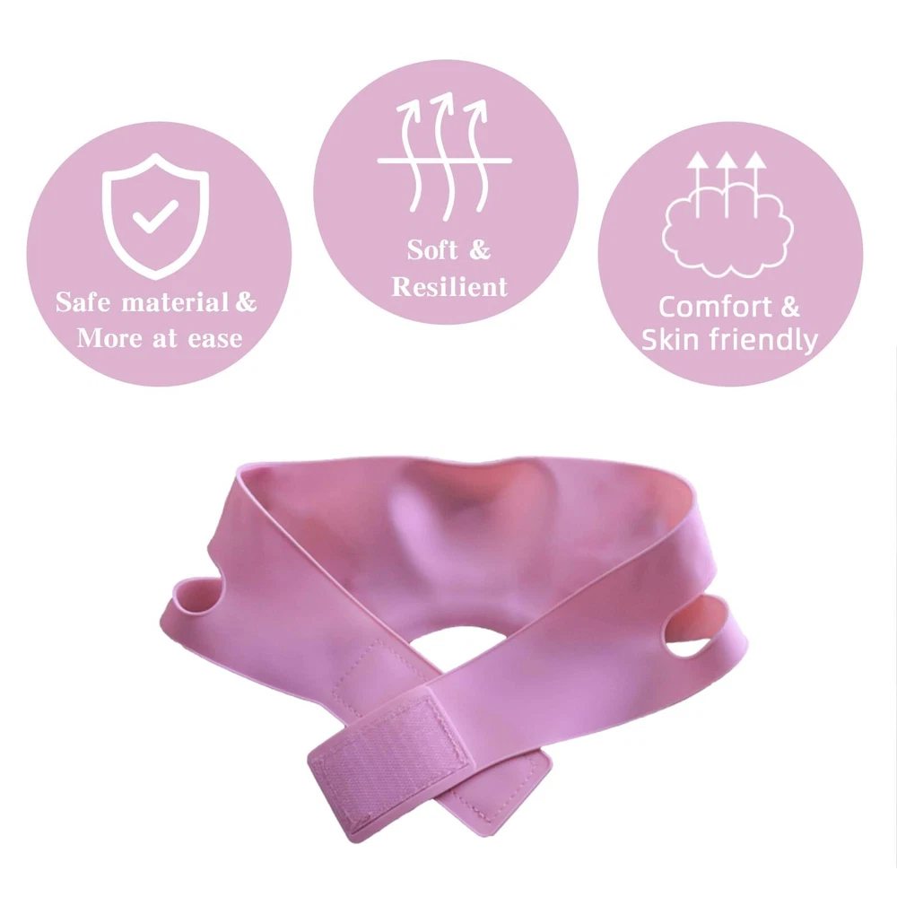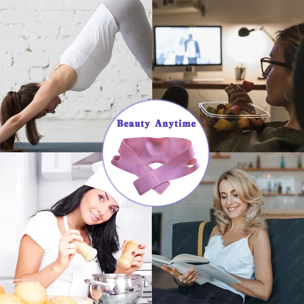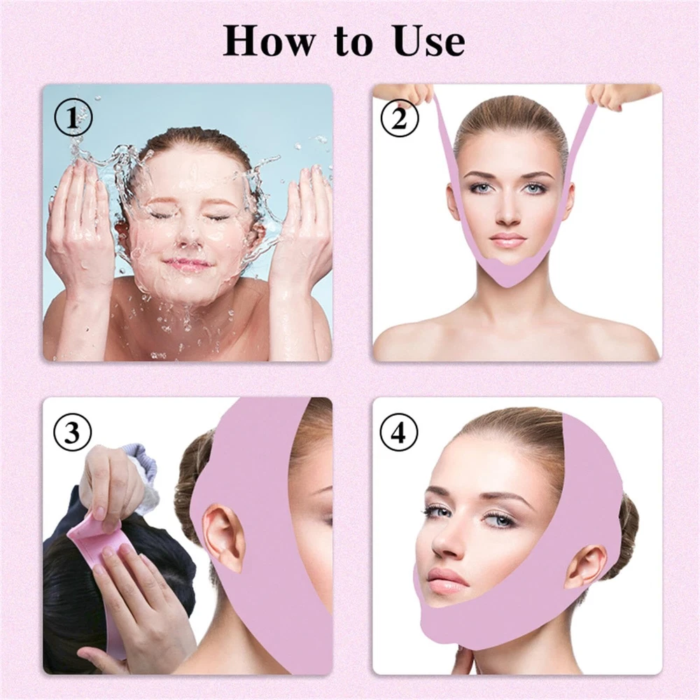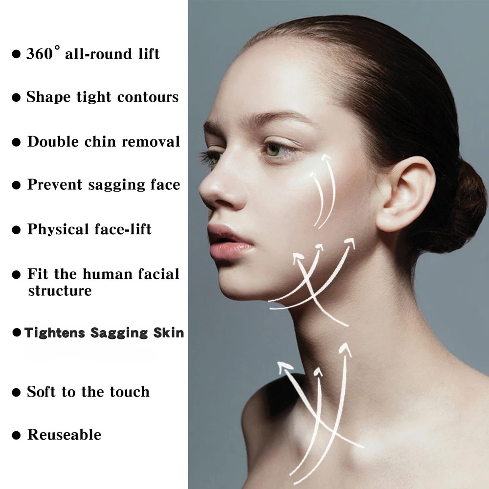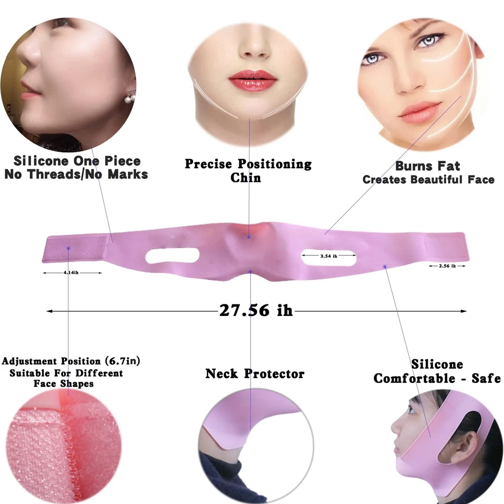 【V line Double Chin Reducer】V-line silicone double chin strap utilizes physical forces to slow down sagging and puffy skin, leaving you looking younger and confidence 【Silicone Double Chin Strap】Suitable for all skins, made of high-quality food- grade silicone, long-lasting high elasticity, balanced pressure, can fit your face perfectly 【Beauty anytime, anywhere】You can wear the silicone Chin Strap when reading, yoga, watching TV, without wasting your extra time 【Suitable for all face shapes】Designed with precise positioning of the chin,3D design is suitable for various face shapes, the ear side design liberates your ears without pressure, and the high-adhesion Velcro can be adjusted to the comfort you want 【persevere - become beautiful】Insist on using the V line lifting masks, We recommend using silicone bandage for four weeks and use this silicone double chin strap for 20-60 minutes every day 【Note】Made of high-temperature molecular silicone one-piece molding, so there will be a slight heat after wearing, will increase the metabolism, there are ulcers/allergy is not recommended to wear the case, remove the chin strap to pay attention to the Velcro do not stick to the hair 【Move In Comfort】Chin strap length 27.5 inches (fits head sizes 21.5-26.5 inches), 3D design for precise chin positioning