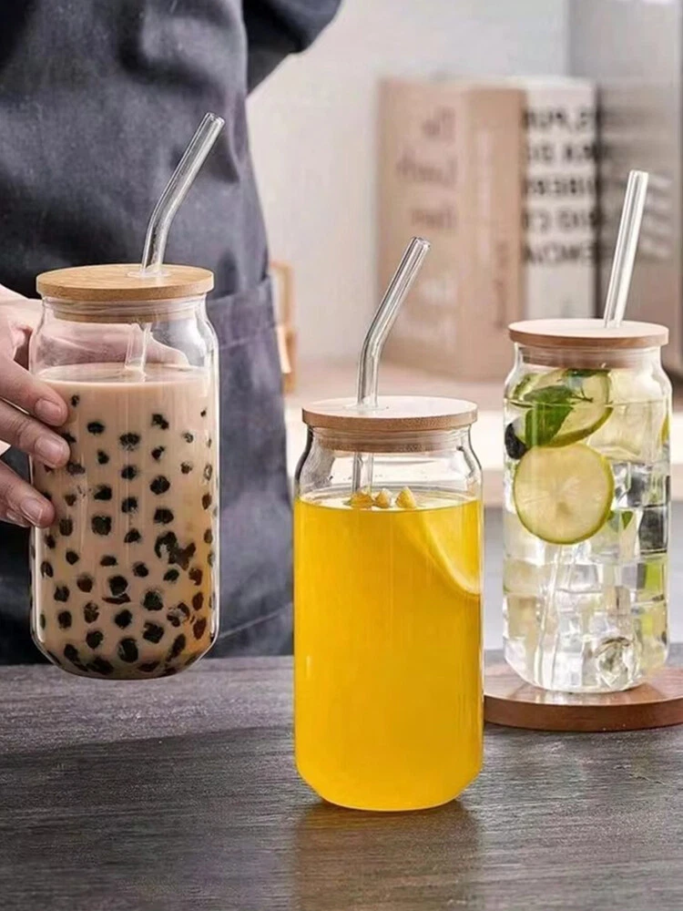 This reusable bubble tea cup is a game-changer! The borosilicate glass feels sturdy yet lightweight, and the bamboo lid adds a stylish touch. Love the two lid options—perfect for sealing drinks on the go or sipping through the straw. The wide mouth fits ice cubes easily and makes cleaning a breeze. Great for boba, smoothies, or coffee, and the 550ml size is ideal for staying hydrated all day. The built-in seal keeps drinks fresh, and the design is so cute—definitely a must-have for eco-friendly sipping!
