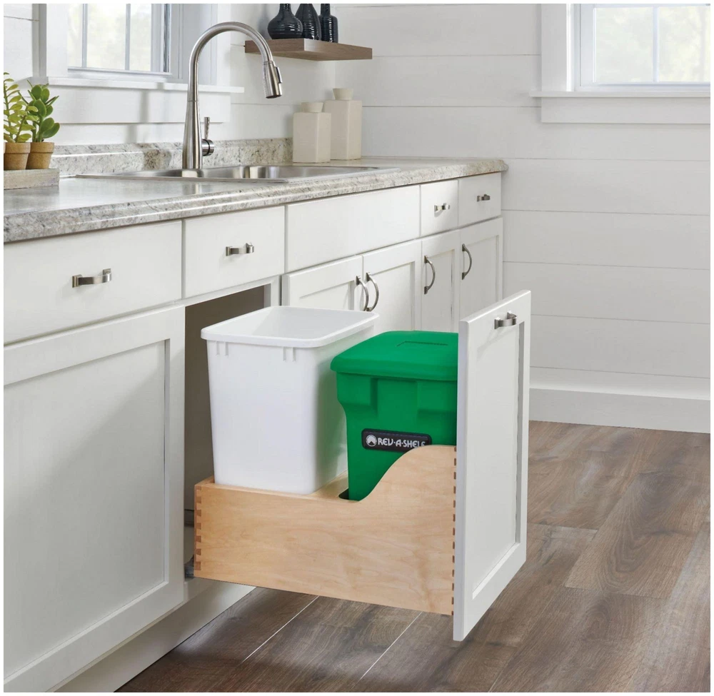 Powered by Frooition All Categories Rev-A-Shelf 4WCSC-1835CK-2 Wood Classics 15"W Pull Out 35 Qt / 8.75 Gallon Trash Can and Compost Container System with Soft Close Overview Item Description Nothing beats the look and warmth of natural wood. Rev-A-Shelf’s 4WCSC composting series is one of the best-selling pull out trash containers, and with its added compost capability, you will surely enjoy this option. With its maple construction and Blum drawer slides, it’s no wonder why it is an industry favorite. Available in multiple widths, heights, and polymer bin capacities, you will have no problem finding the right size to fit your cabinet or application. Features: Undermount soft close full extension concealed slide system Solid dovetail drawer construction for durability Waste container bins included Compost container comes with 2 rolls of compost bags Compost bags and filter available Slides are concealed to keep dirt and debris away Designed for cabinet opening width of 15" to 18" Adjustable door mount brackets are included and required for operation Fully assembled maple wood construction for durability 135 lb full-extension BLUMOTION slides with soft-close Covered by Rev-A-Shelf's limited lifetime warranty Specifications: Depth: 22" Height: 20-3/8" Width: 15" Minimum Opening Width: 15" Minimum Opening Height: 19-1/2" Includes: One (1) 35 quart waste container One (1) compost bin One (1) wood frame One (1) pair of slides Two (2) carbon filters Two (2) rolls of composting bags Mounting hardware Why Choose BuildInc? OUR PROMISE TO YOU About Us At Build, we promise to provide the best selection we can, most competitive pricing, and unmatched customer service. Our store has quality home improvement products from trusted manufacturers like Moen, American Standard, Delta, Kraus, Kichler, Progress Lighting, Schlage, Kwikset, Baldwin, Broan, NuTone, Air King, and Rev-A-Shelf. With over 200,000 home improvement products for you to choose from, we have just what you need to get your project done. Fast & Free Shipping We promise to make it our priority to get you your items as fast as we can. We ship from 440 warehouses around the country, ensuring that your product will get to you as soon as possible. We know you're eager to get your hands on your new purchase, we would be too. As a bonus, most items ship for free. Returns We are happy to accept returns of unused or defective items for a refund within 30 days from the date of delivery. For returns outside 30 days, please contact our Customer Service team to go over our options. For full details, please view the Shipping and Payments tab above. To initiate a return simply go to the eBay Returns Portal and submit a return request. We ask that all items be returned with all original components via a traceable method. Once your return is received and processed, we will quickly get your refund or replacement issued. If for any reason you are unsatisfied with your purchase or for product or warranty questions, please contact Customer Service team for assistance. More Items! View more great items! About Us | Shipping | Returns | Contact Us | FAQ | Collections | Special Offers! Powered by Frooition Frooition Frooition | No-js Template | eBay design, eBay store design, eBay shop design, eBay template design, eBay listing design (ver:froo_no_js) This listing is currently undergoing maintenance, we apologize for any inconvenience caused.