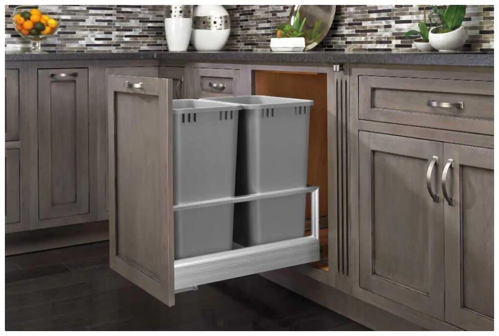 Powered by Frooition All Categories Rev-A-Shelf 5149-2150DM-2 Contemporary 15-1/2"W Aluminum Double 50 Qt / 12.5 Gallon Pull Out Cabinet Trash Can System with Soft Open and Close for Full Height Cabinet Overview Item Description Looking for a sturdy and attractive pull out waste container that is perfect for any kitchen? Look no further than this American made product. This fully assembled aluminum construction frame will not only close softly, but it will also assist you when opening your unit with its patented slide and dampener system. All of the 5149 series also include a four-way adjustable door mount bracket that will finish off your installation by attaching to your own cabinet door for easy operation. Features: 3-piece zinc plated heavy duty full extension ball-bearing slide system Rev-A-Motion provides a soft-open/soft-close feature Once installed, unit can be removed for easy cleaning This requires a full-height cabinet (no drawer above door) Designed for cabinet opening width of 15-3/4" to 18" Adjustable door mount brackets are included and required for operation Optional Rev-A-Shelf lids available, sold separately Heavy-duty and durable aluminum construction Mounts to cabinet floor and cabinet door attaches to unit 150 lb full-extension ball-bearing slides with soft close Covered by Rev-A-Shelf's limited lifetime warranty (2) 50qt bins included Specifications: Depth: 22" Height: 23-1/2" Width: 15-9/16" Minimum Opening Width: 15-3/4" Minimum Opening Height: 23-1/2" Includes: Two (2) 50 quart / 12.5 gallon waste containers One (1) metal frame One (1) pair of slides Door mount brackets Mounting hardware Pull Out Trash Cans, Pull Out Waste Bins, Hidden Trash Cans, Cabinet Trash Cans, Rev A Shelf Trash, Pull Out Garbage, Pull Out Trashcan Why Choose BuildInc? OUR PROMISE TO YOU About Us At Build, we promise to provide the best selection we can, most competitive pricing, and unmatched customer service. Our store has quality home improvement products from trusted manufacturers like Moen, American Standard, Delta, Kraus, Kichler, Progress Lighting, Schlage, Kwikset, Baldwin, Broan, NuTone, Air King, and Rev-A-Shelf. With over 200,000 home improvement products for you to choose from, we have just what you need to get your project done. Fast & Free Shipping We promise to make it our priority to get you your items as fast as we can. We ship from 440 warehouses around the country, ensuring that your product will get to you as soon as possible. We know you're eager to get your hands on your new purchase, we would be too. As a bonus, most items ship for free. Returns We are happy to accept returns of unused or defective items for a refund within 30 days from the date of delivery. For returns outside 30 days, please contact our Customer Service team to go over our options. For full details, please view the Shipping and Payments tab above. To initiate a return simply go to the eBay Returns Portal and submit a return request. We ask that all items be returned with all original components via a traceable method. Once your return is received and processed, we will quickly get your refund or replacement issued. If for any reason you are unsatisfied with your purchase or for product or warranty questions, please contact Customer Service team for assistance. More Items! View more great items! About Us | Shipping | Returns | Contact Us | FAQ | Collections | Special Offers! Powered by Frooition Frooition Frooition | No-js Template | eBay design, eBay store design, eBay shop design, eBay template design, eBay listing design (ver:froo_no_js) This listing is currently undergoing maintenance, we apologize for any inconvenience caused.