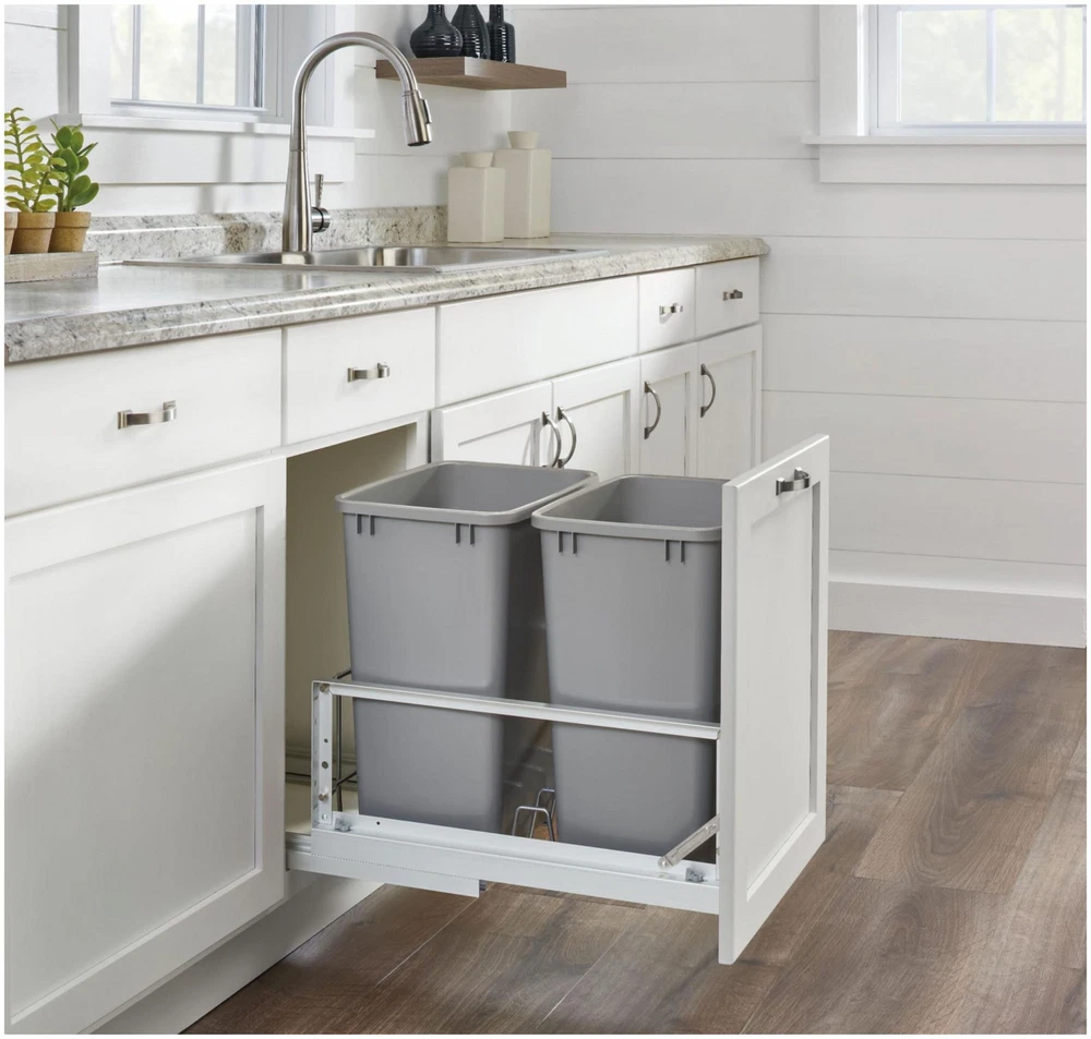 Powered by Frooition All Categories Rev-A-Shelf 5349-18DM-2 Contemporary 14-3/4"W Aluminum Double 35 Qt / 8.75 Gallon Pull Out Trash Can Waste System with Soft Close Slides Overview Item Description Italian influenced and crafted with a sturdy aluminum frame, Rev-A-Shelf's 5349 series offers the utmost luxury and function with its full extension soft-close slides. The polymer bins are perfect for small and large families and are easily removable for cleaning. Finish your installation by attaching your own cabinet door with the provided hardware. Features: Undermount soft close full extension concealed slide system Fully Assembled and ready for installation Waste container bins included Once installed, unit can be removed for easy cleaning Designed for cabinet opening width of 15" to 17" Optional door mount extenders for wider door are sold separately Optional Rev-A-Shelf lids available, sold separately Heavy-duty aluminum construction Mounts to cabinet floor and cabinet door attaches to unit 90 lb full-extension undermount slides with soft close Covered by Rev-A-Shelf's limited lifetime warranty Specifications: Depth: 22-1/16" Height: 19" Width: 14-3/4" Minimum Opening Width: 15" Minimum Opening Height: 19-1/4" Includes: Two (2) 35 quart / 8.75 gallon waste containers One (1) metal frame One (1) pair of slides Mounting hardware Pull Out Trash Cans, Pull Out Waste Bins, Hidden Trash Cans, Cabinet Trash Cans, Rev A Shelf Trash, Pull Out Garbage, Pull Out Trashcan Why Choose BuildInc? OUR PROMISE TO YOU About Us At Build, we promise to provide the best selection we can, most competitive pricing, and unmatched customer service. Our store has quality home improvement products from trusted manufacturers like Moen, American Standard, Delta, Kraus, Kichler, Progress Lighting, Schlage, Kwikset, Baldwin, Broan, NuTone, Air King, and Rev-A-Shelf. With over 200,000 home improvement products for you to choose from, we have just what you need to get your project done. Fast & Free Shipping We promise to make it our priority to get you your items as fast as we can. We ship from 440 warehouses around the country, ensuring that your product will get to you as soon as possible. We know you're eager to get your hands on your new purchase, we would be too. As a bonus, most items ship for free. Returns We are happy to accept returns of unused or defective items for a refund within 30 days from the date of delivery. For returns outside 30 days, please contact our Customer Service team to go over our options. For full details, please view the Shipping and Payments tab above. To initiate a return simply go to the eBay Returns Portal and submit a return request. We ask that all items be returned with all original components via a traceable method. Once your return is received and processed, we will quickly get your refund or replacement issued. If for any reason you are unsatisfied with your purchase or for product or warranty questions, please contact Customer Service team for assistance. More Items! View more great items! About Us | Shipping | Returns | Contact Us | FAQ | Collections | Special Offers! Powered by Frooition Frooition Frooition | No-js Template | eBay design, eBay store design, eBay shop design, eBay template design, eBay listing design (ver:froo_no_js) This listing is currently undergoing maintenance, we apologize for any inconvenience caused.