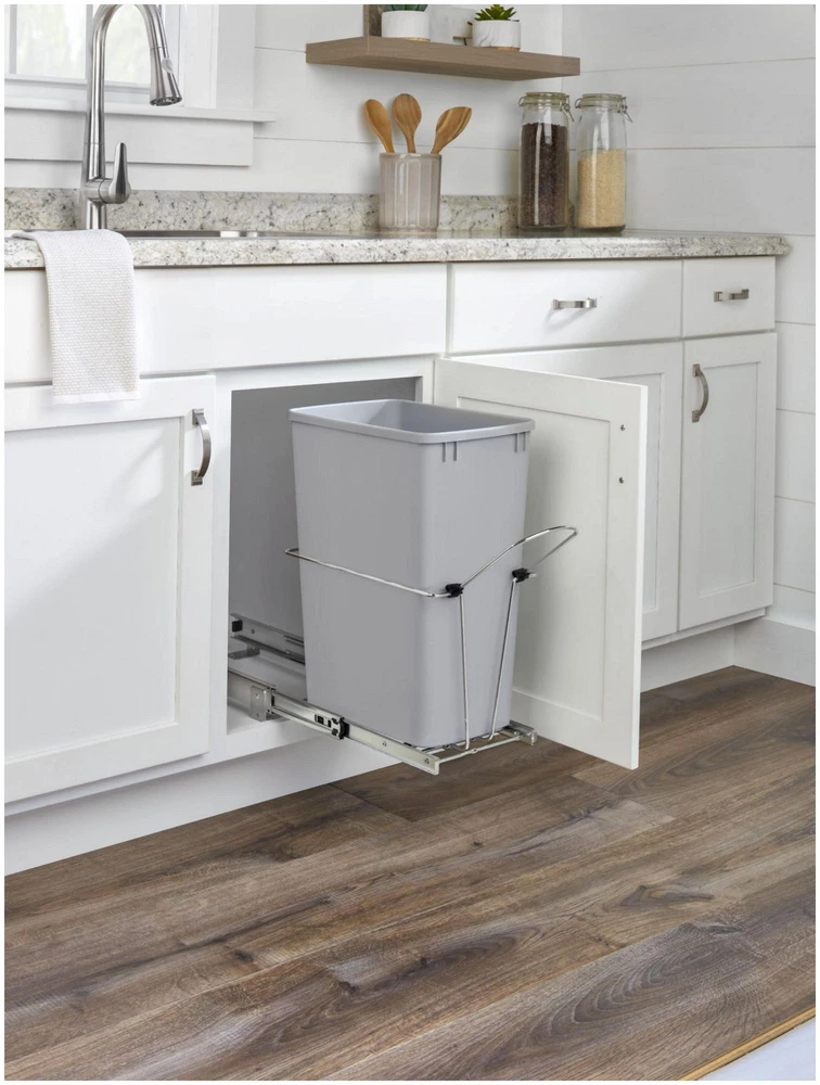 Powered by Frooition All Categories Rev-A-Shelf RUKD-1432RB-1 Classic 14-1/2"W Under Sink Steel Frame Single 32 Qt / 8 Gallon Pull Out Trash Can with Rear Basket Storage Overview Item Description Perfect for tight spaces like vanities, laundry rooms, and kitchens, Rev-A-Shelf's universal RUKD units clear your kitchen of trash by hiding it inside your cabinet. This universal frame accommodates 27", 30" and 33" sink base cabinets, and simply by turning it in either direction, you can avoid plumbing and other obstructions. Features: 3-piece zinc plated full extension ball-bearing slide system Can be installed narrow or wide configuration Removeable rear basket for extra storage (wide configuration only) If unit is turned to the narrow configuration, basket is not usable Snap on handle Uses standard 12 gallon trash bags Designed for cabinet opening width of 14-1/2" or greater Optional door mount brackets sold separately (5WB-DMKIT) Heavy gauge plated metal wire construction for durability Simple four (4) screw installation 100 lb full-extension ball-bearing slides Covered by Rev-A-Shelf's limited lifetime warranty Specifications: Depth: 16-7/16" Height: 19-1/2" Width: 14-1/2" Minimum Opening Width: 14-1/2" Minimum Opening Height: 20" Includes: One (1) 32 quart / 8 gallon waste container One (1) metal frame One (1) pair of slides One (1) rear basket One (1) clip-on handle Mounting hardware Pull Out Trash Cans, Pull Out Waste Bins, Hidden Trash Cans, Cabinet Trash Cans, Rev A Shelf Trash, Pull Out Garbage, Pull Out Trashcan Why Choose BuildInc? OUR PROMISE TO YOU About Us At Build, we promise to provide the best selection we can, most competitive pricing, and unmatched customer service. Our store has quality home improvement products from trusted manufacturers like Moen, American Standard, Delta, Kraus, Kichler, Progress Lighting, Schlage, Kwikset, Baldwin, Broan, NuTone, Air King, and Rev-A-Shelf. With over 200,000 home improvement products for you to choose from, we have just what you need to get your project done. Fast & Free Shipping We promise to make it our priority to get you your items as fast as we can. We ship from 440 warehouses around the country, ensuring that your product will get to you as soon as possible. We know you're eager to get your hands on your new purchase, we would be too. As a bonus, most items ship for free. Returns We are happy to accept returns of unused or defective items for a refund within 30 days from the date of delivery. For returns outside 30 days, please contact our Customer Service team to go over our options. For full details, please view the Shipping and Payments tab above. To initiate a return simply go to the eBay Returns Portal and submit a return request. We ask that all items be returned with all original components via a traceable method. Once your return is received and processed, we will quickly get your refund or replacement issued. If for any reason you are unsatisfied with your purchase or for product or warranty questions, please contact Customer Service team for assistance. More Items! View more great items! About Us | Shipping | Returns | Contact Us | FAQ | Collections | Special Offers! Powered by Frooition Frooition Frooition | No-js Template | eBay design, eBay store design, eBay shop design, eBay template design, eBay listing design (ver:froo_no_js) This listing is currently undergoing maintenance, we apologize for any inconvenience caused.