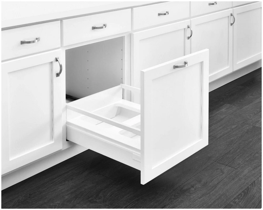 Powered by Frooition All Categories Rev-A-Shelf TWCSC-21DM-2 Tandembox 18-1/2"W Pull Out Double 35 Qt / 8.75 Gallon Trash Can System with Soft Close Slides Overview Item Description Rev-A-Shelf brings another complete waste container designed for base cabinets. They come preassembled with TANDEMBOX, and a heavy duty full extension soft-close slide system. The sleek look is sure to impress. Features: Undermount soft close full extension concealed slide system Overall product is 18-1/2" wide, but only requires an 18" opening to function properly Must be door mounted with included brackets Waste container bins included Once installed, unit can be removed for easy cleaning Designed for cabinet opening width of 18" to 21" Adjustable door mount brackets are included and required for operation Optional Rev-A-Shelf lids available, (sold separately) however the rear lid may be limited to use due to variety of countertops and/or handles Constructed with a heavy-duty metal frame with solid bottom surface Mount existing cabinet door to unit for an easy open and close process 110 lb full-extension BLUMOTION slides with soft close Covered by Rev-A-Shelf's limited lifetime warranty Specifications: Depth: 22-3/8" Height: 19" Width: 18-1/2" Minimum Opening Width: 18" Minimum Opening Height: 19-1/4" Includes: Two (2) 35 quart waste containers One (1) metal frame One (1) pair of slides Door mount brackets Mounting hardware Why Choose BuildInc? OUR PROMISE TO YOU About Us At Build, we promise to provide the best selection we can, most competitive pricing, and unmatched customer service. Our store has quality home improvement products from trusted manufacturers like Moen, American Standard, Delta, Kraus, Kichler, Progress Lighting, Schlage, Kwikset, Baldwin, Broan, NuTone, Air King, and Rev-A-Shelf. With over 200,000 home improvement products for you to choose from, we have just what you need to get your project done. Fast & Free Shipping We promise to make it our priority to get you your items as fast as we can. We ship from 440 warehouses around the country, ensuring that your product will get to you as soon as possible. We know you're eager to get your hands on your new purchase, we would be too. As a bonus, most items ship for free. Returns We are happy to accept returns of unused or defective items for a refund within 30 days from the date of delivery. For returns outside 30 days, please contact our Customer Service team to go over our options. For full details, please view the Shipping and Payments tab above. To initiate a return simply go to the eBay Returns Portal and submit a return request. We ask that all items be returned with all original components via a traceable method. Once your return is received and processed, we will quickly get your refund or replacement issued. If for any reason you are unsatisfied with your purchase or for product or warranty questions, please contact Customer Service team for assistance. More Items! View more great items! About Us | Shipping | Returns | Contact Us | FAQ | Collections | Special Offers! Powered by Frooition Frooition Frooition | No-js Template | eBay design, eBay store design, eBay shop design, eBay template design, eBay listing design (ver:froo_no_js) This listing is currently undergoing maintenance, we apologize for any inconvenience caused.