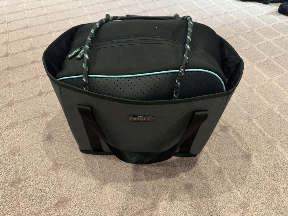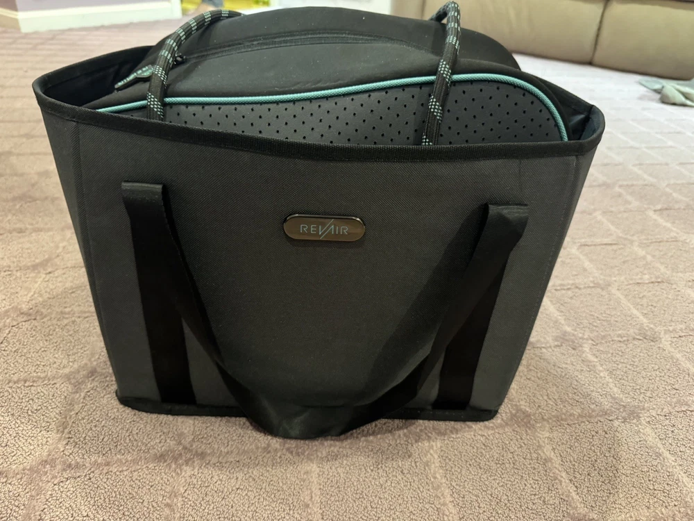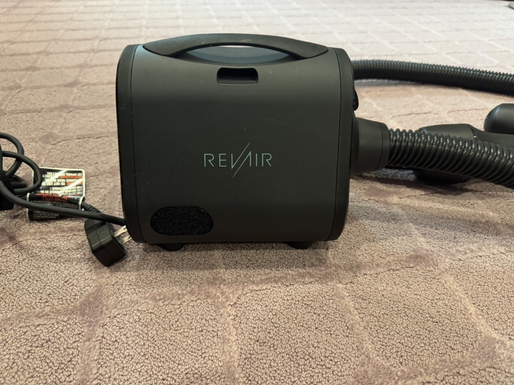The RevAir Reverse-Air Professional Electric Hair Dryer is a top-of-the-line hair styling device designed for unisex adults. With a sleek black and teal color scheme and durable plastic material, this electric hair dryer offers professional-grade power and performance. The Reverse-Air model provides a unique styling experience, making it a must-have for anyone looking to achieve salon-quality results at home. IN PERFECT CONDITION, INCLUDES TRAVEL BAG, WATER MISTER, SPARE FILTERS, AND MORE.