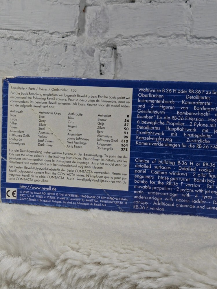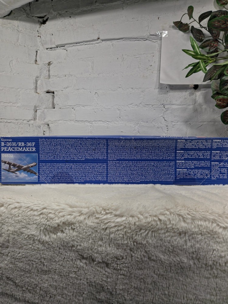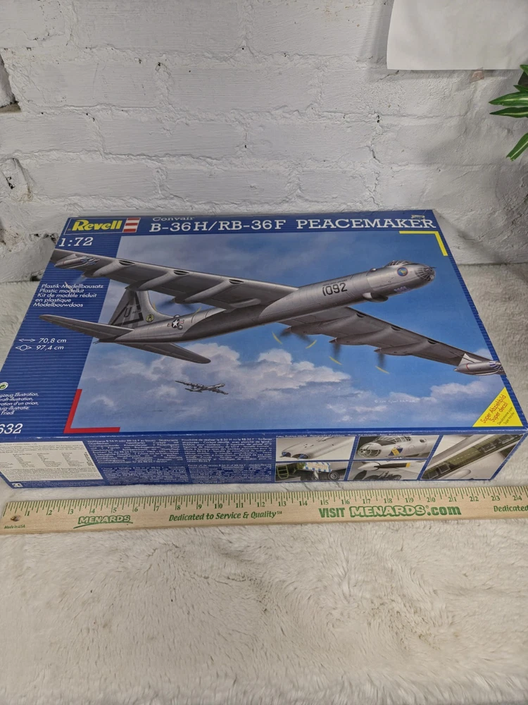 Condition: New The Convair B-36 Peacemaker, America's intercontinental bomber of the early Cold War (1949-1959), boasted six piston engines plus four jets for 10,000-mile non-stop flights, carrying nukes across oceans as a SAC deterrent before ICBMs. Its massive 230-ft wingspan symbolized post-WWII might. This Revell 1/72 kit scales down the behemoth, for B-36 models, strategic bomber kits, and 1950s aviation replicas. Brand: Revell, specialist in oversized historical bombers. Scale: 1/72, fitting detailed pusher props and bomb bays. Model: B-36H/RB-36F Peacemaker, recon/strike variant. Features: Full sprues, jet pods, and USAF decals. Collectibility: Limited reissue, rare for big wing collectors. Packaging: Sealed, with sturdy tray. Shipping Policy: USPS Parcel, 2-day delivery