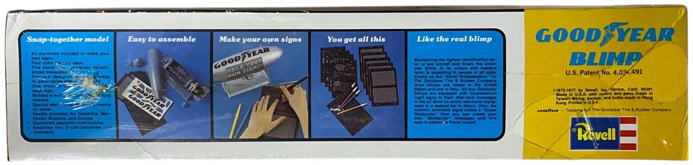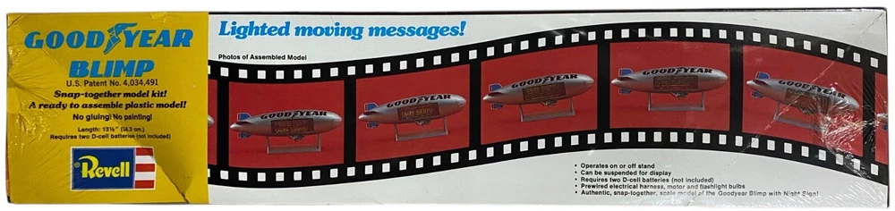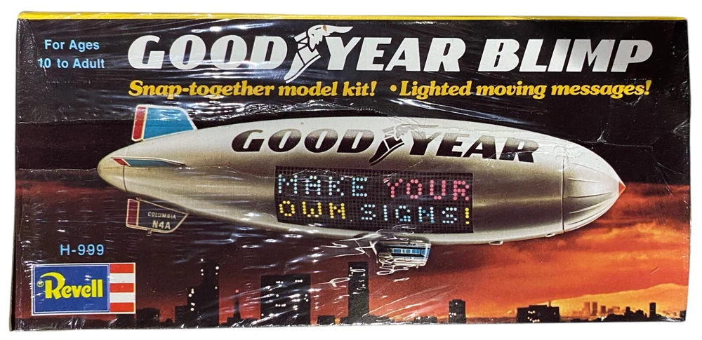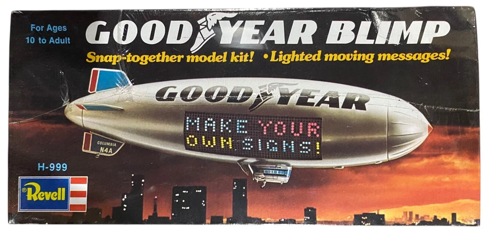 Vintage 1977 Revell GoodYear Blimp Snap Model Factory Sealed New! From a recently opened 47-year-old factory case. PLEASE NOTE: Display box has some creasing and the shrink wrap has a few splits and holes. Please see photos. I ship every day from Monday to Saturday. Please check my shipping options. If you need this to arrive a bit more quickly, I also offer Priority Mail.