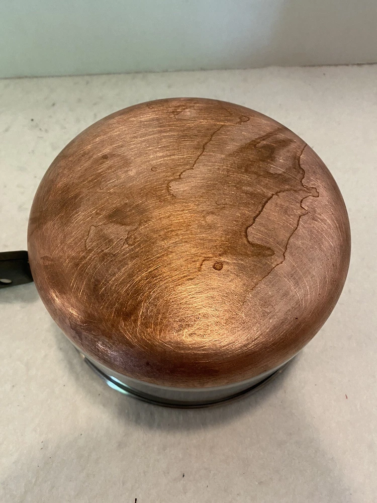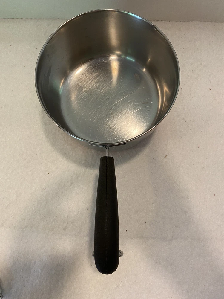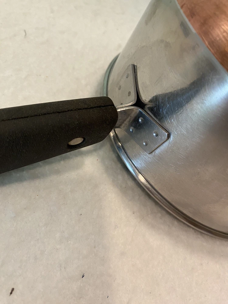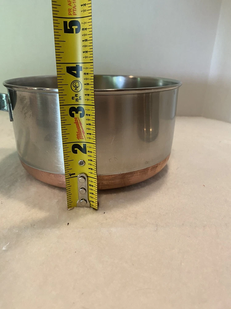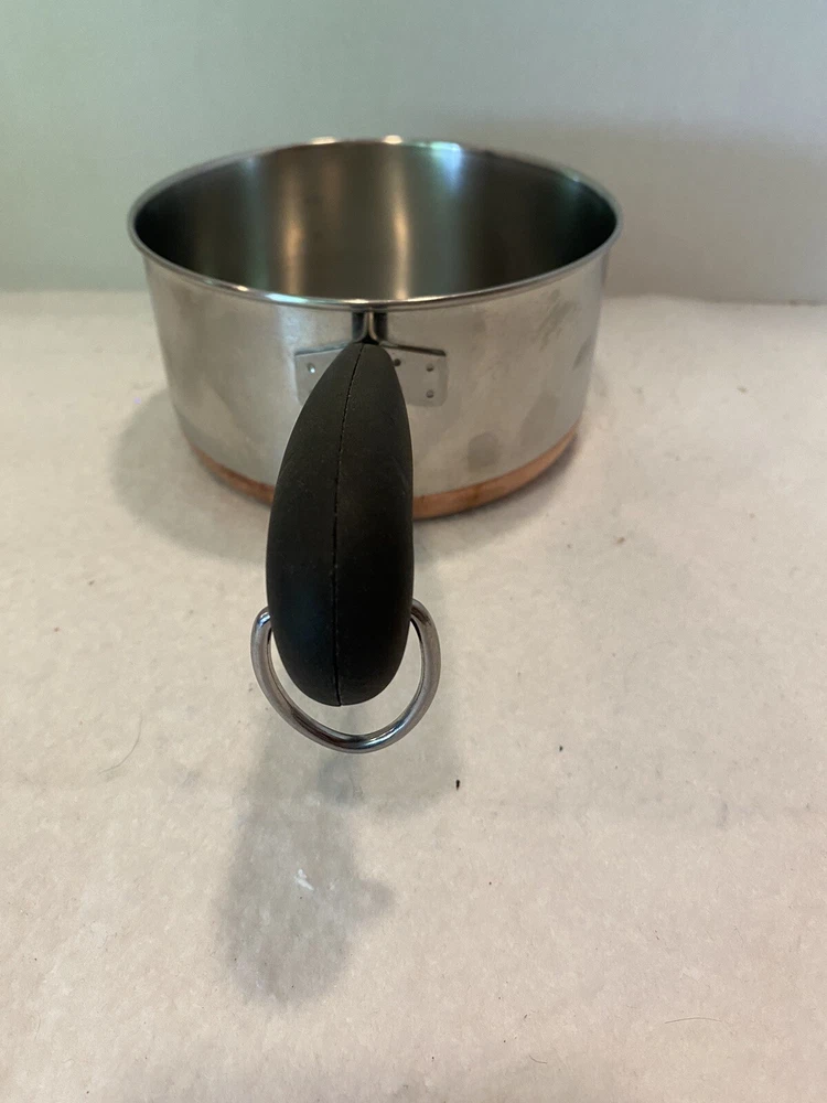 The double ring on the bottom is faint due to age and use, but is there. There are a few dings on the handle of the lid. Please see pictures for full description. Revere Ware 1 1/2 QT Double Circle Pre 1968 Sauce Pan Copper Clad Bottom W/ Lid