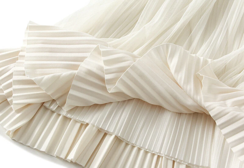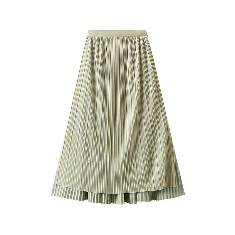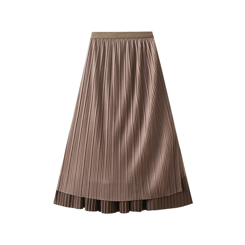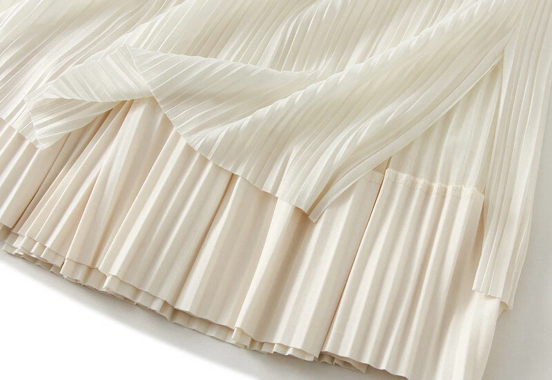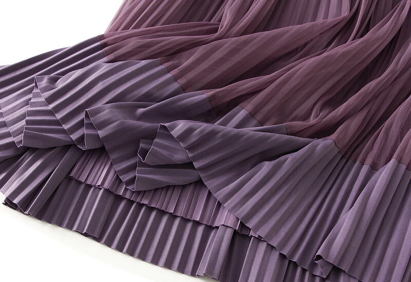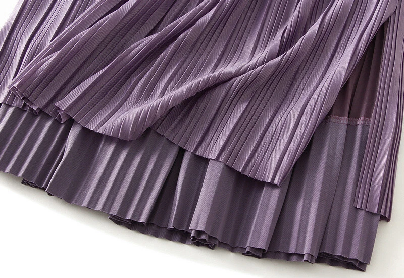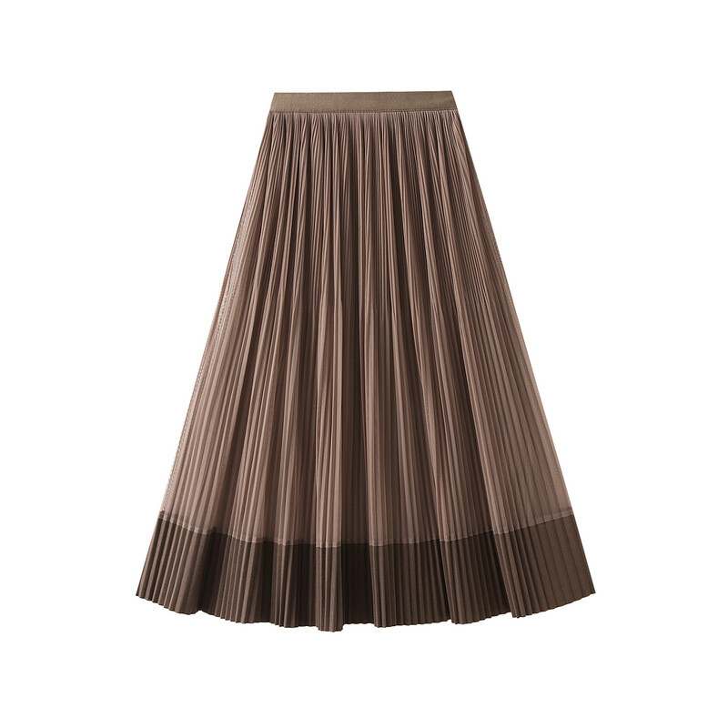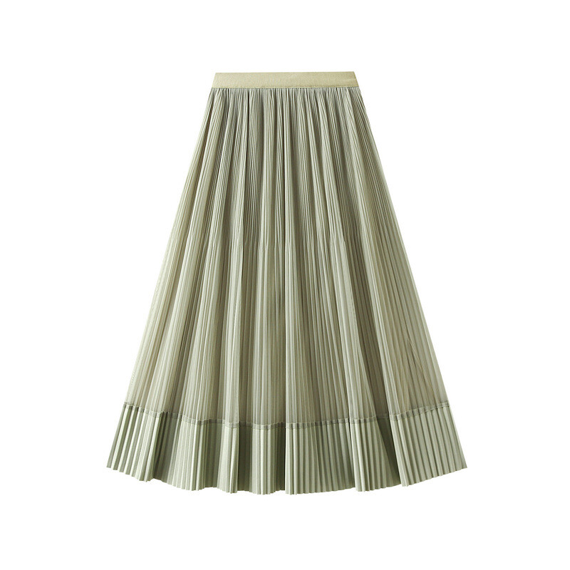 Mesh Half Skirt Reversible Double-Sided Wear Women's New Pleated Skirt Product Description: Color: Black apricot Khaki Purple green Material: Polyester Size: equal size Waist circumference 62CM-100CM Skirt length 79CM Skirt lining 75CM Type: Skirt